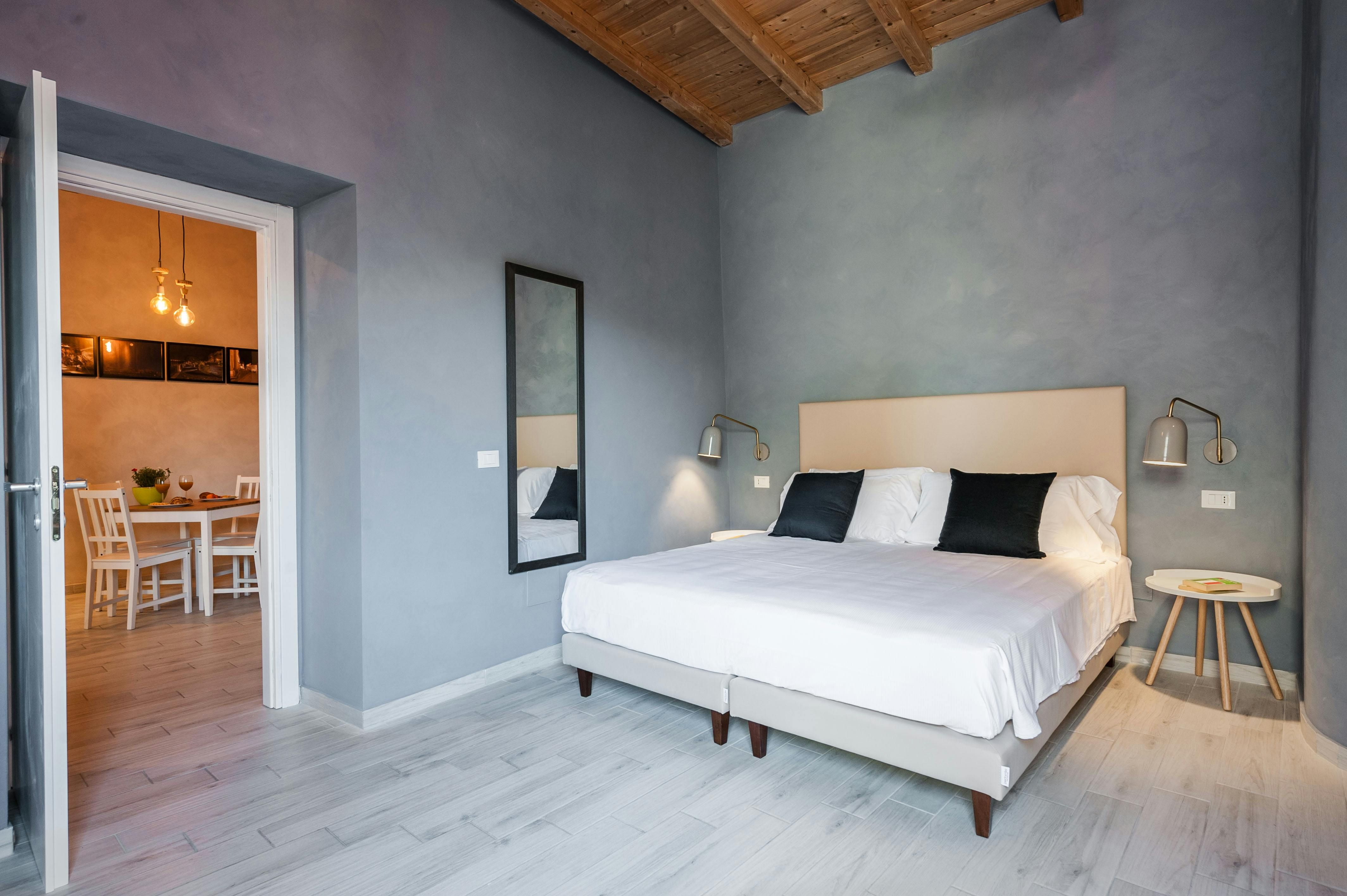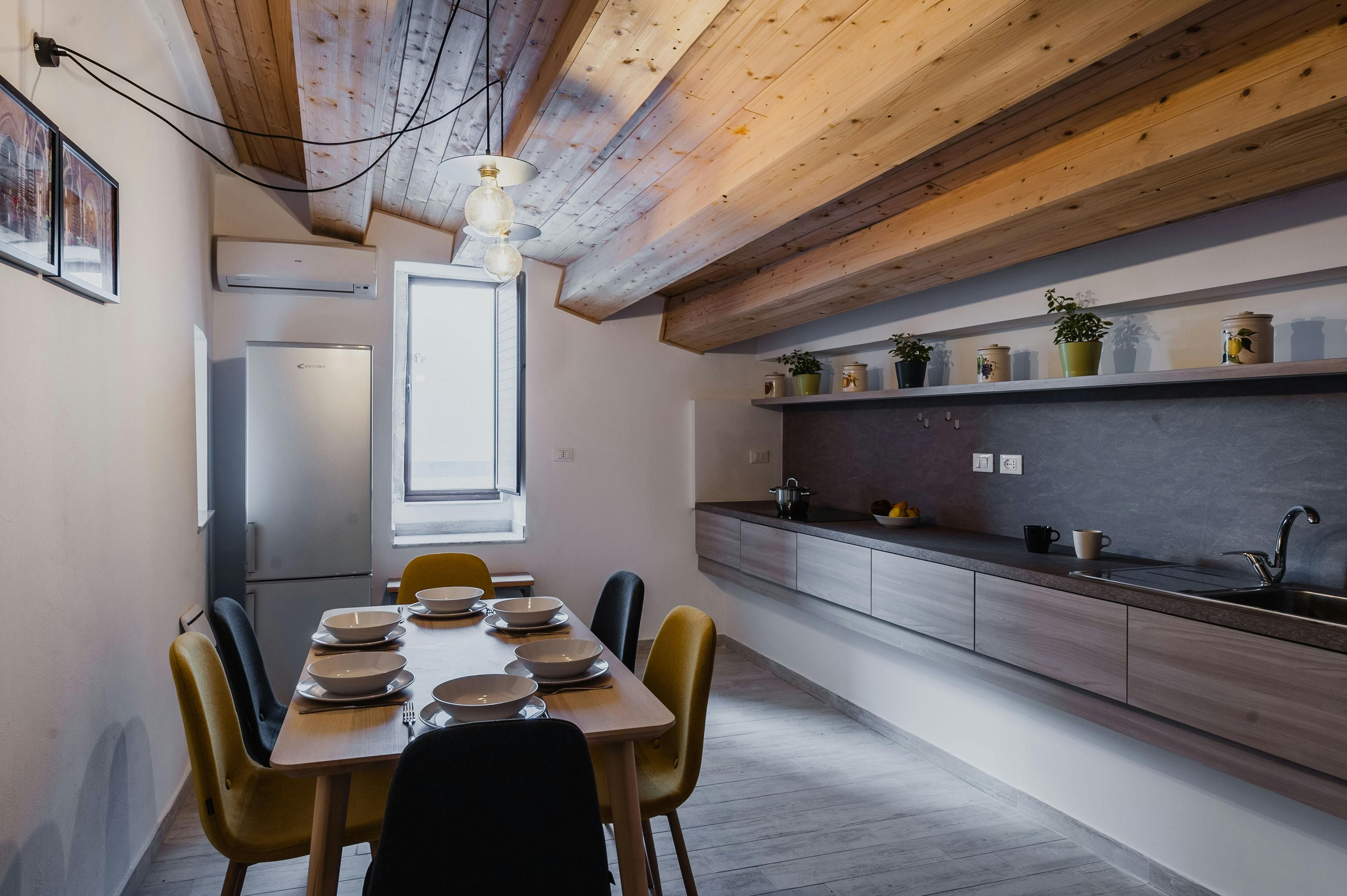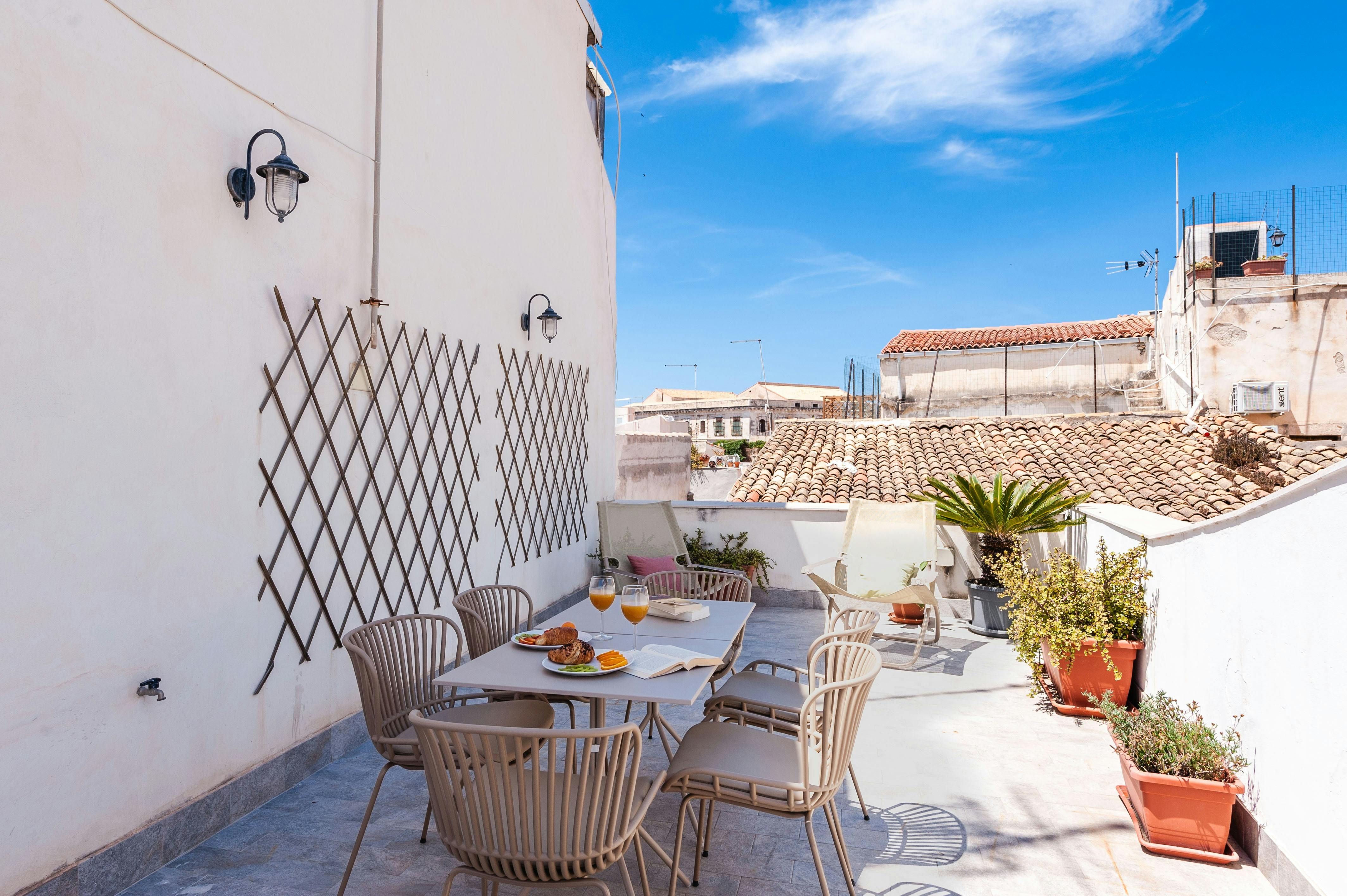 This home is located on the historic island of Ortigia – a hive of charming side streets, local eateries, artisan shops, and sandy beaches. It's ideal for a break with family or friends, with a double sofa bed in one bedroom, and a pull-out single in the second. Featuring a rooftop terrace and a private balcony, there are various places to sit and watch the world of Syracuse go by. Set across two floors and with lots of space for shared moments both inside and out, this apartment would be well-suited to those seeking home comforts in the heart of the action.