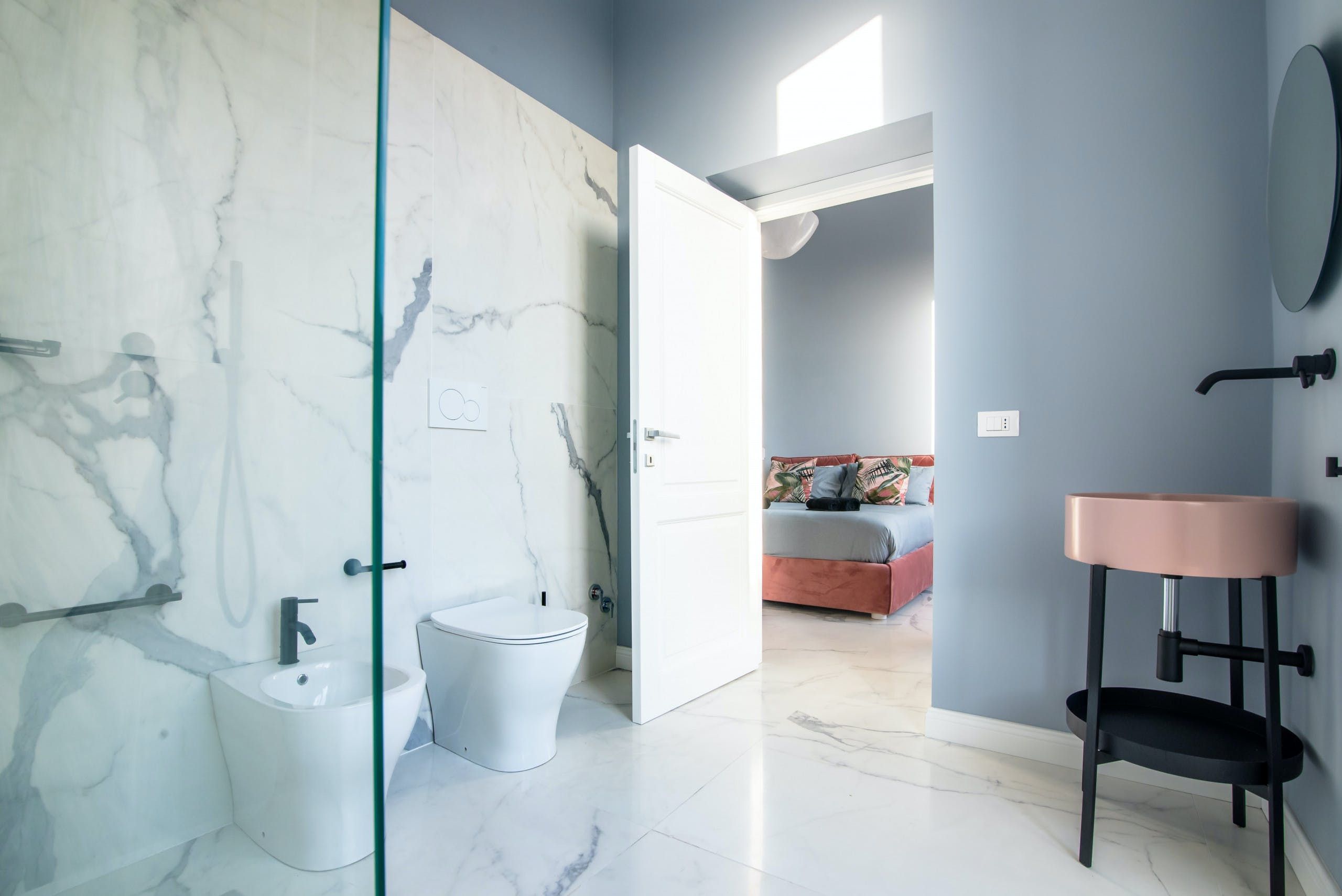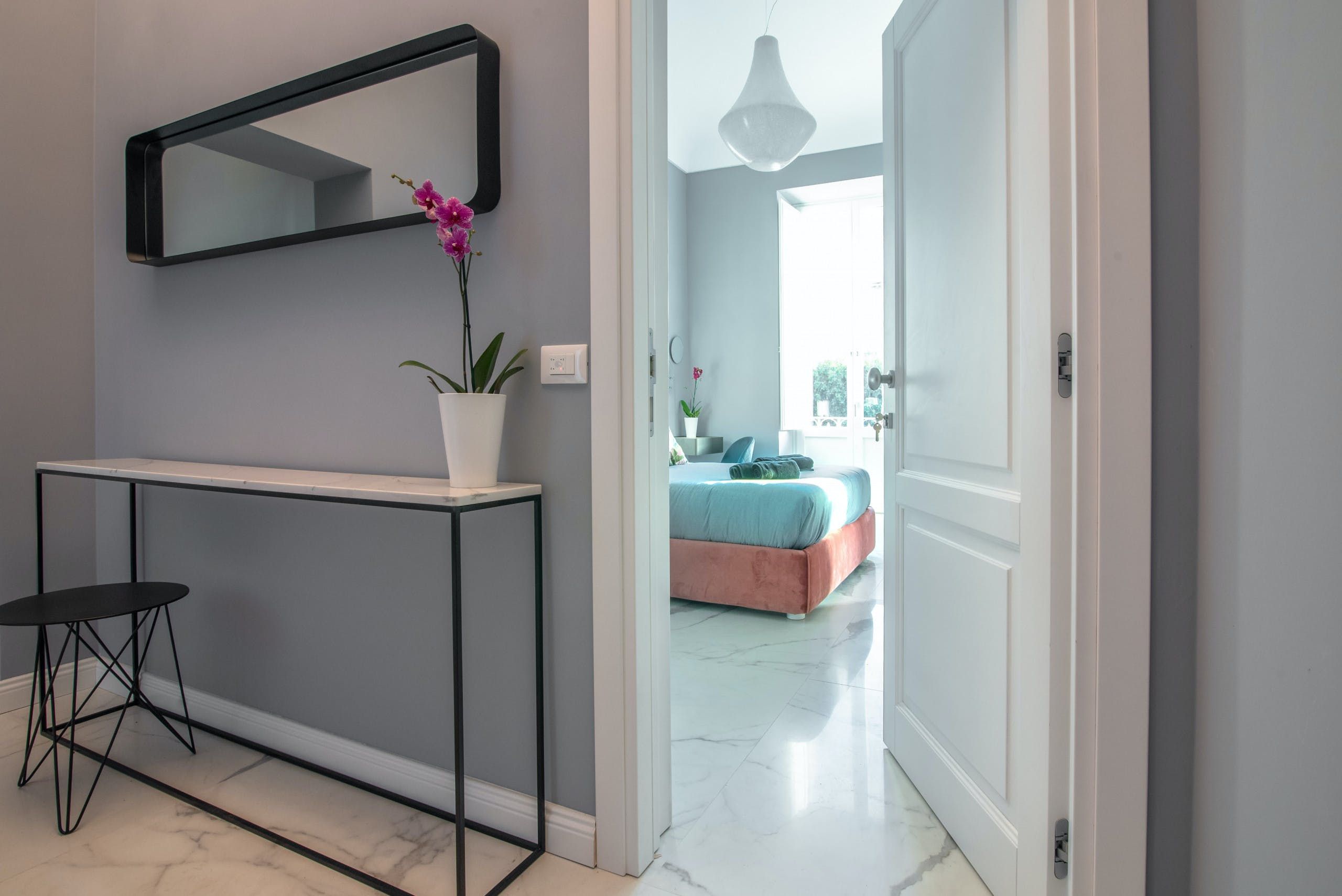 This elegant apartment is perfect for a family, two couples, or a group of friends. We love the high ceilings and tall windows, which fill the space with light. The open-plan living and dining space is ideal for socialising, as there’s plenty of room – this is far larger than lots of homes in this area. In terms of location, you’ll be in the heart of the historic centre of Ortigia, just a few steps from the Temple of Apollo. The apartment is in a pedestrian zone, so you can get around easily on foot.