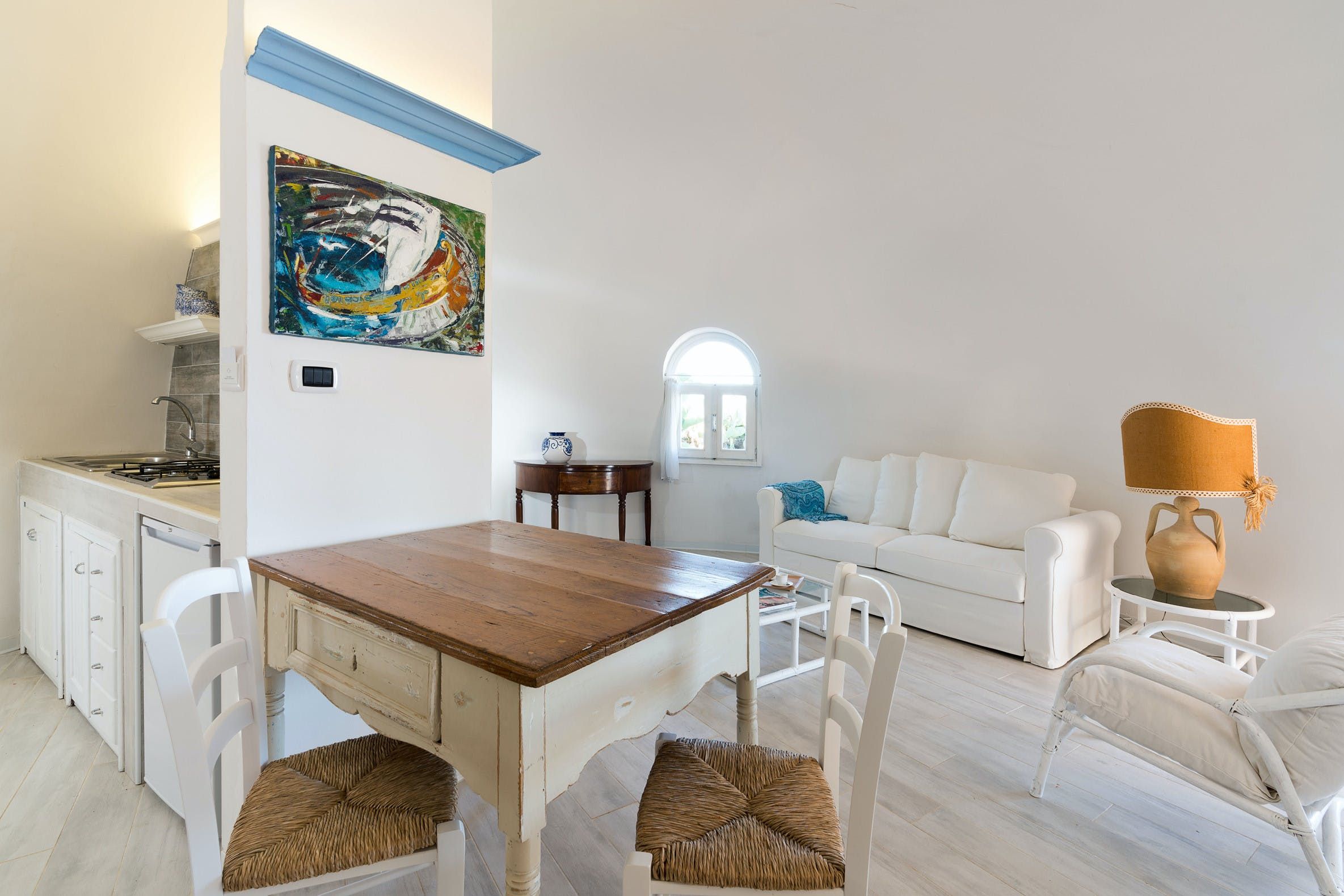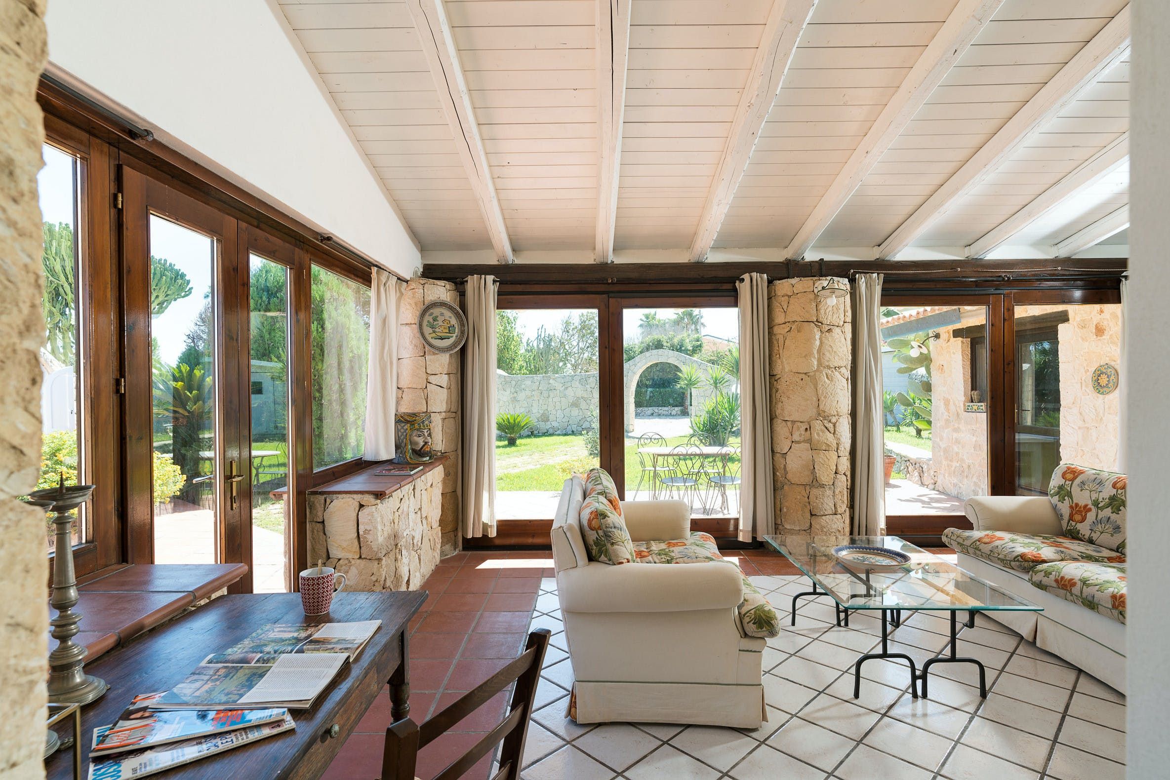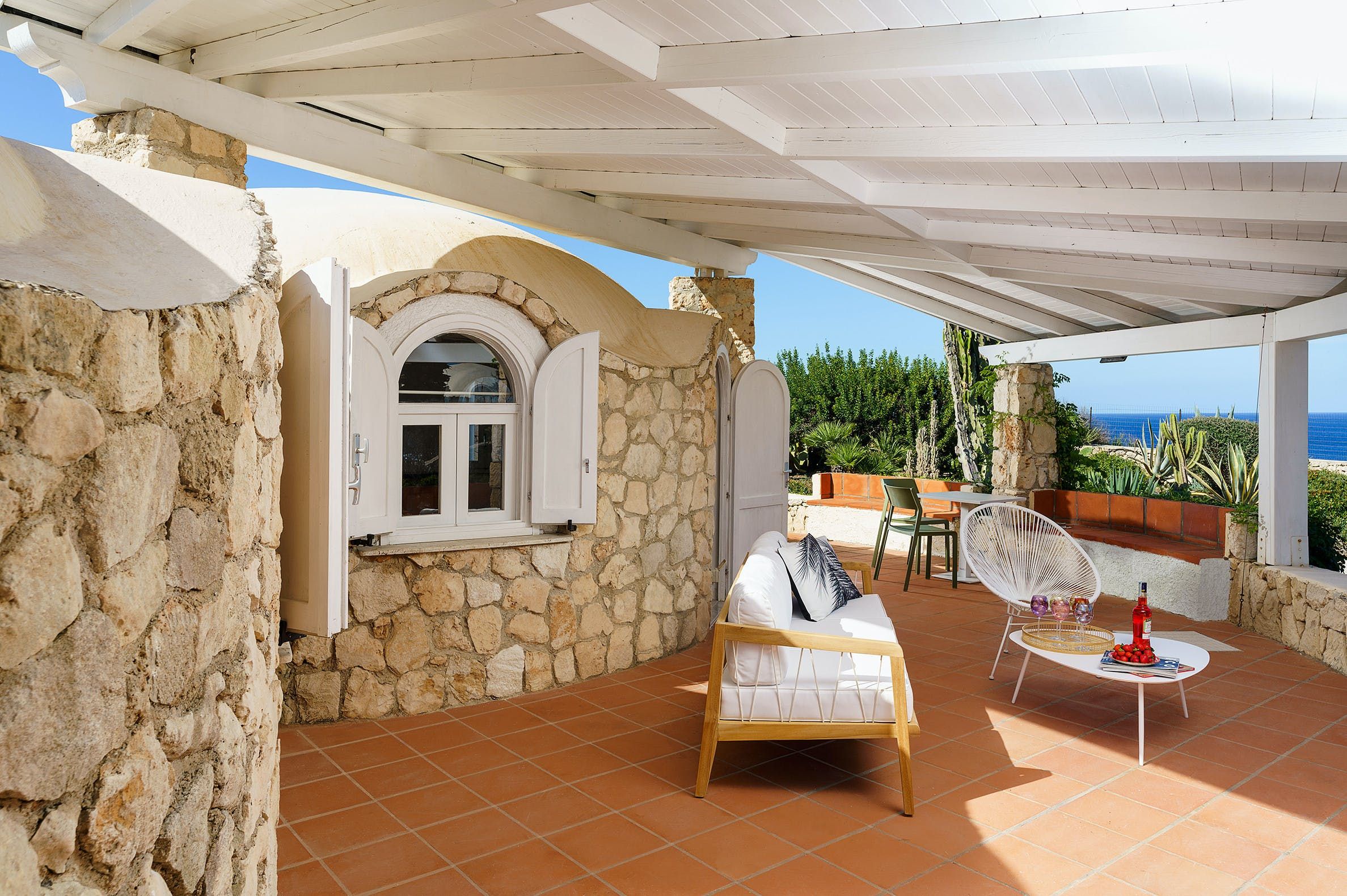 Located in Syracuse's Plemmirio Marine protected area, this seafront villa is an ideal base for those looking for a restful coastal break. Sitting just steps from the sea and rocks below, the seasonal swimming pool invites endless blue vistas and the lawn is perfect for soaking up the sun. Plenty of shaded seating offers some respite from the heat and the outdoor dining area is the perfect gathering spot for starlit barbecues. Divided into a main house and an annexe with its own kitchen and living area, this home is a good choice for multigenerational families or groups looking for a bit more privacy.