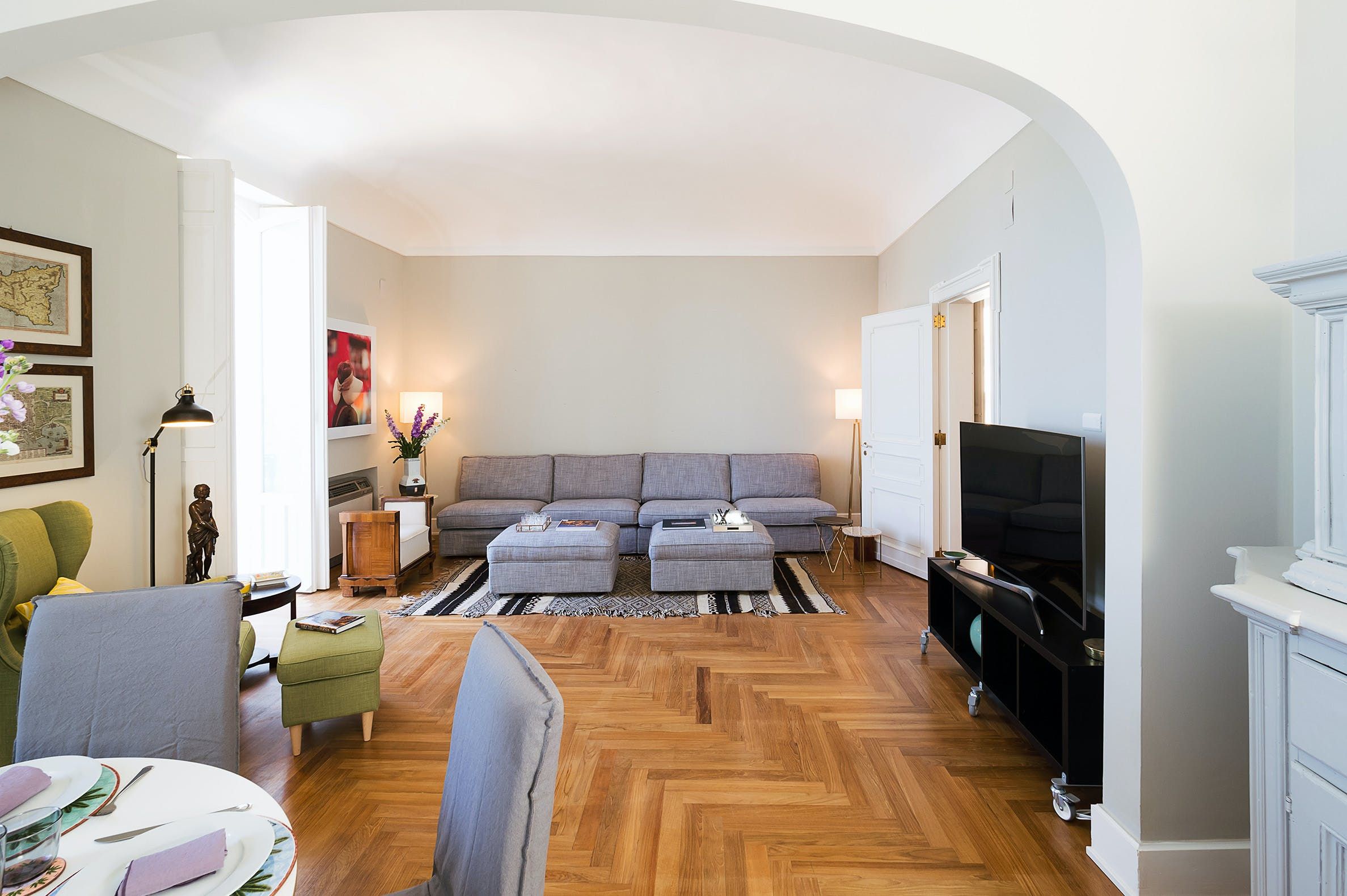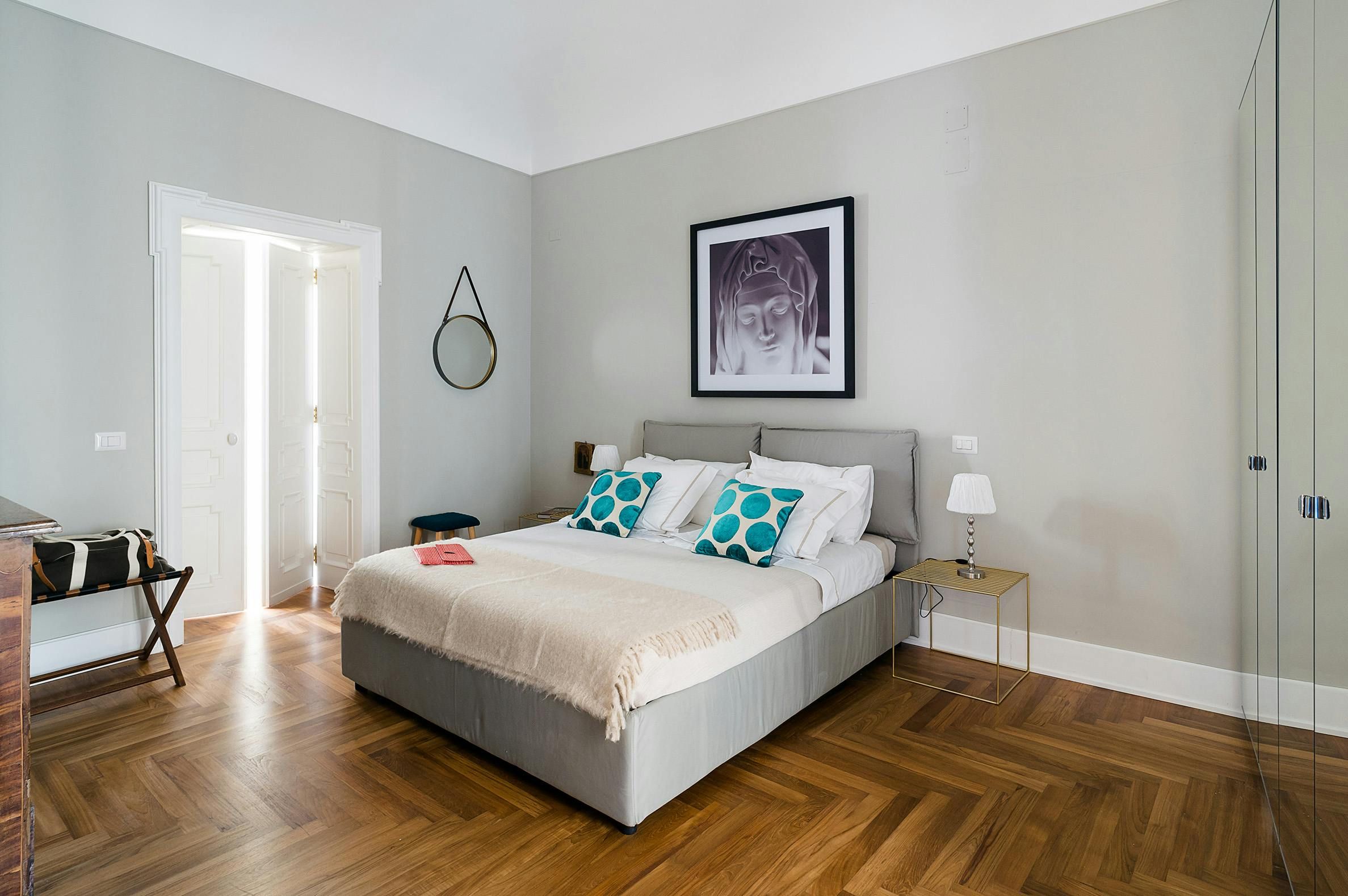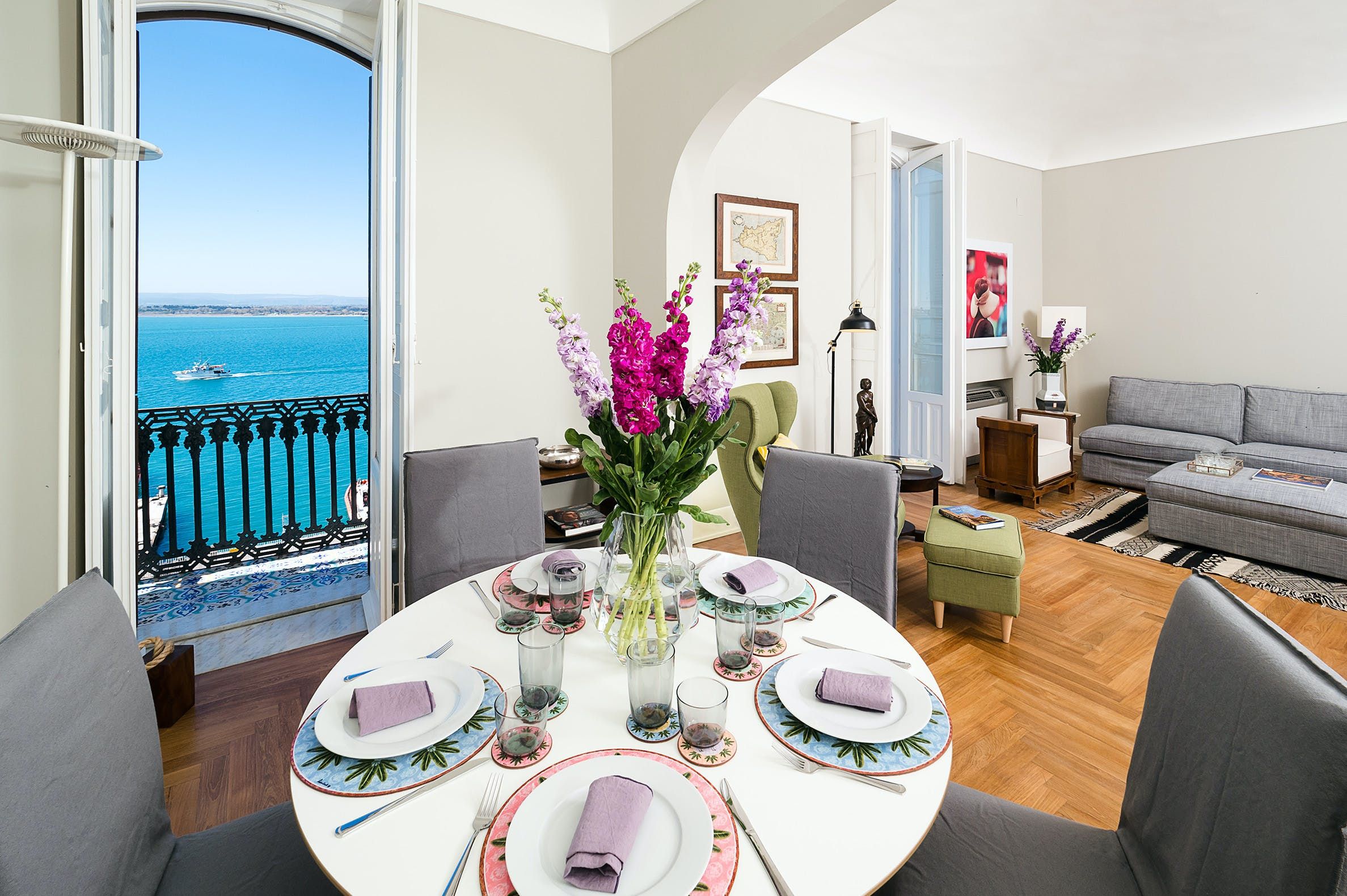 Modern and bright, this apartment offers a comfortable base for those looking to stay in the heart of Isola di Ortigia. You'll be a short walk from Fonte Aretusa, Syracuse Cathedral and the vibrant marina’s waterfront eateries and bars, while the Ionian waters of Cala Rossa are within easy reach. There's a modern kitchen, an inviting living room, and a laptop-friendly workspace for those needing to work during their stay. But the real standouts here are the balconies, which serve as lovely spots for evening drinks after a day of sightseeing.