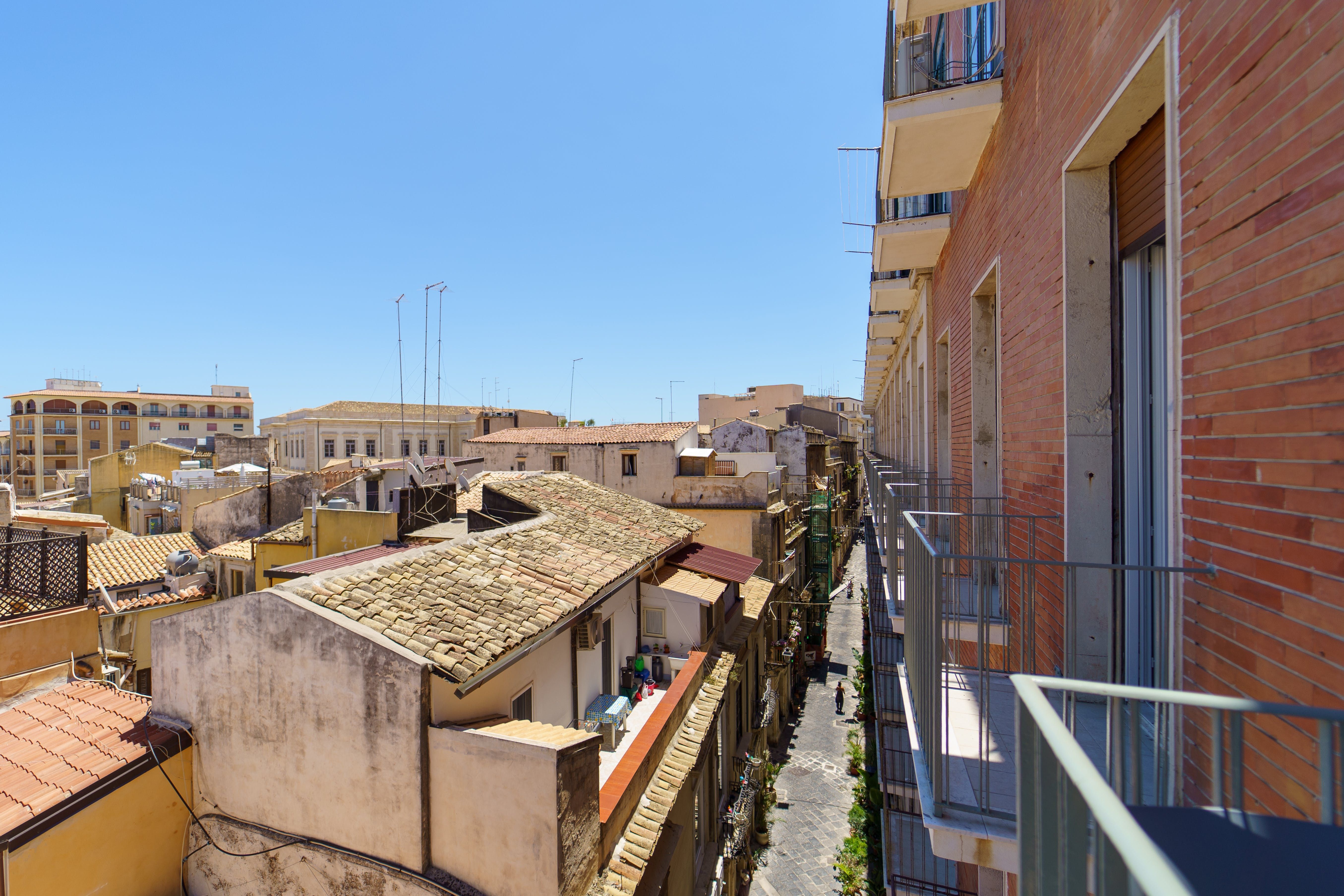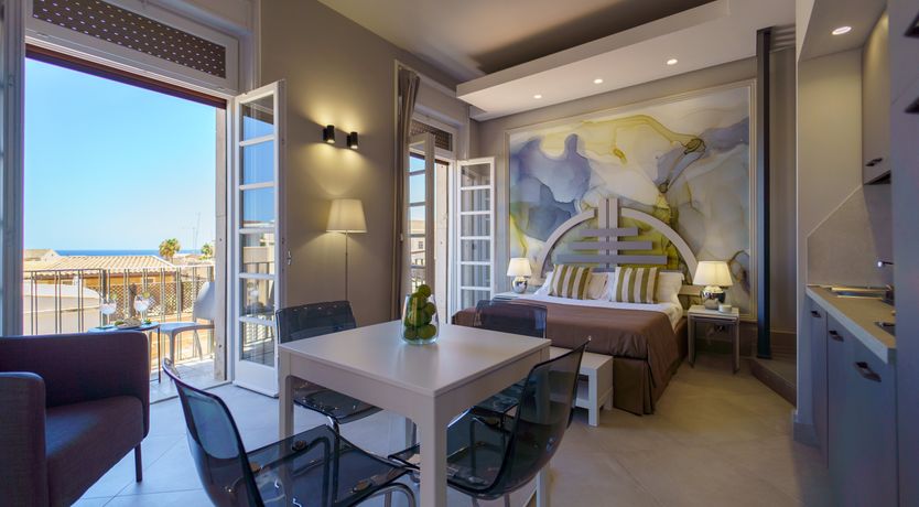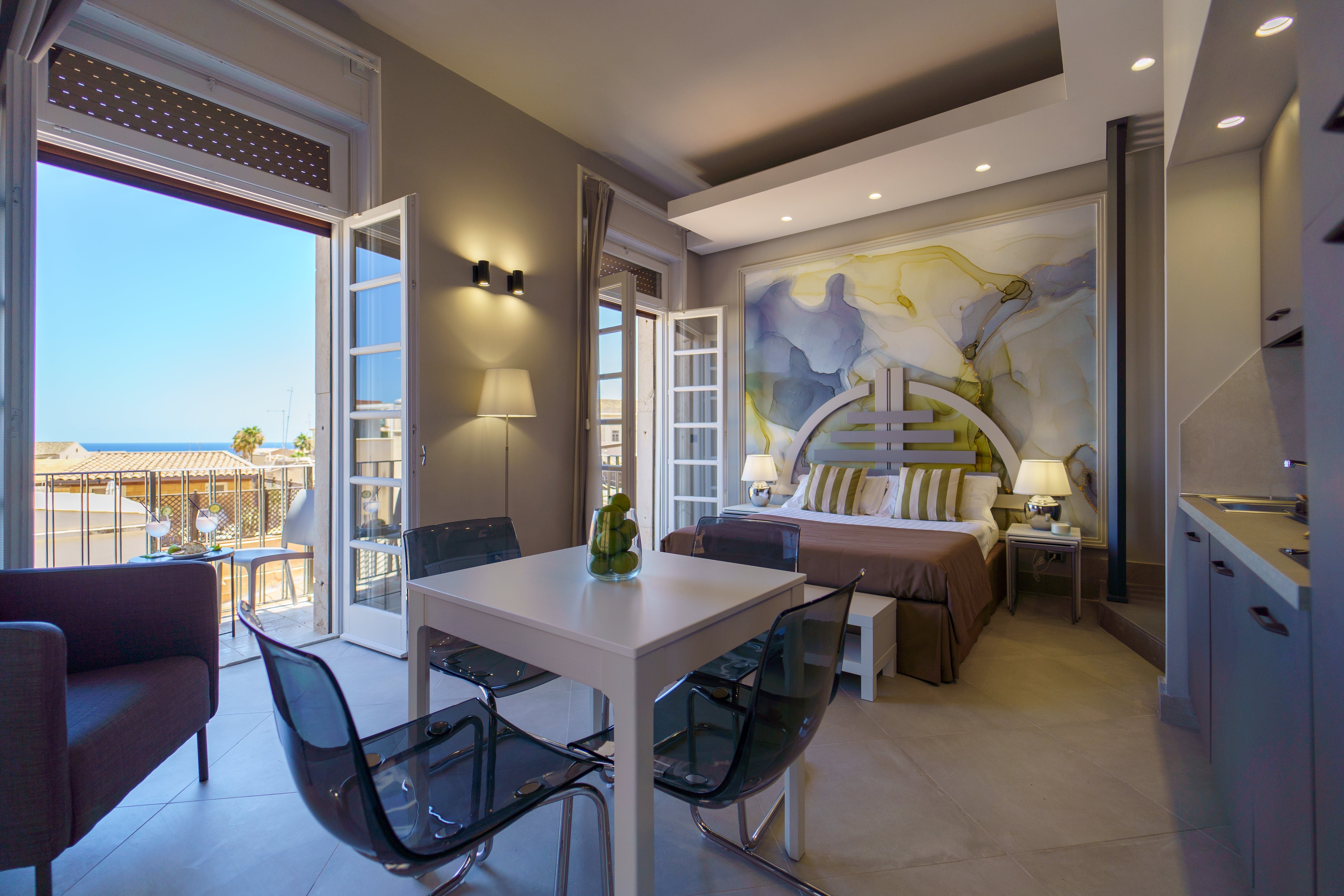 Feel the magic of Sicily from your charming studio apartment, boasting views over the cobalt sea. Nestled in a small, characteristically Sicilian alley, you can embrace the authentic charm of the island with ease. You’re in the heart of Ortigia, close to the ancient city of Syracuse, where you can spend mornings taking walks along the beach, picking up local citrus fruits at Ortigia Market, and afternoon glasses of wine in bustling Piazza Duomo.