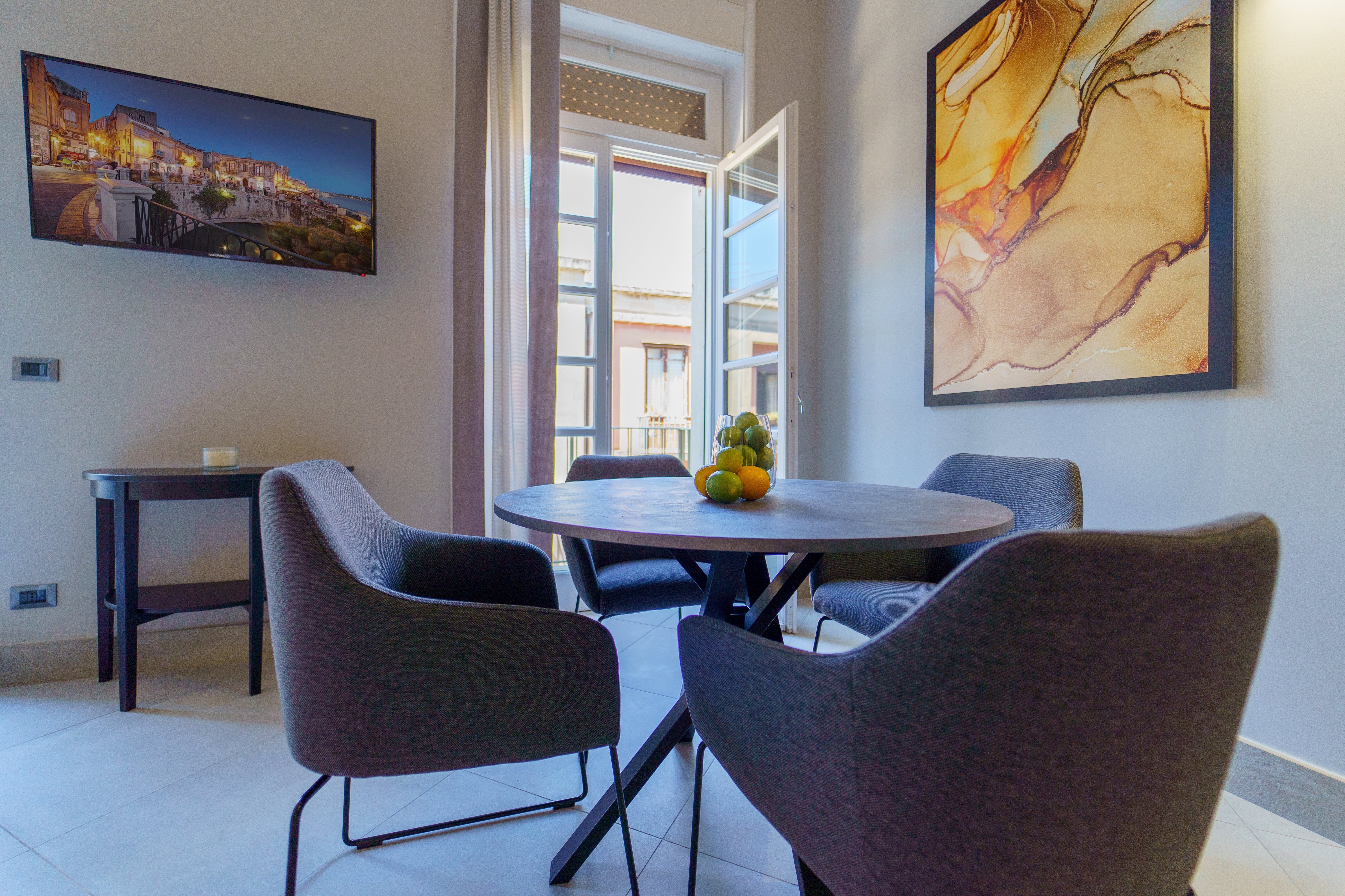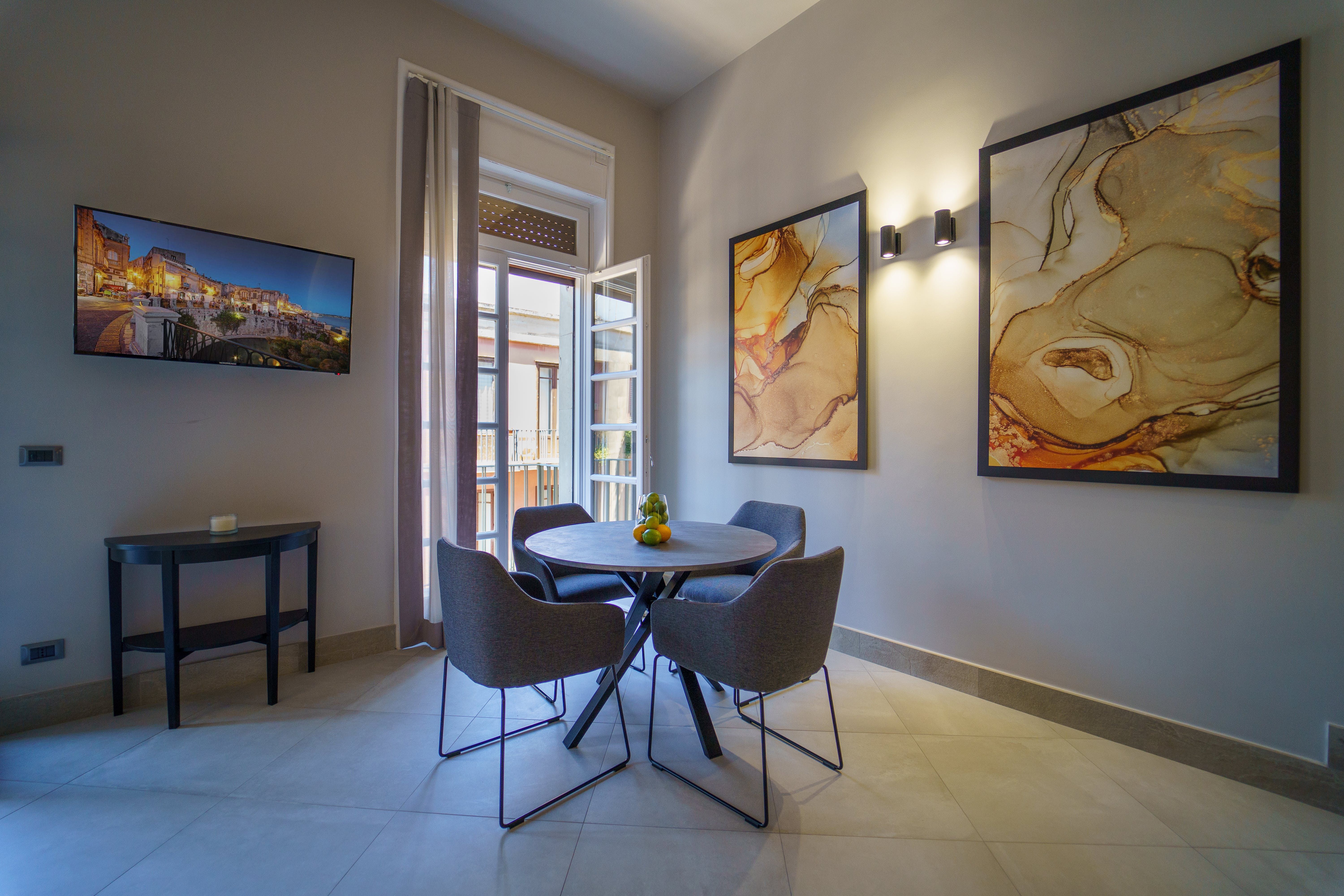 Full of fashionable design-led flair, this apartment on the island of Ortigia in Syracuse’s historic centre offers comfort, class and beautiful views over Archimede Square and towards the sea. A dark, sophisticated palette is offset by an abundance of natural light streaming in through the French doors. Open these up to reveal a private balcony – the ideal spot to begin mornings over espressos or to end the evening with a celebratory aperitivo.