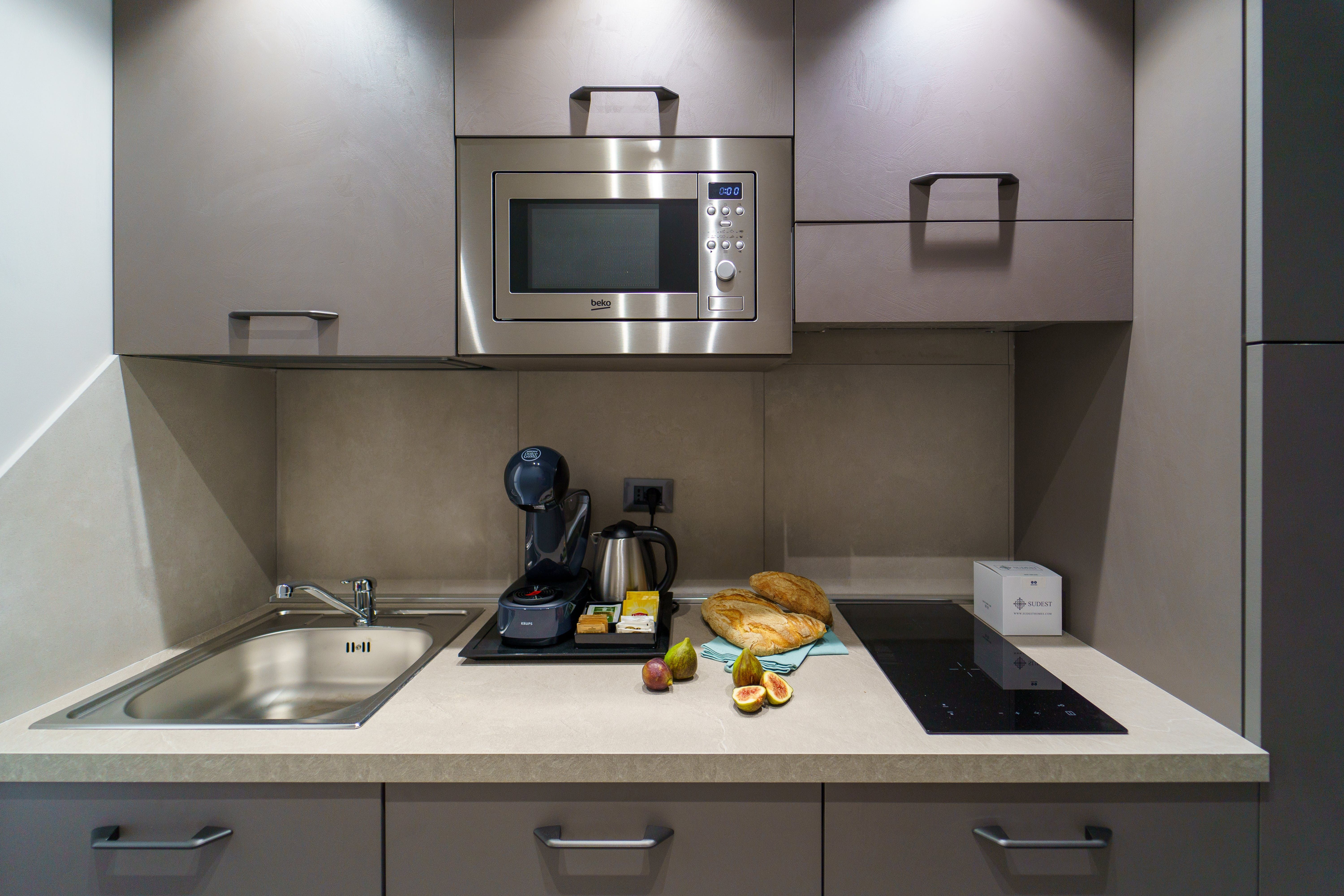 We love the colourful eye-catching artwork decking the walls here too – particularly the large feature piece framing the grand-looking bed that invites an elegant night’s sleep. Factor in the sleek kitchenette and the luxurious bathroom’s rainfall shower and you’ve got everything you need for a carefree Syracuse stay.