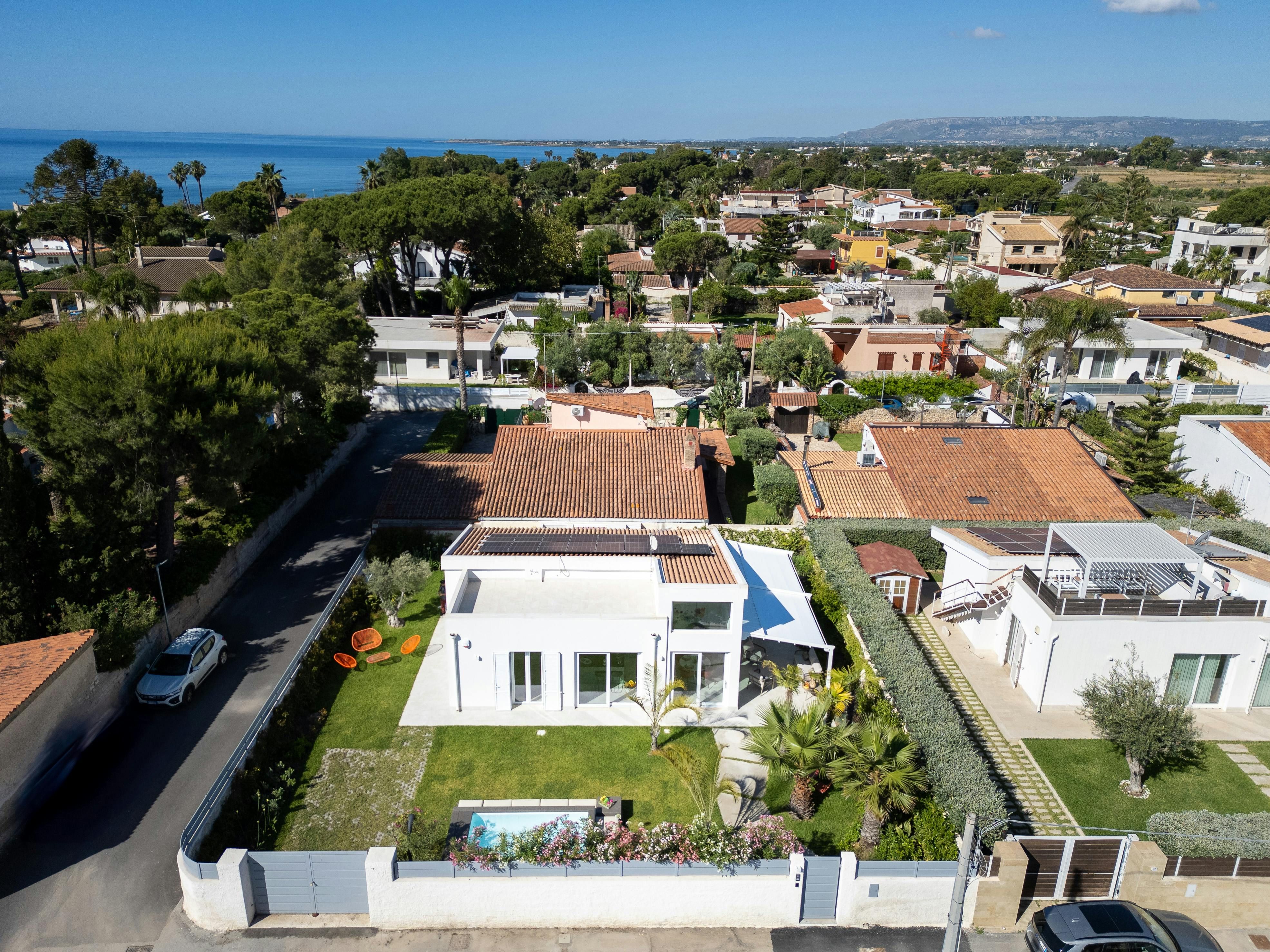 If you’re dreaming of a slow-paced Italian getaway, this home opens its doors to pure relaxation. Just 20 metres from the sea, you can enjoy leisurely strolls along the shoreline. The nearest beaches are a short drive away, while the close proximity to Syracuse (just 8 kilometres away) means this is a fantastic base for sightseeing. The house features a pool for blissful swims and the terrace is perfect of sunset drinks and alfresco dining. Inside, the rooms are well-suited to families and the main bedroom comes with an en-suite bathroom for extra privacy.