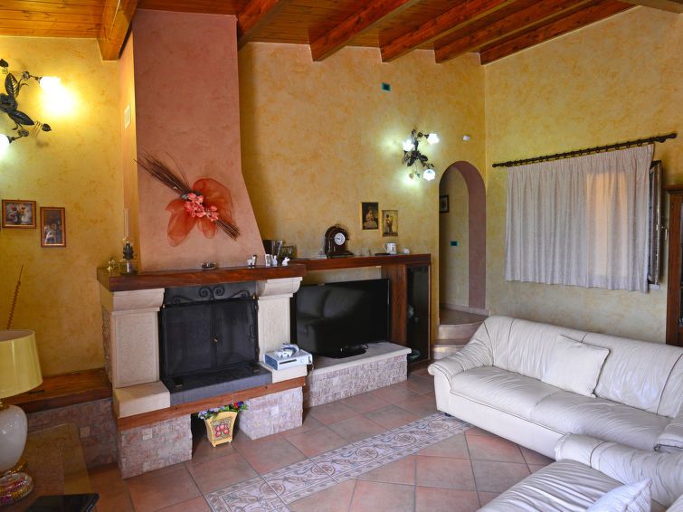 5-room villa 160 m2. Simple and comfortable furnishings: living/dining room with winter garden with TV and fan. Exit to the garden. Living/dining room with open-hearth fireplace and satellite TV (flat screen), air conditioning and forced-air heating. 1 double bedroom with air conditioning, fan and forced-air heating.