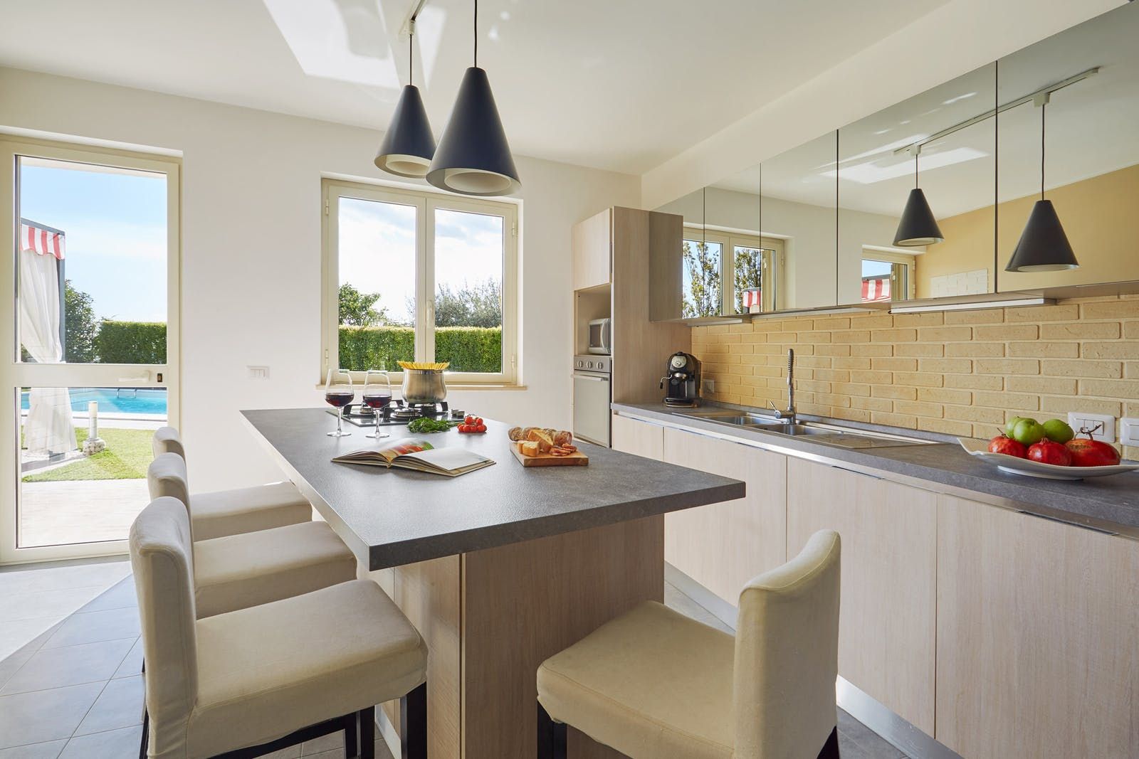 On the upper level of the villa, you’ll find the living area which boasts such an expanse of floor-to-ceiling glass, you’ll feel the Ionian Sea wrapping itself around you even when you’re indoors. Step out onto the terrace, and you can still enjoy the view with the addition of a gentle sea breeze – it’s the perfect spot for after-dinner drinks. Speaking of dinner, when it’s time for a meal, light the barbecue and dine poolside under the candy-striped gazebo. With your loved ones gathered, it’ll make for a memorable evening as the stars break out above.