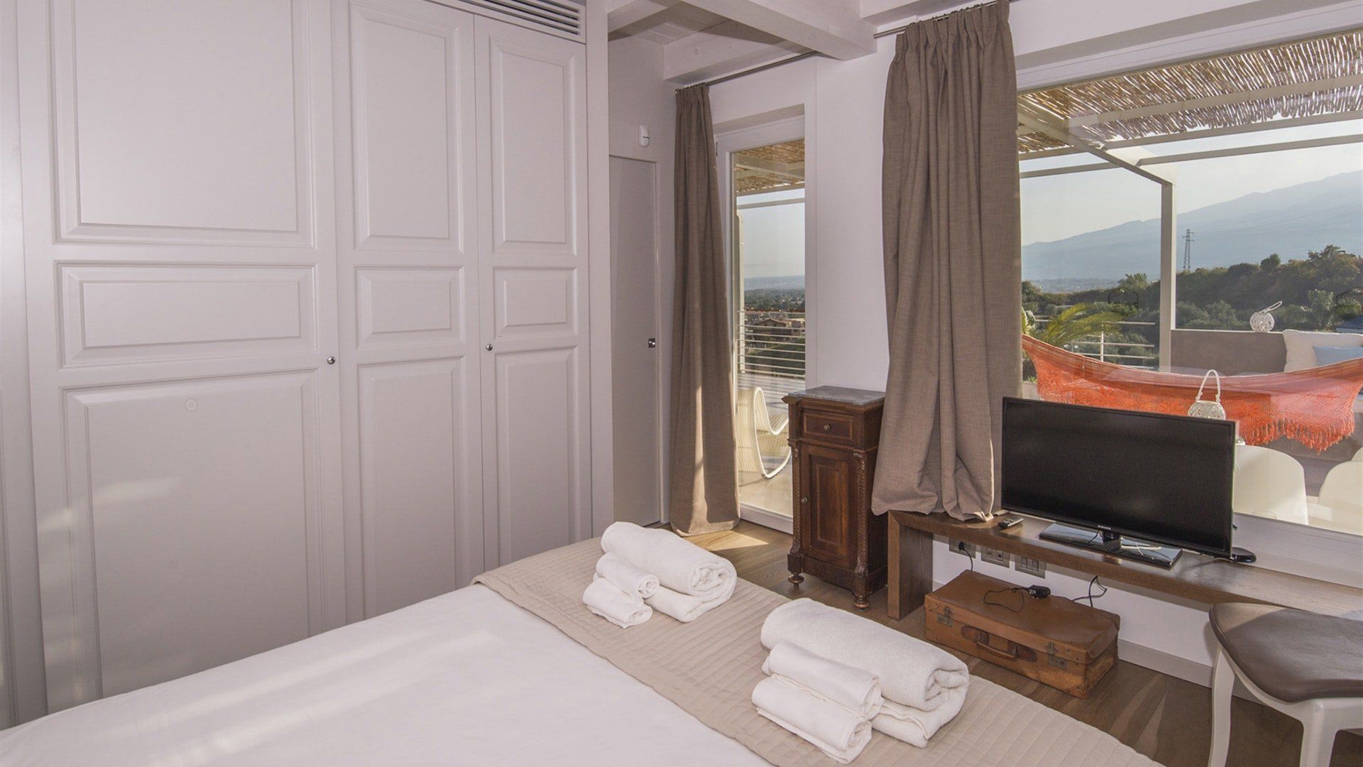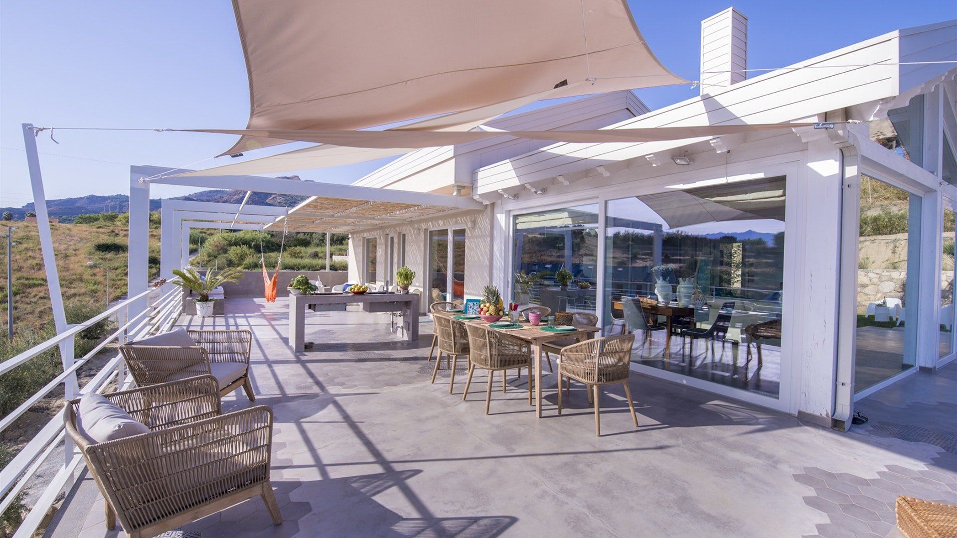 If you’re looking for views, you’ve come to the right place. This contemporary villa is based on the most beautiful stretch of south-eastern Sicily’s coast, with iconic vistas over the sea and Mount Etna. Large windows frame the panorama perfectly and flood the living space with natural light. Outside you’ll find a hydro-massage mini pool (with counter-current for getting those lengths in), a lush array of flowering plants and a sunbathing area for soaking up those Sicilan rays. You’re just 1km away from the sandy beach at Giardini Naxos and spectacular Taormina isn’t much further, for a taste of the dolce vita. The large veranda with its sail-like cover is the place to be, come sundown. Rustle up an Italian feast in the outdoor kitchen, or just kick back and take in those views.