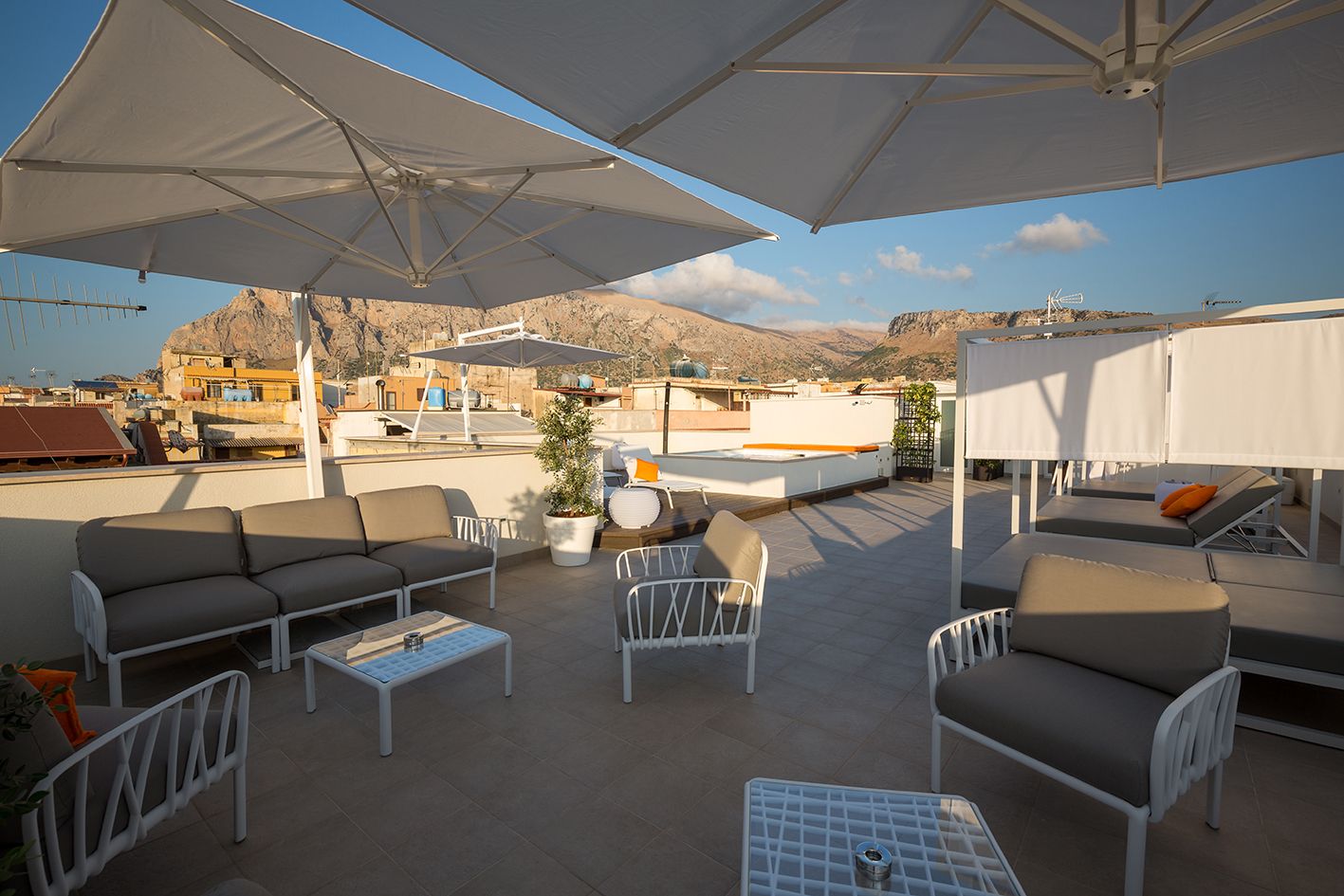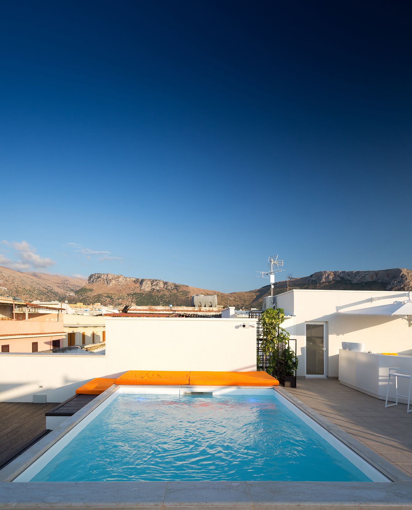 If you’re looking for a central couples’ retreat in Terrasini, this home is hard to beat. The location is excellent – just steps from the promenade and Piazza Duomo, with the beach only five minutes away on foot. When you’re not out exploring, the apartment itself is a stylish hideaway, perfectly suited for two. We love the large shower with chromotherapy, and the in-room bath adds a romantic touch. The shared rooftop space is a particular highlight of ours – a sun-drenched solarium, mini pool, and canopy beds make it easy to spend the day without ever leaving home.