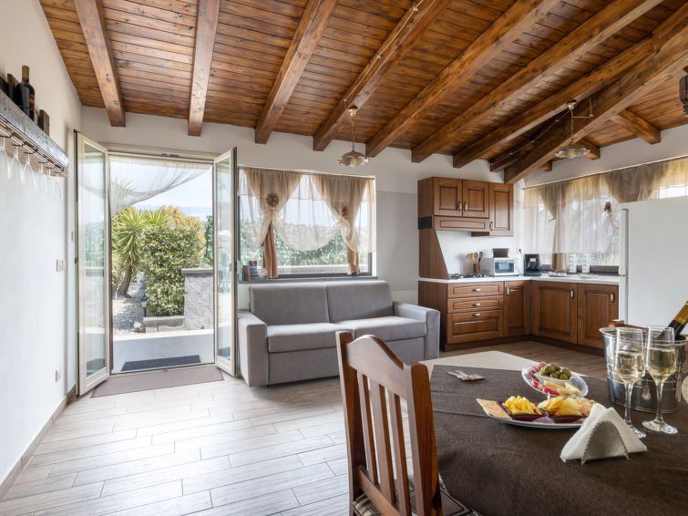The accommodation was okay, well-maintained and very clean, but unfortunately somewhat poorly furnished. The road to the accommodation is a disaster and almost impassable, with over a kilometer of huge potholes and rocks, making the house difficult to reach. The apartment is very humid inside. However, we didn't want to pay €15 a day for air conditioning; it's too expensive. Unfortunately, the power went out several times during the night, which triggered the alarm. The hosts spoke little English and no Italian.