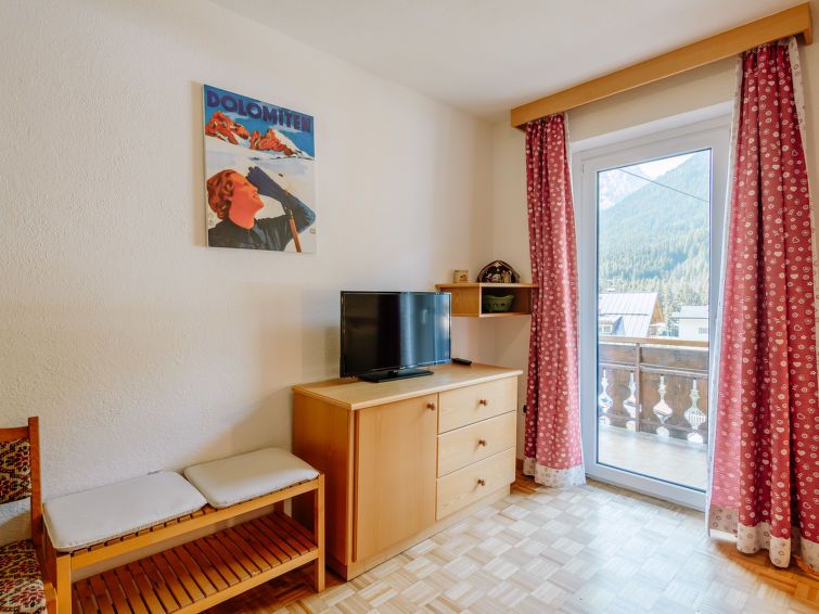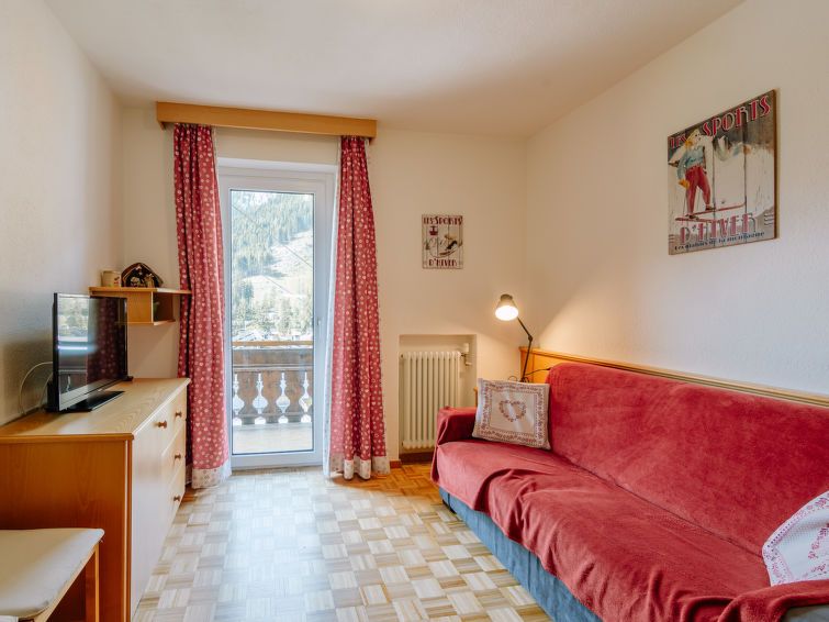 "Appartamento Balzan", 2-room apartment on 1st floor. Practical and comfortable furnishings: entrance hall. Living/sleeping room with 1 sofabed, TV and flat screen. Exit to the balcony. 1 double bedroom with panoramic window. Kitchen (4 ceramic glass hob hotplates, microwave) with dining table.