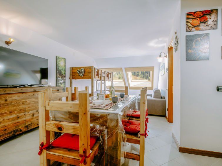 "Torrita di Canazei", 2-room apartment on 3rd floor. With sloping ceilings, fully renovated in 2022, modern and tasteful furnishings: 1 double bedroom with bath/bidet/WC and hydro massage bath. Living room with 1 bed, 1 double sofabed and shower/bidet/WC. Kitchen (oven, dishwasher, 4 induction hot plates, microwave) with dining table, TV (flat screen).