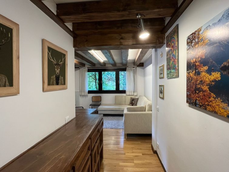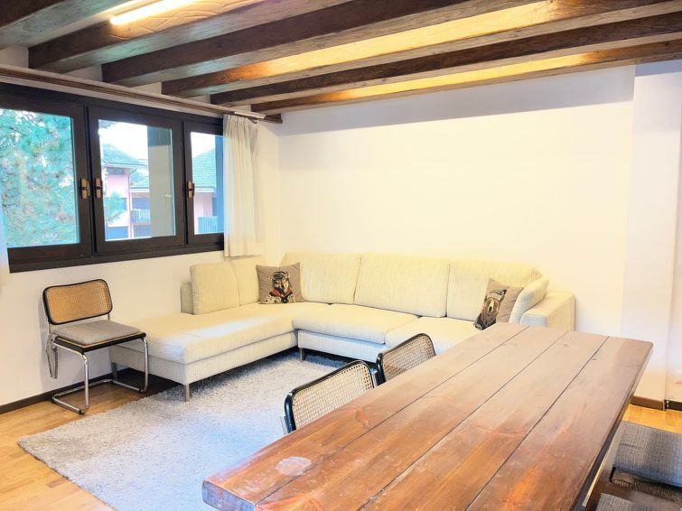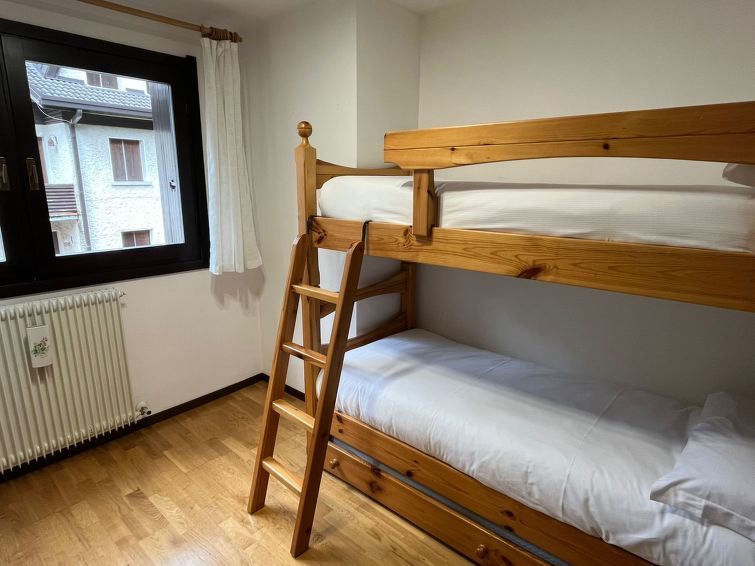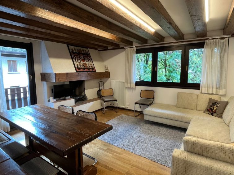 "Al Parco", 3-room apartment 70 m2 on 3rd floor. Bright, comfortable furnishings: living/dining room with open-hearth fireplace (only for decoration), dining table and TV. Exit to the balcony. 1 double bedroom. Exit to the balcony. 1 room with 1 x 2 bunk beds (80 cm, length 190 cm), 1 pull-out bed (1 pers.