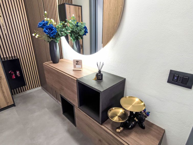 "Rosa Blu", 2-room apartment 47 m2 on 1st floor. Bright, fully renovated in 2025, modern and cosy furnishings: living/dining room with 1 double sofabed, dining table and TV. Exit to the balcony. 1 double bedroom with TV. Kitchenette (oven, dishwasher, 4 induction hot plates, kettle, microwave, electric coffee machine).
