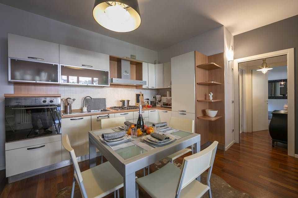Enjoy breakfast, lunch and dinner at the outdoor dining table, plus the odd aperitif – you are on holiday, after all. The balcony is shaded, which means you can enjoy the views and hilltop breeze without the sunshine overwhelming you. Inside, you'll find everything you need for a comfortable stay, from the inviting seating area to the fully equipped kitchen. Slide open the doors as you cook to let the warm Italian air waft in.