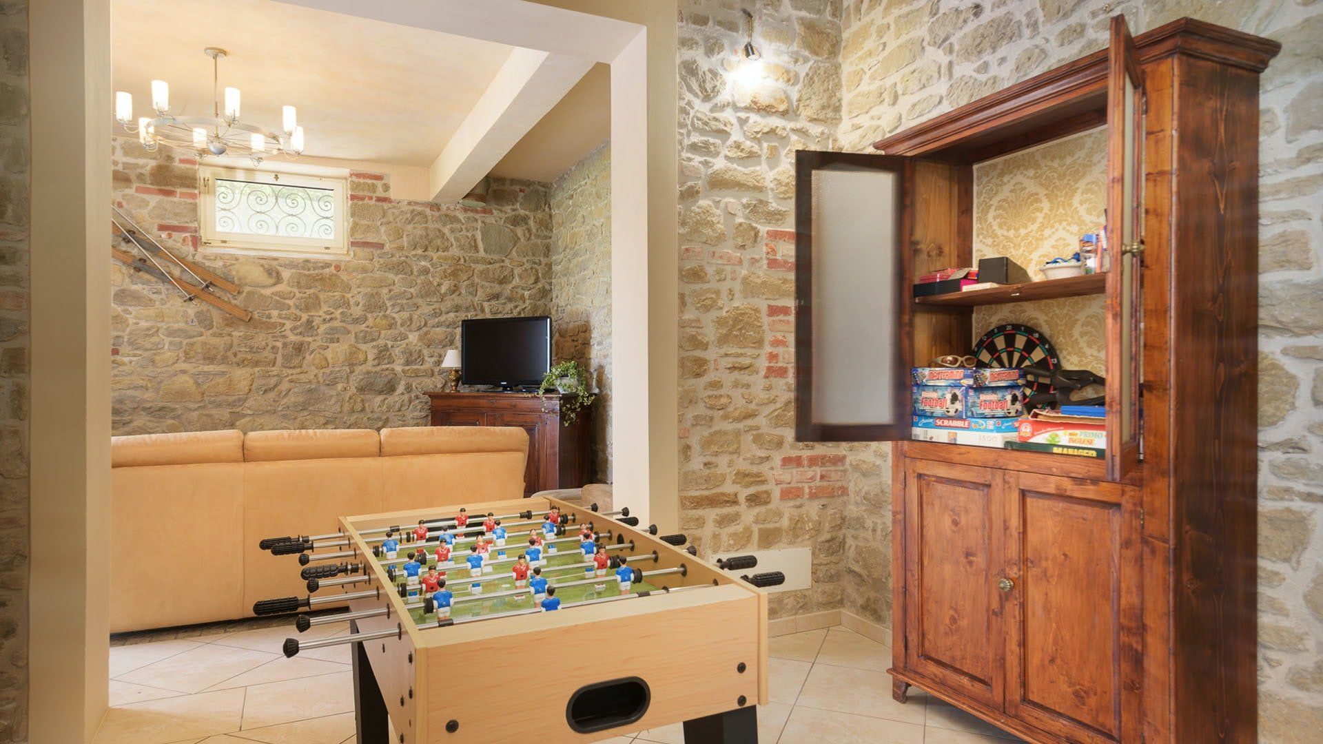 There's plenty to keep you occupied too, with all sorts of board games provided, table football indoors and table tennis outside. And then there's the impressive private pool with its luxury sun loungers. In the evenings, grill on the barbecue, enjoy drinks on the terrace and watch the sun set over the green hills.