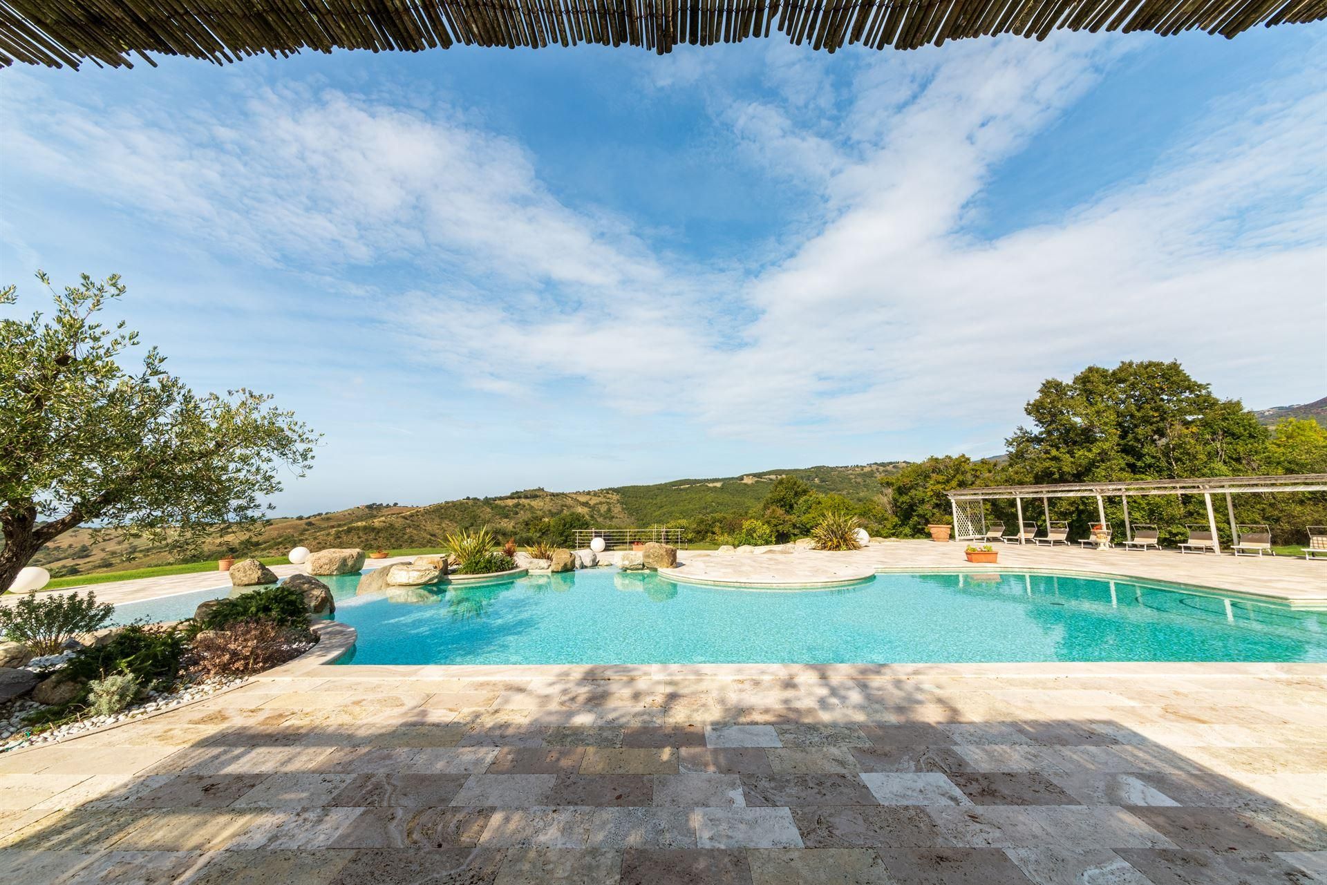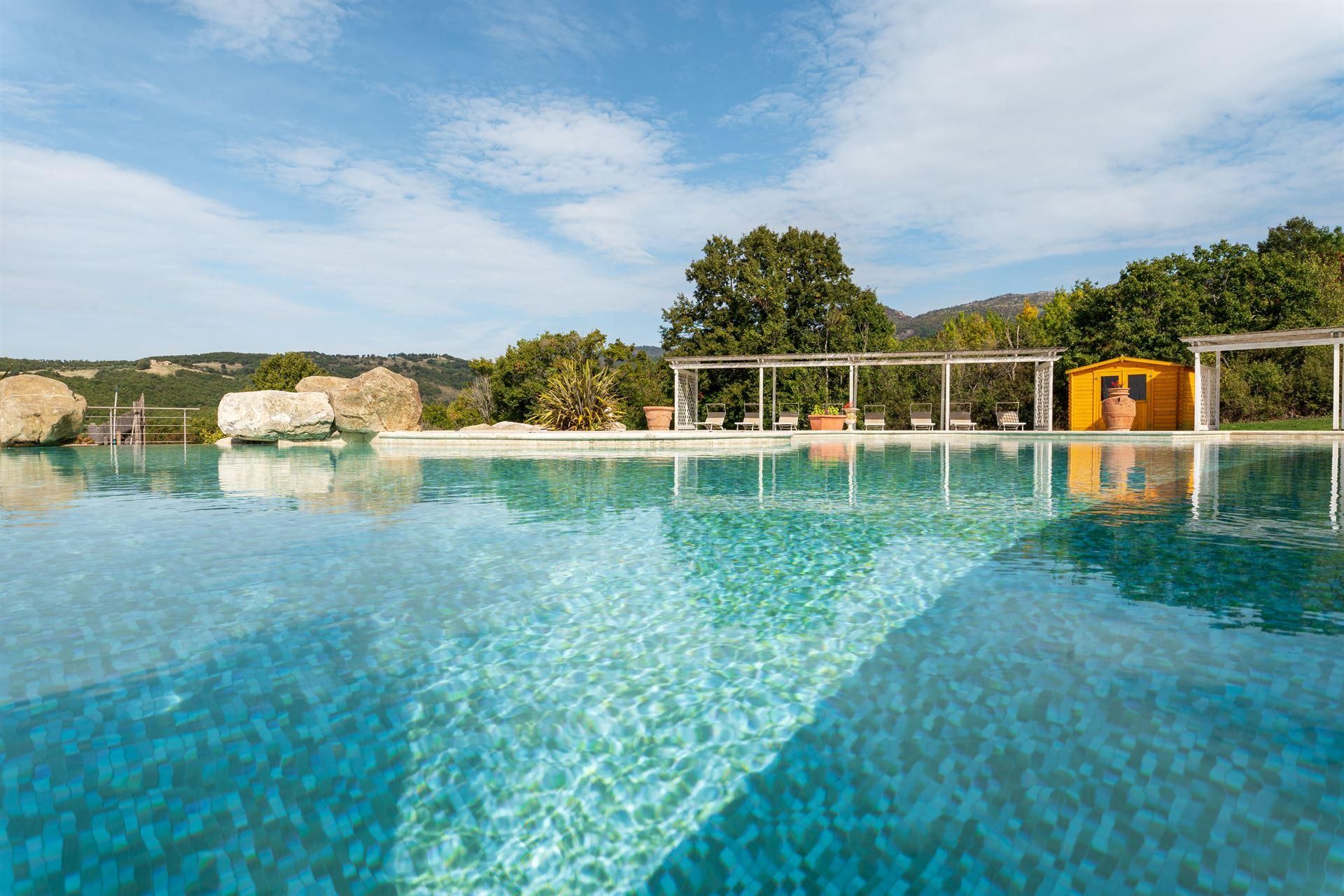 Nestled in the heart of the Tuscan countryside, this split-level villa is a true escape from it all. Sure, its traditional interiors may not suit everyone, but the outdoor space will be a hit with all. From the private terrace boasting panoramic views to the shared swimming pools – three in total – you can make the most of the Mediterranean climate here. If you need to relax further, take a thirty-kilometre drive to Saturnia’s hot springs – free to use, the thermal waters will soothe your soul.