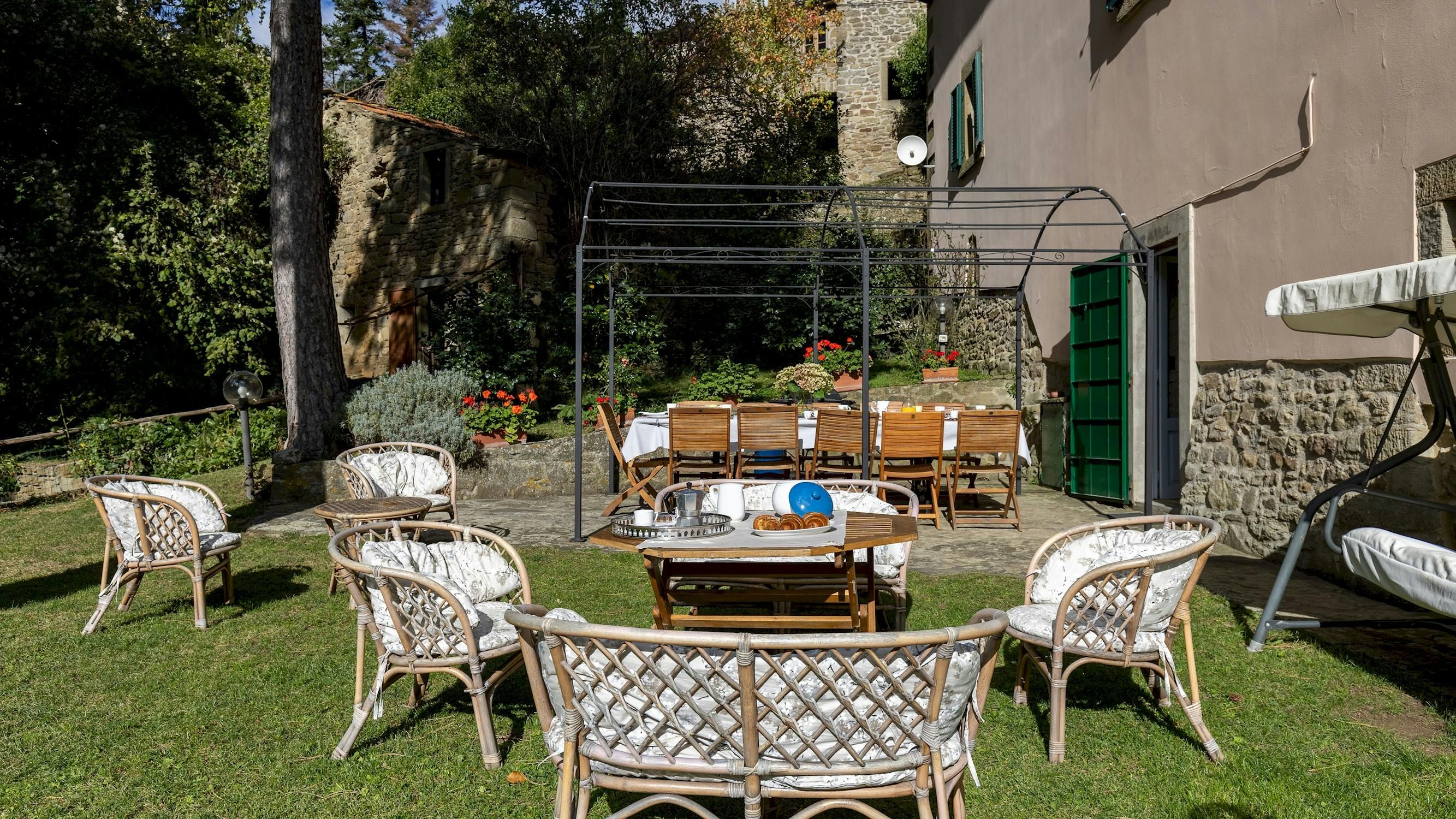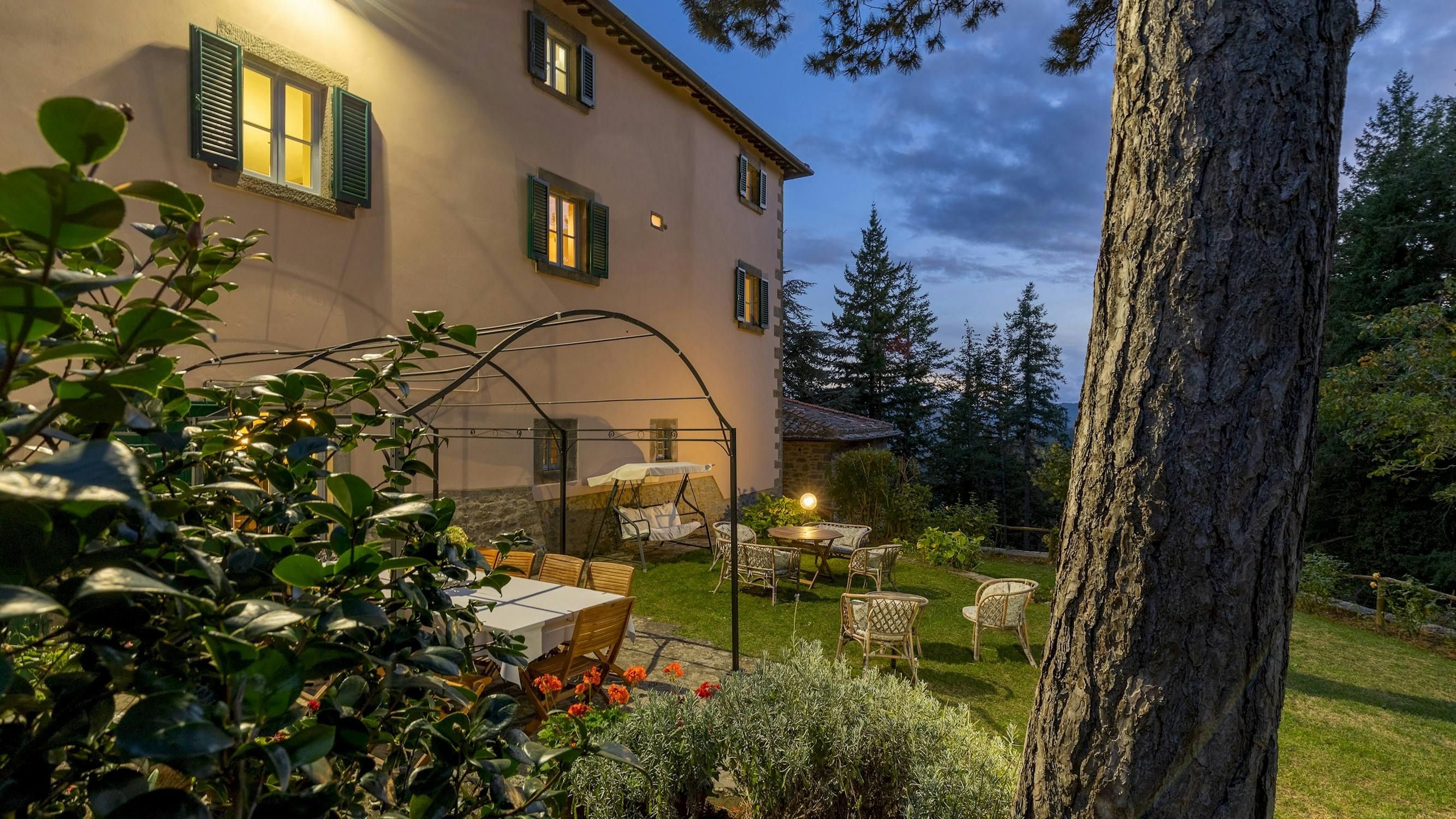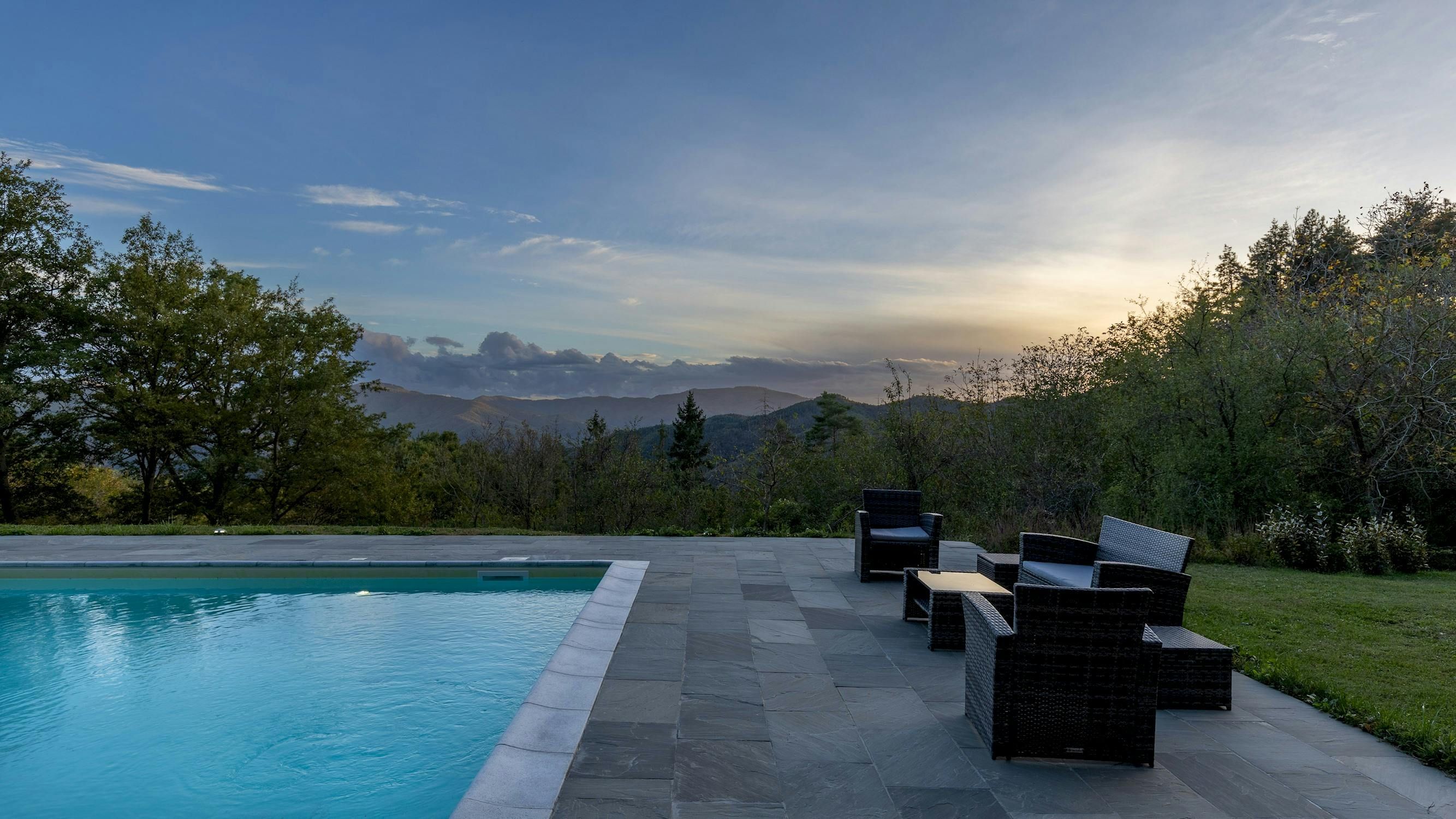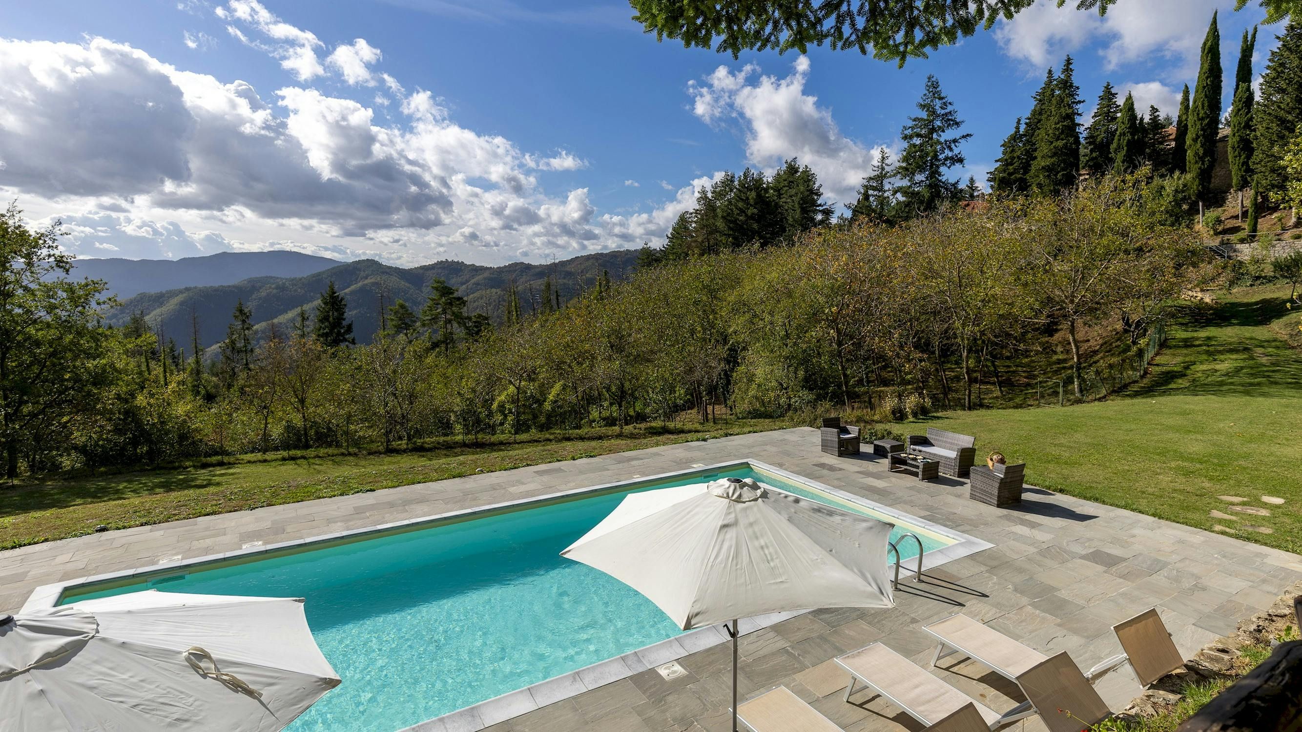 Tucked away in the town of Santa Maria alla Rassinata, amid the hills of Arezzo, this delightful holiday home promises beautiful views. The house dates back to the mid-16th century and has been expertly restored, showcasing retro charm. Outside, you’ll have a swimming pool surrounded by panoramic views, and a terrace with a pool house and a minibar. The well-maintained gardens feature antique roses, hydrangeas, and aromatic plants. The setting is ideal for long walks and bike rides, and you’ll be just an eighteen-minute drive from Palazzo del Pero.