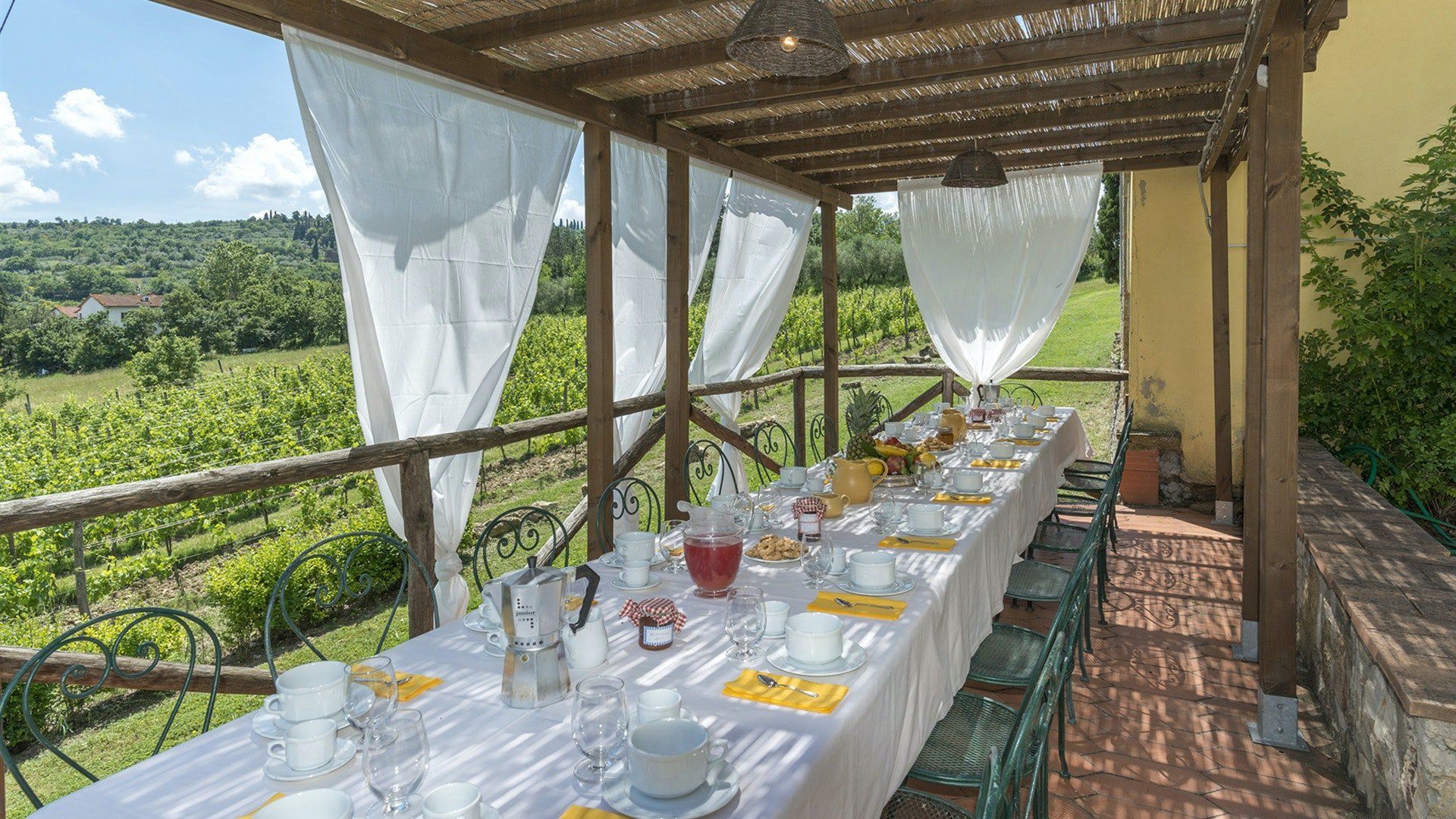 Enjoy meals al fresco at the striking table on the balcony and drinks in the portico. With outdoor seating for almost every occasion – including coffee and quiet contemplation under the vine-covered pergola – entire days can be spent in Tuscan temperatures, but don’t be surprised if the 16th-century charm of the home calls you in.
