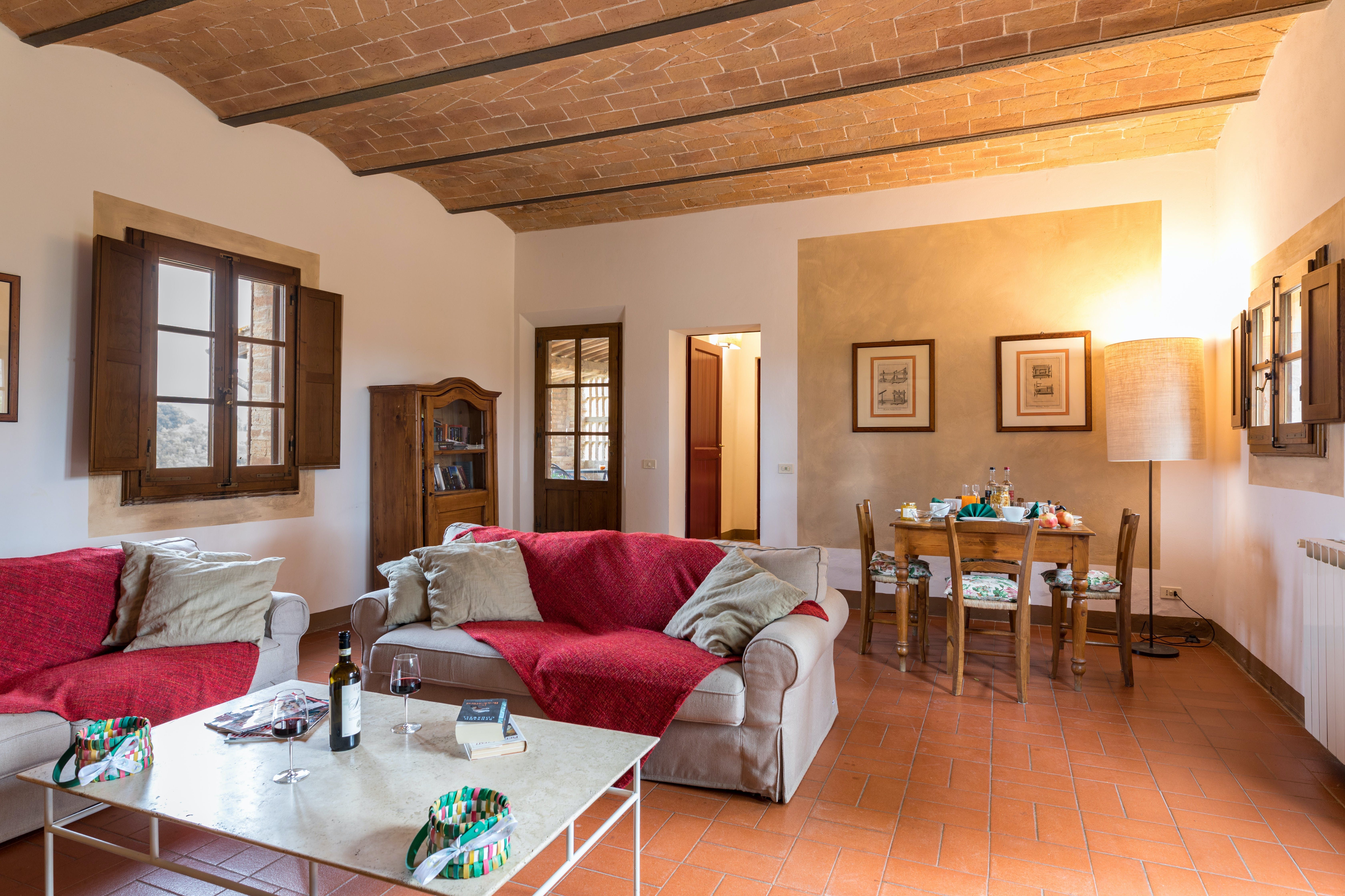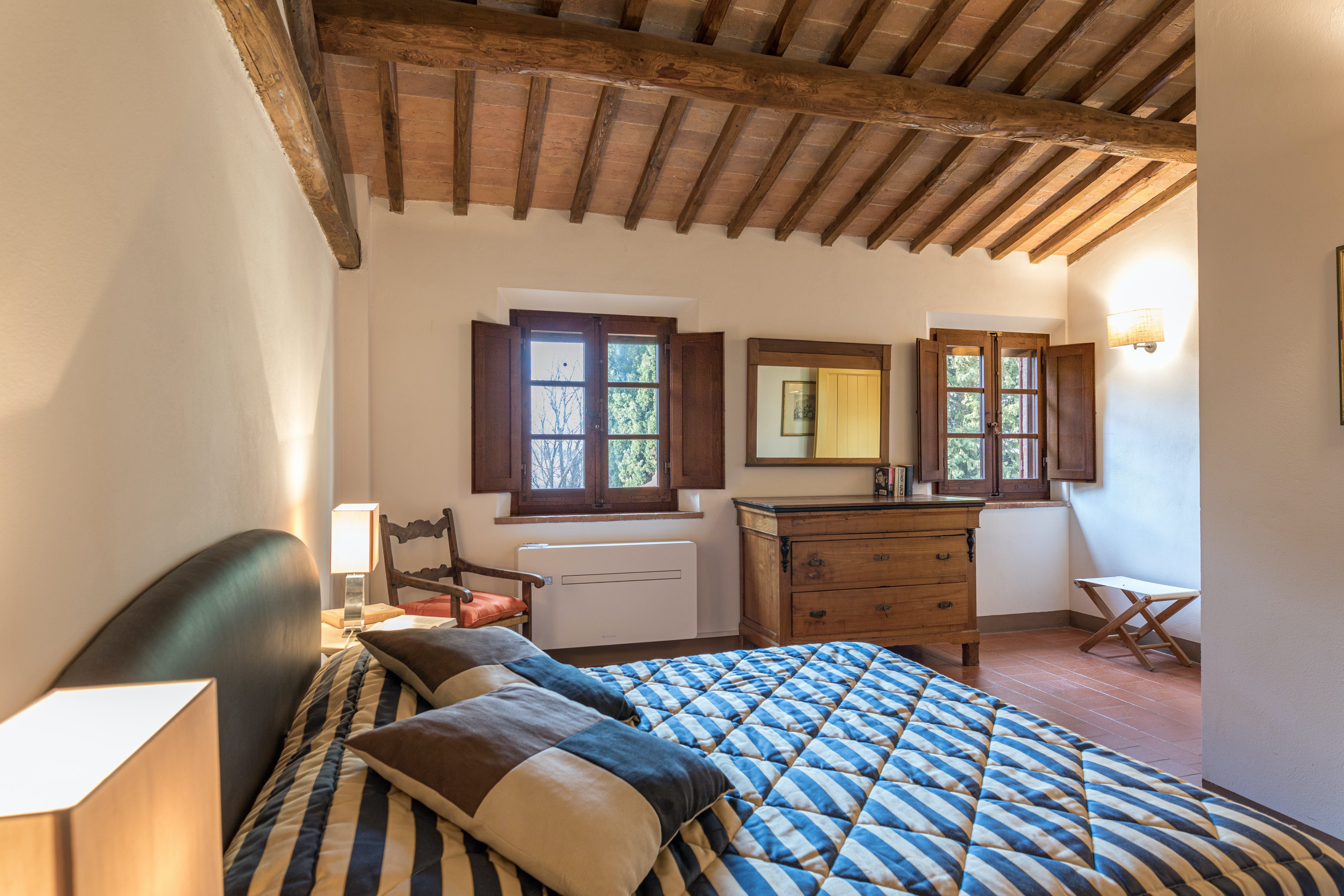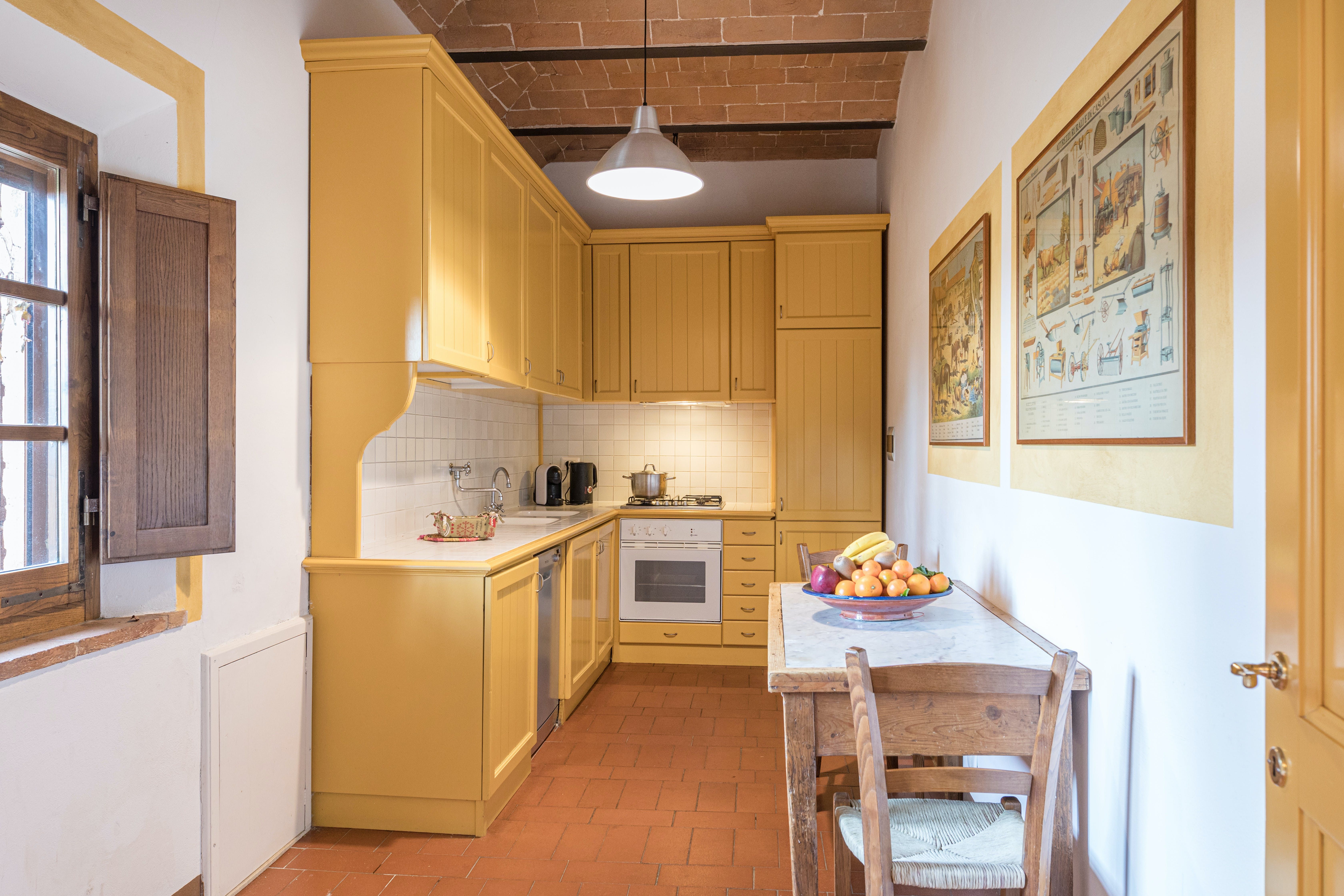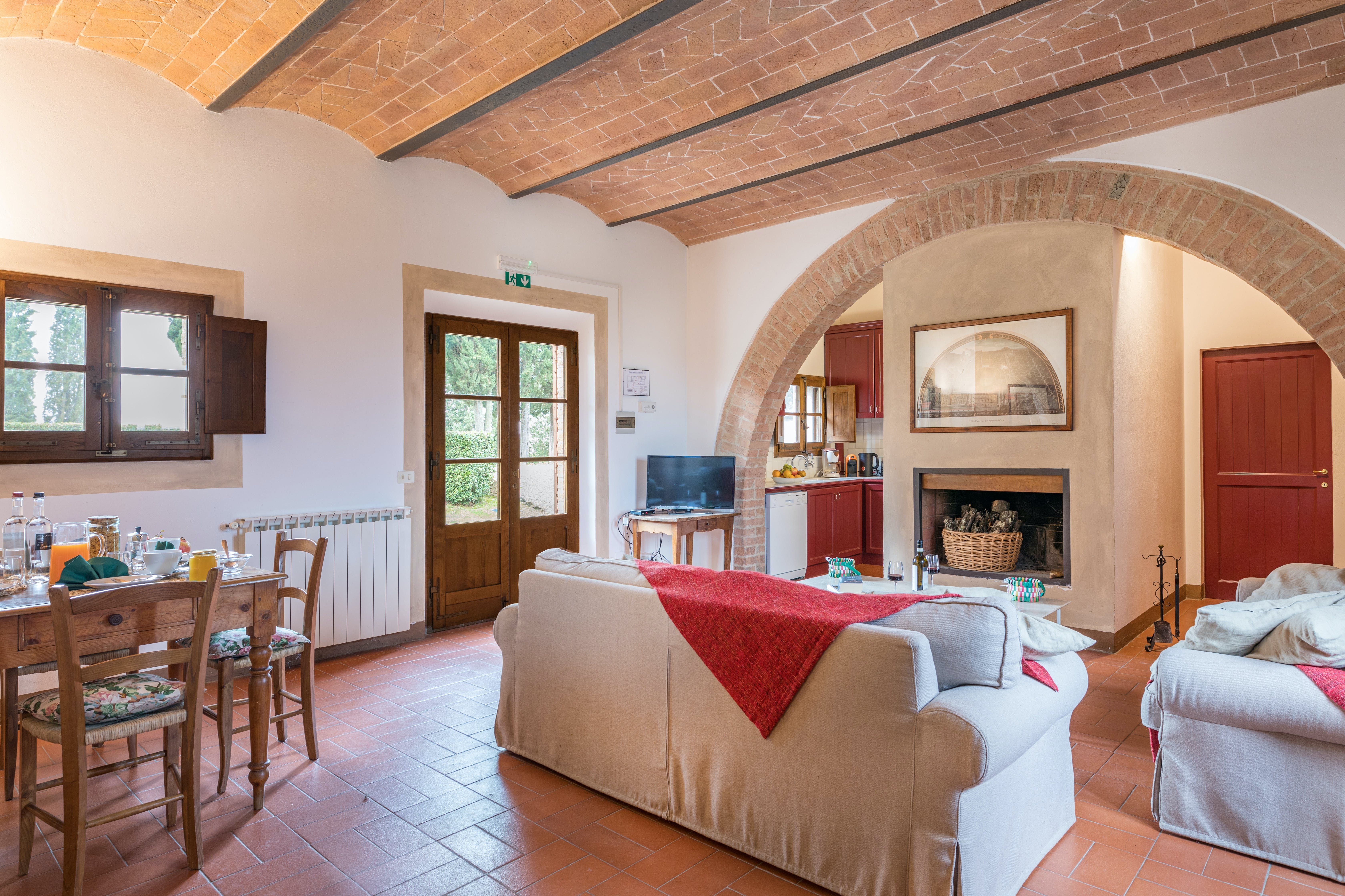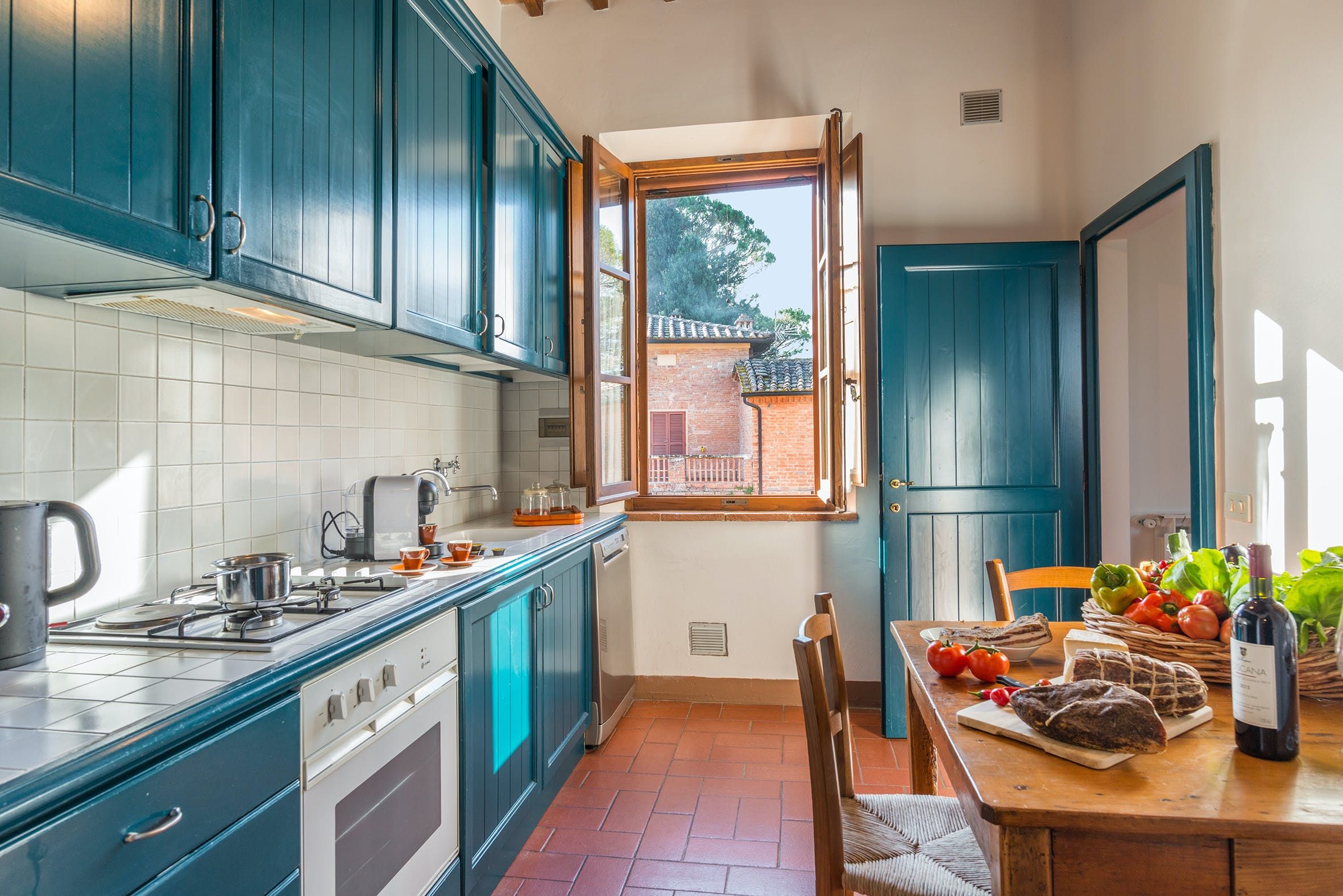 Nestled amid a medieval country estate, this home welcomes guests to enjoy its sprawling gardens, private pool, tennis court and beautiful views. There are 11 individual apartments here, each offering a wonderful sense of privacy, peace and rustic charm. It’s also a great base from which to explore the region. From here, it’s just 25 kilometres to Siena, while the nearest shops and restaurants can be found in Monteroni d’Arbia and Asciano – both just a short drive away.