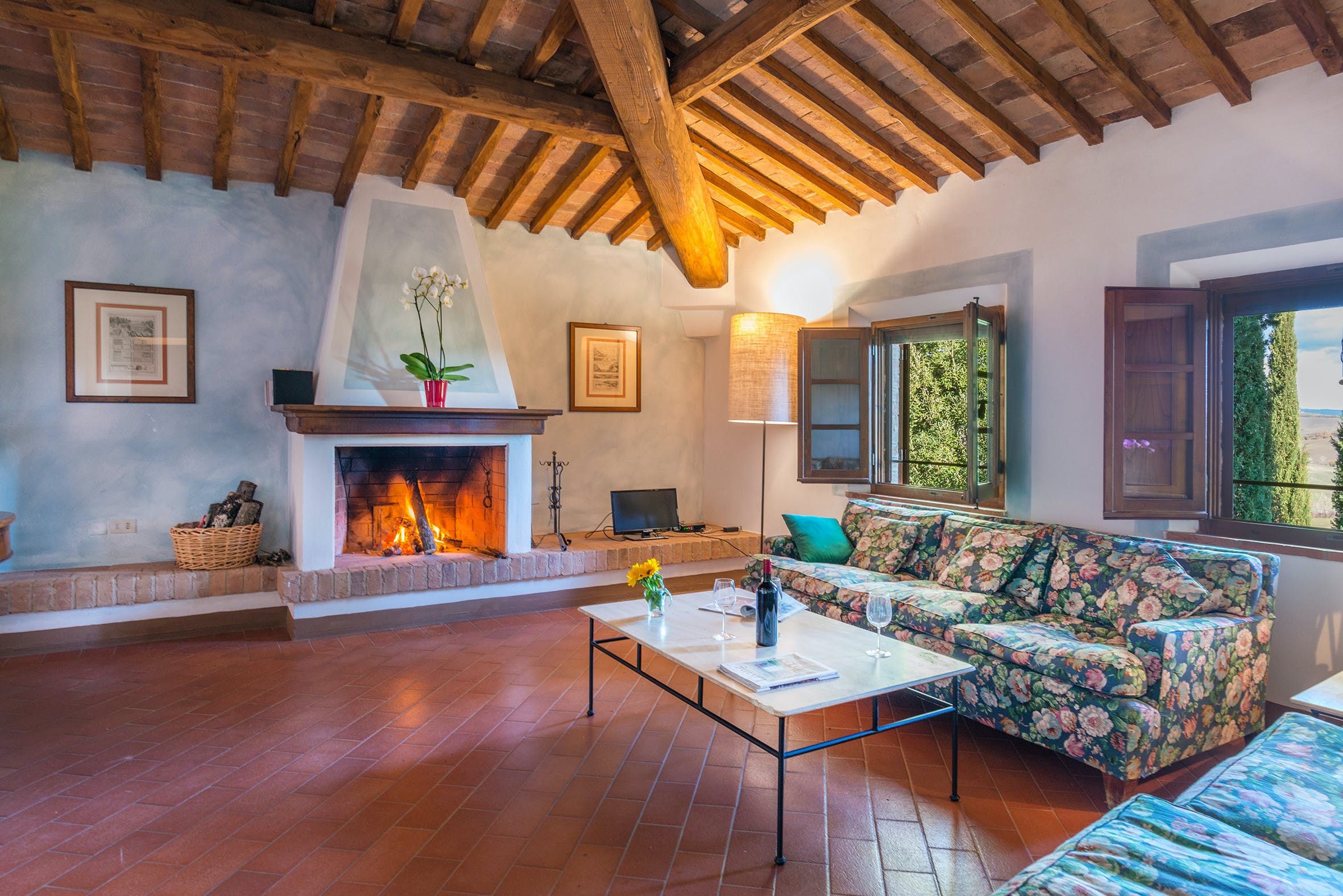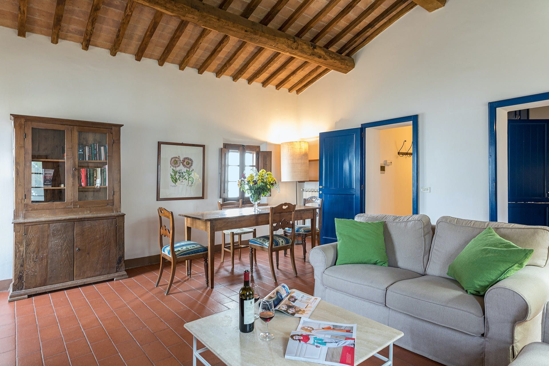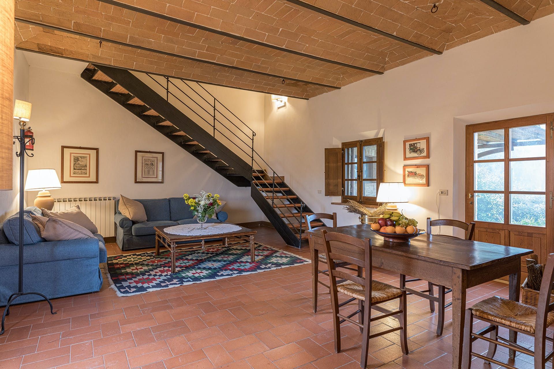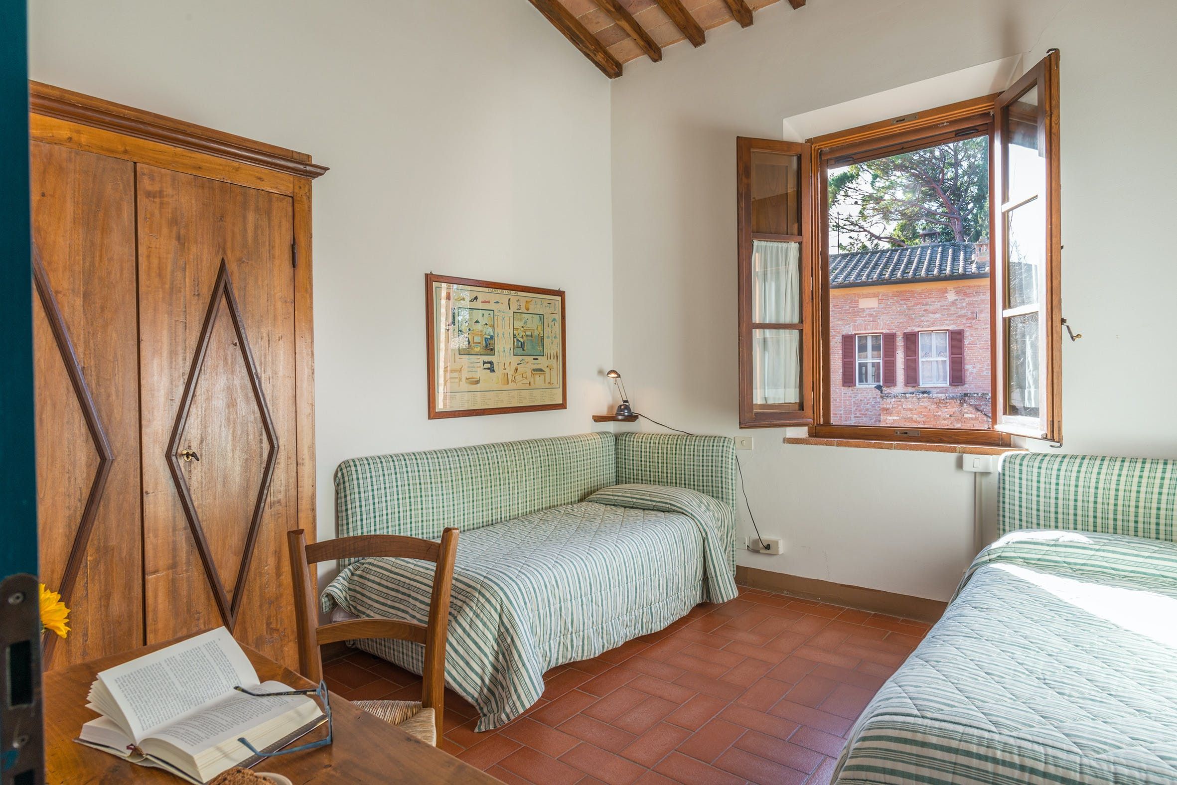 Nestled amid a medieval country estate, this home welcomes guests to enjoy its sprawling gardens, private pool, tennis court and beautiful views. There are 11 individual apartments here, each offering a wonderful sense of privacy, peace and rustic charm. It’s also a great base from which to explore the region. From here, it’s just 25 kilometres to Siena, while the nearest shops and restaurants can be found in Monteroni d’Arbia and Asciano – both just a short drive away.