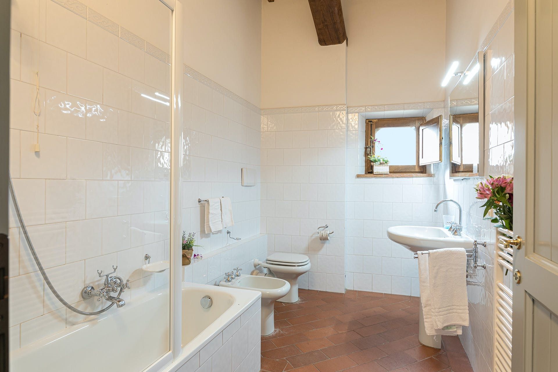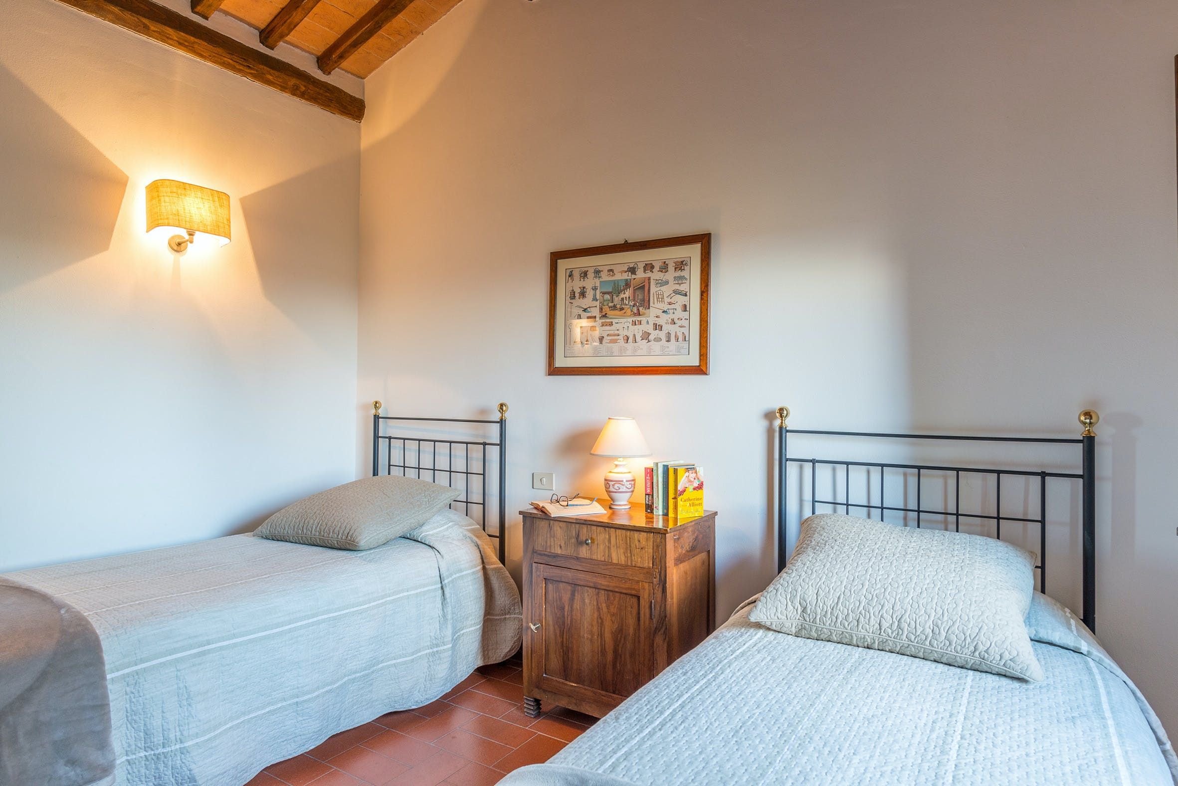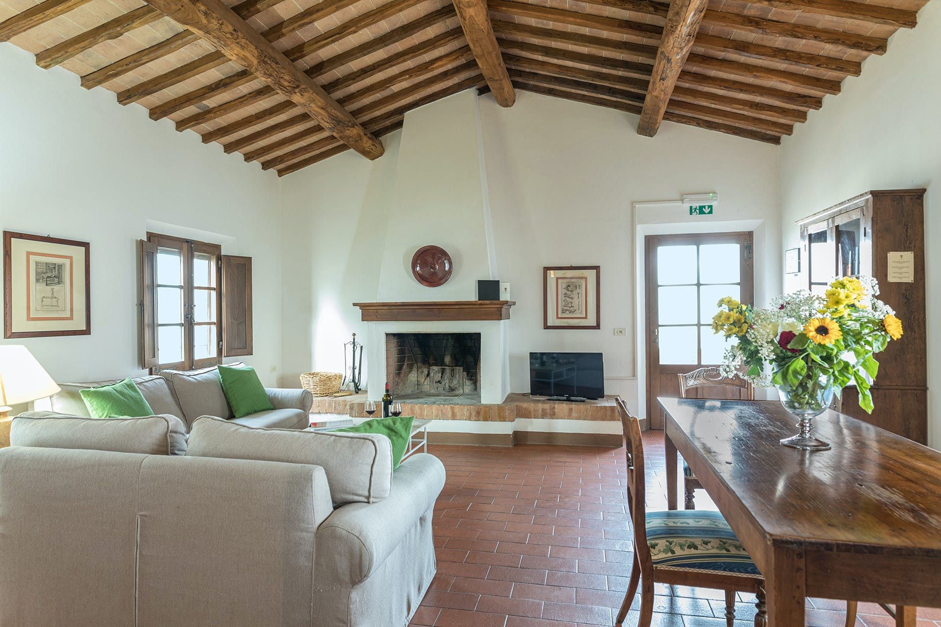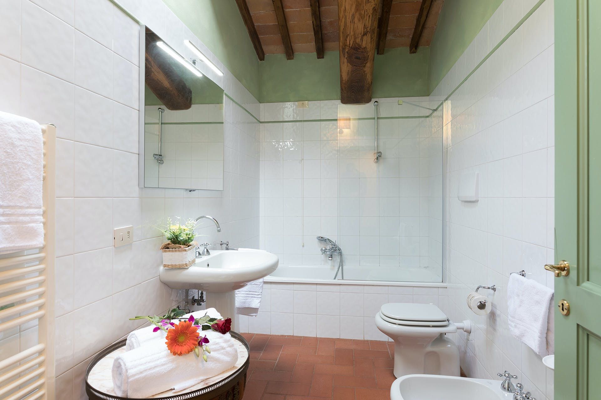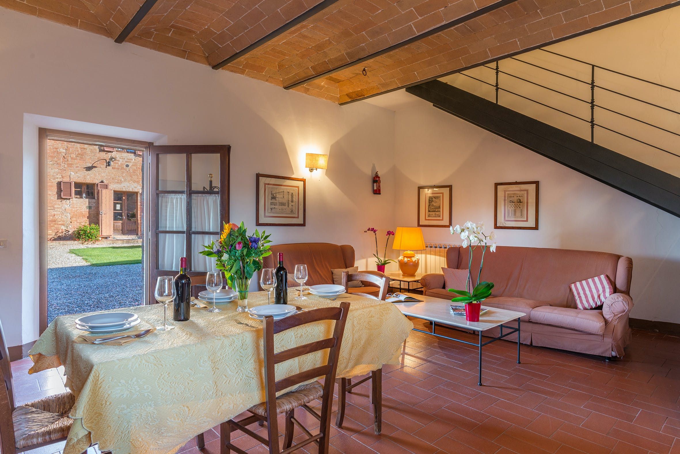 Nestled amid a medieval country estate, this home welcomes guests to enjoy its sprawling gardens, private pool, tennis court and beautiful views. There are 11 individual apartments here, each offering a wonderful sense of privacy, peace and rustic charm. It’s also a great base from which to explore the region. From here, it’s just 25 kilometres to Siena, while the nearest shops and restaurants can be found in Monteroni d’Arbia and Asciano – both just a short drive away.