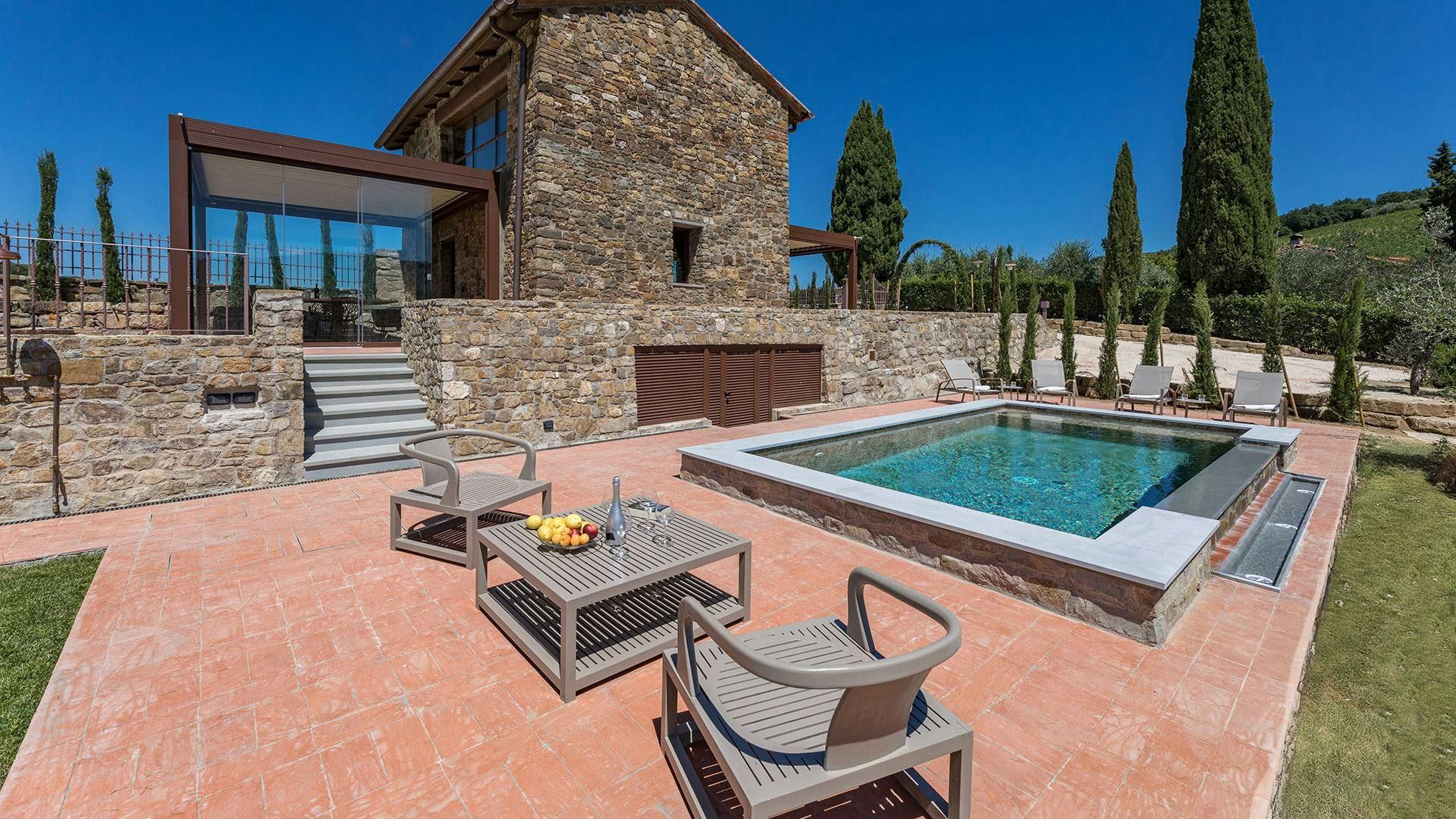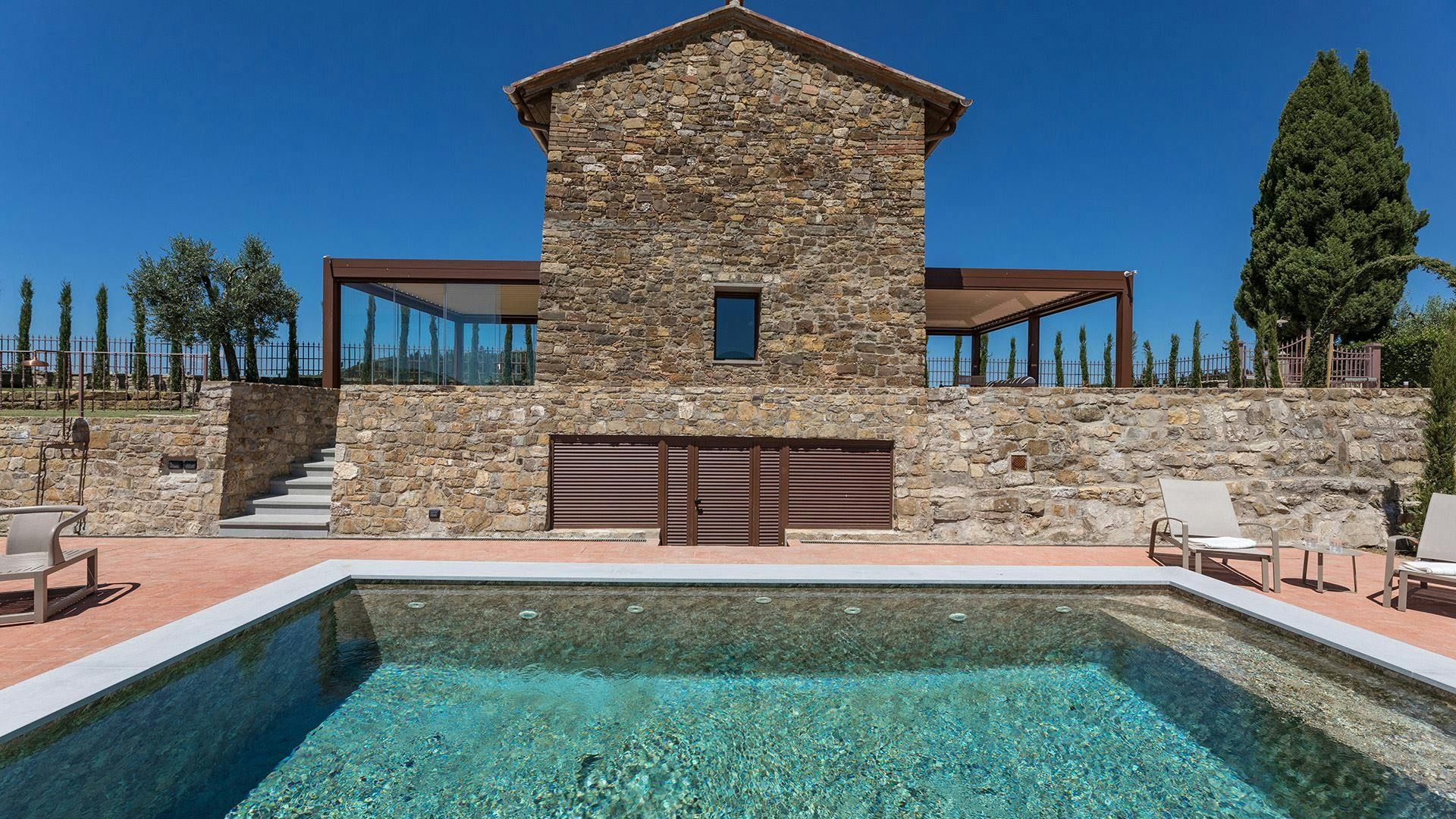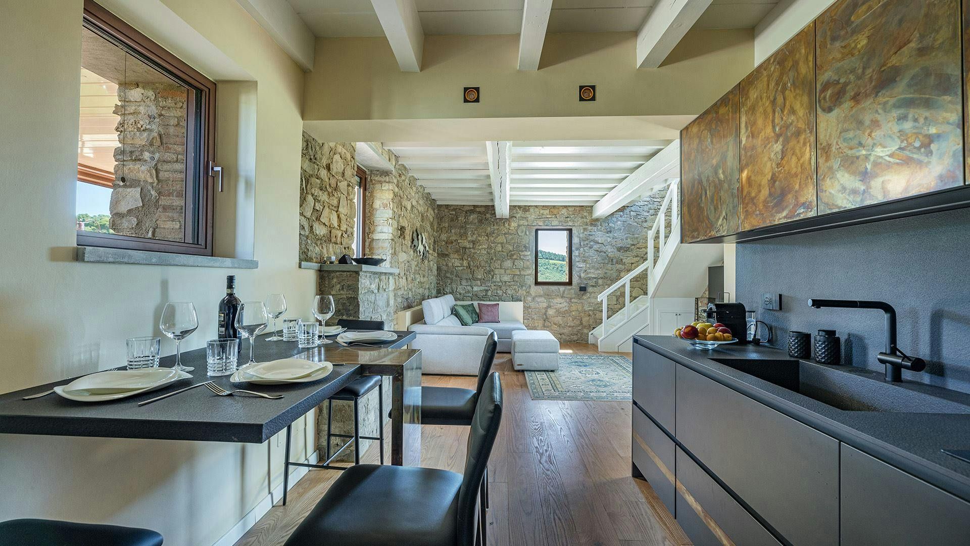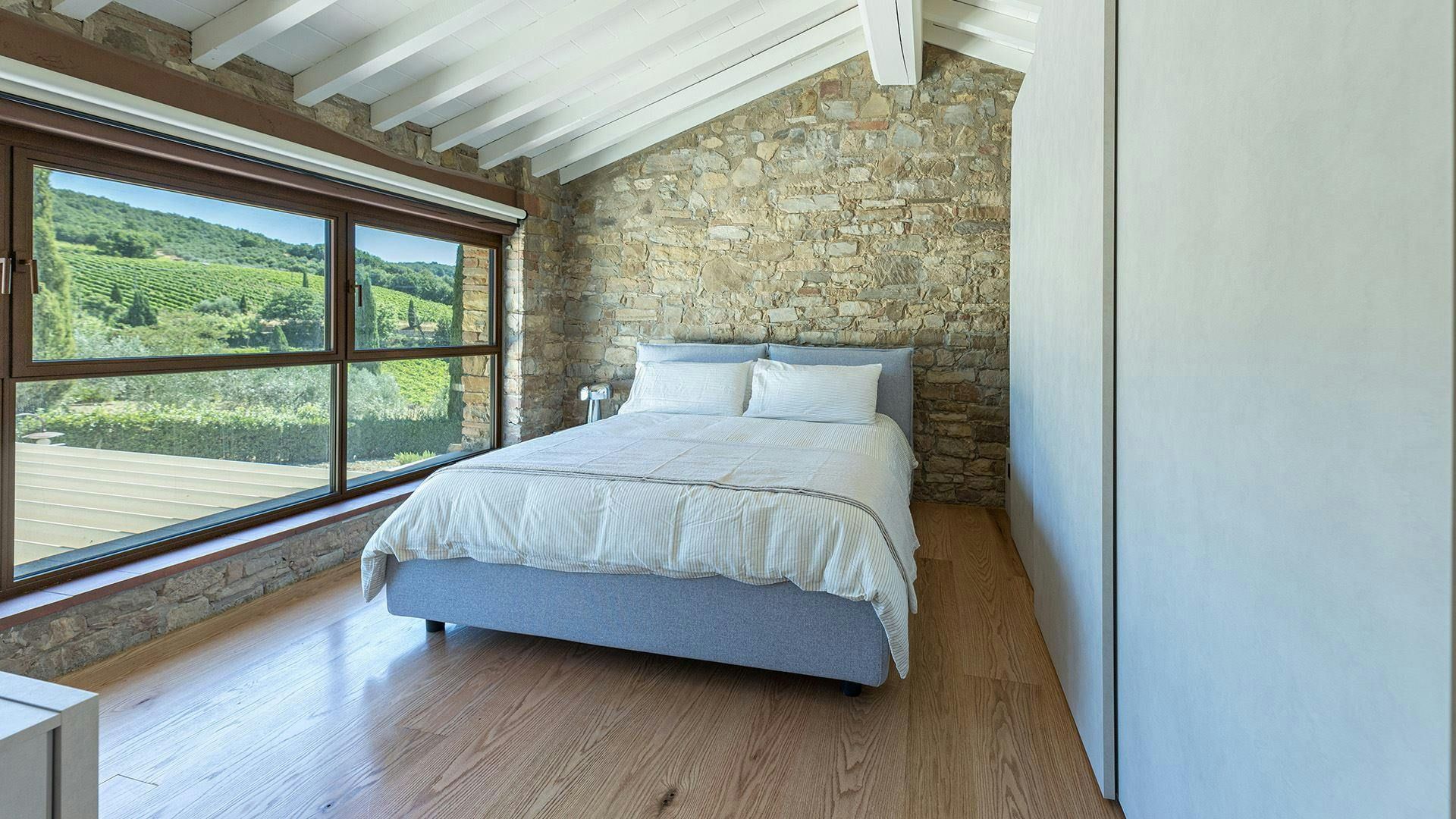A former ancient guard's post, this restored home effortlessly blends character details with contemporary features. The living space boasts exposed stone walls and white-washed beams, yet it has all you need to relax comfortably. You can even glimpse the old peepholes the guards used. But it's the outdoor space that really shines. Two terraces offer endless opportunities for alfresco dining, while the swimming pool (which can be heated for a fee) is as refreshing as it looks. When you're ready to explore, you can walk into the tiny hamlet of Badia a Passignano or hit the road and discover Greve in Chianti, San Gimignano, and Florence by car.