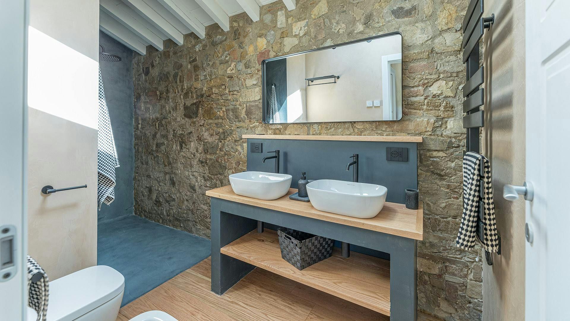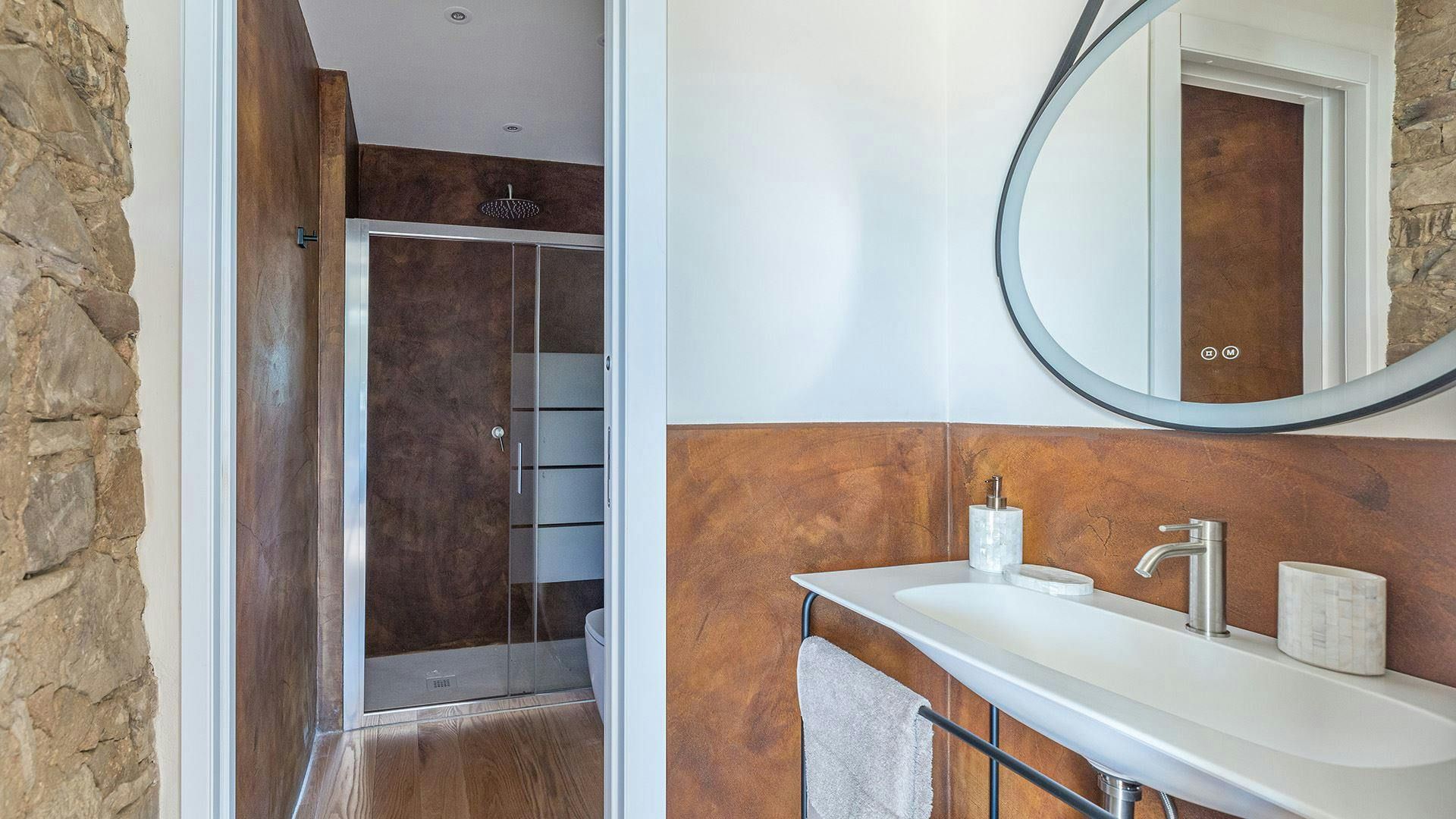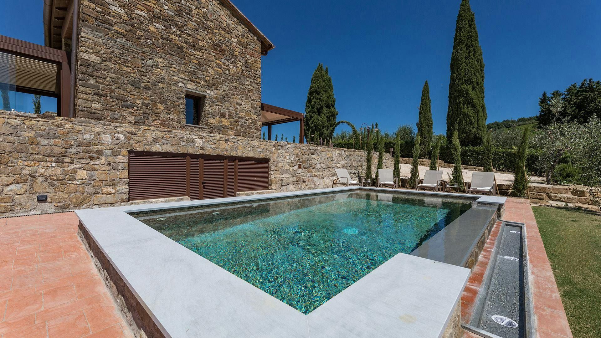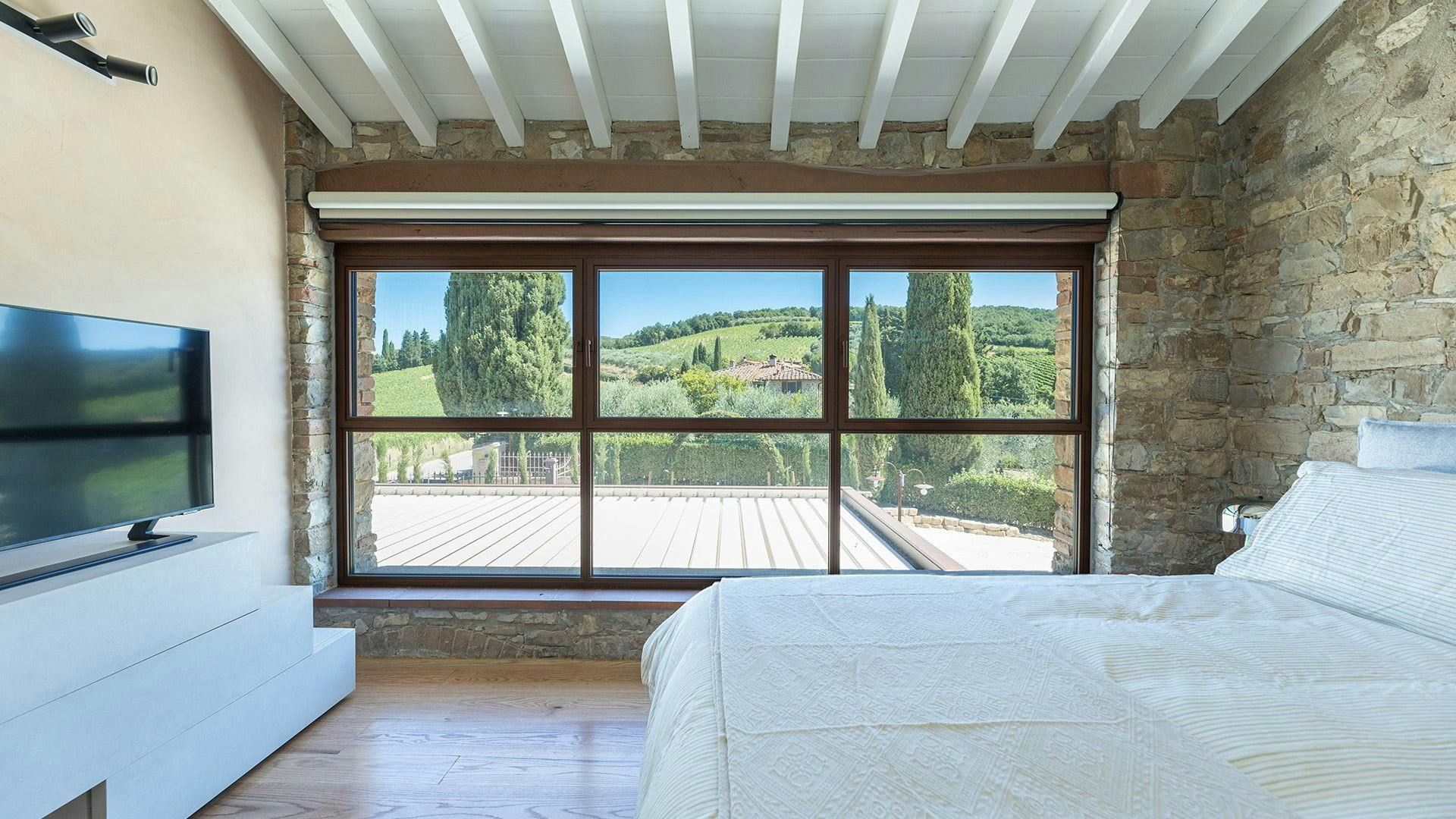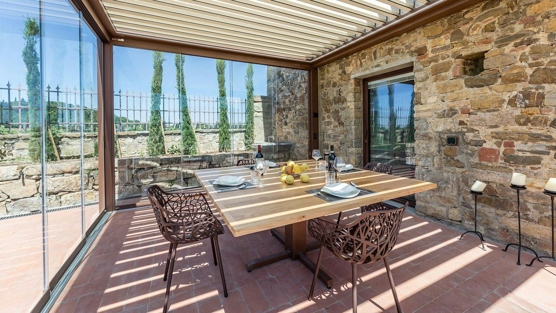 A former ancient guard's post, this restored home effortlessly blends character details with contemporary features. The living space boasts exposed stone walls and white-washed beams, yet it has all you need to relax comfortably. You can even glimpse the old peepholes the guards used. But it's the outdoor space that really shines. Two terraces offer endless opportunities for alfresco dining, while the swimming pool (which can be heated for a fee) is as refreshing as it looks. When you're ready to explore, you can walk into the tiny hamlet of Badia a Passignano or hit the road and discover Greve in Chianti, San Gimignano, and Florence by car.