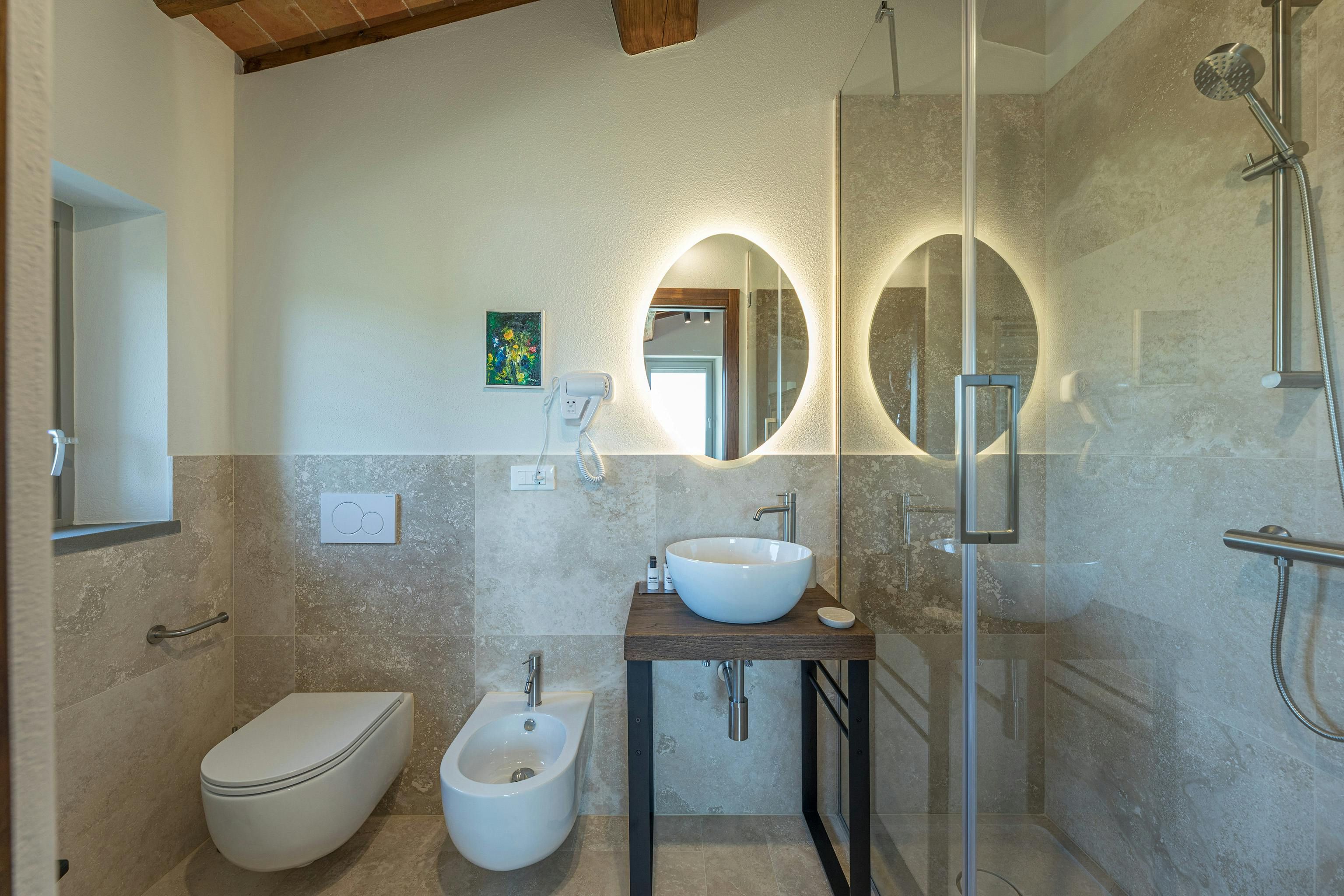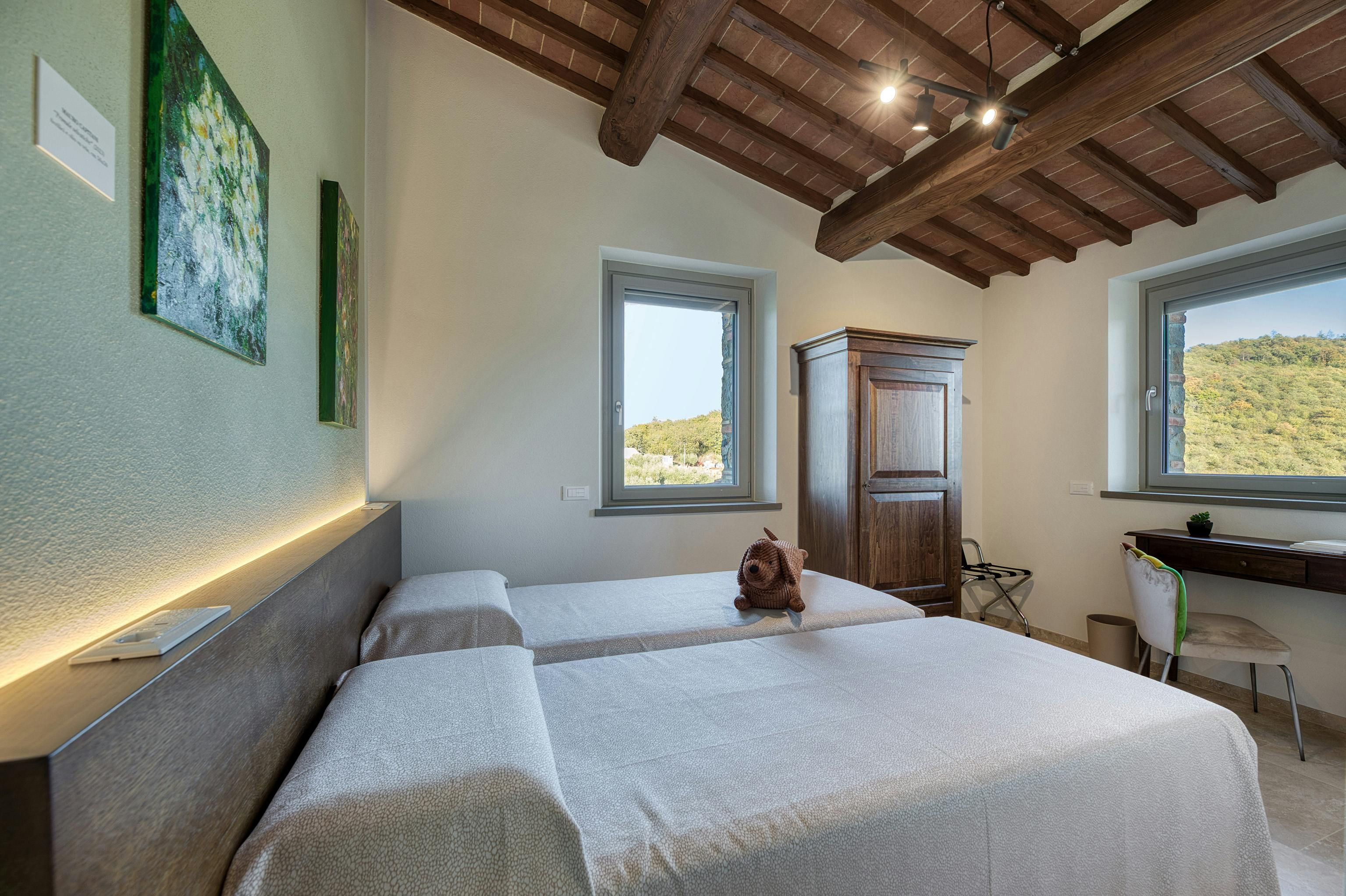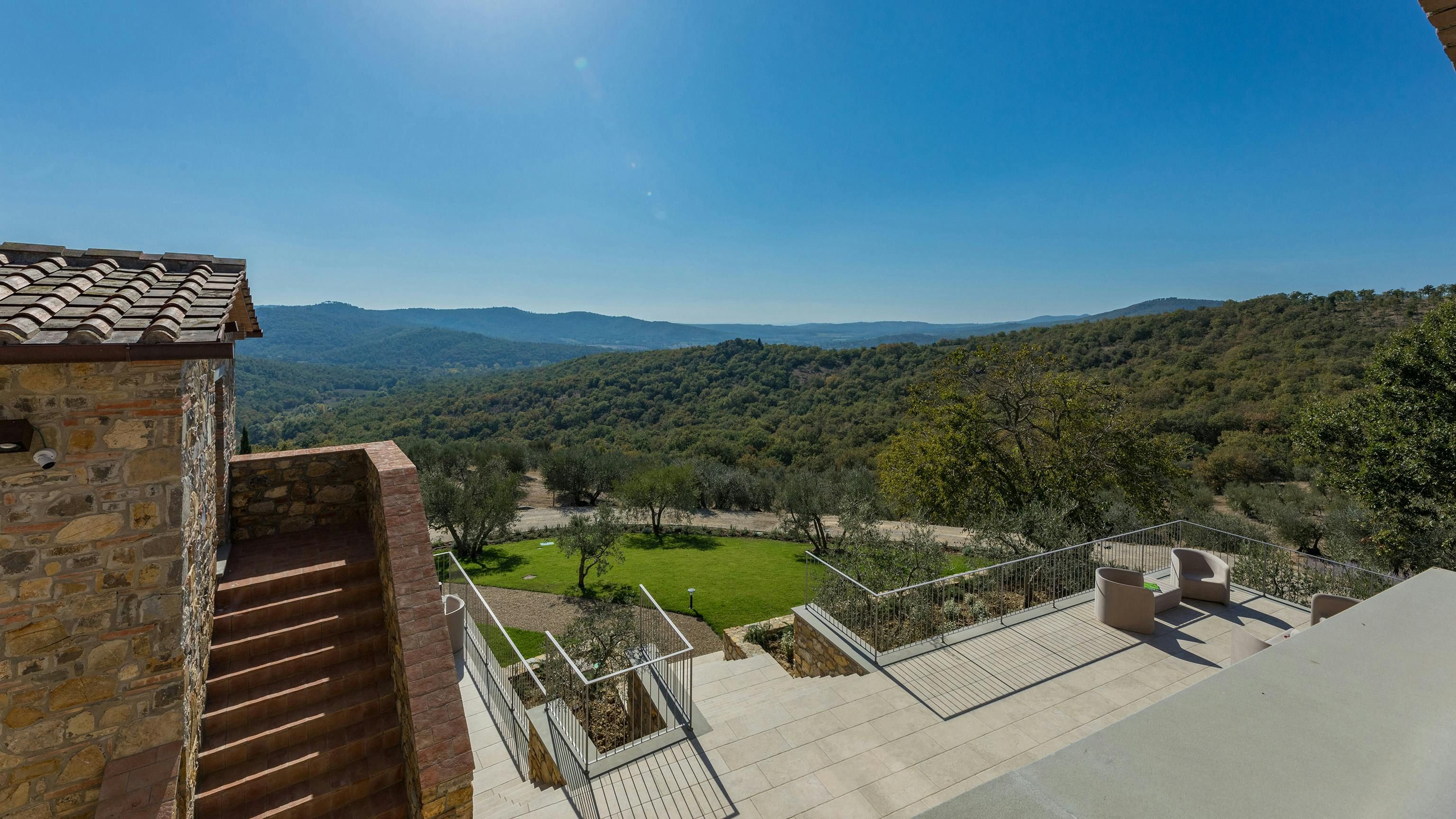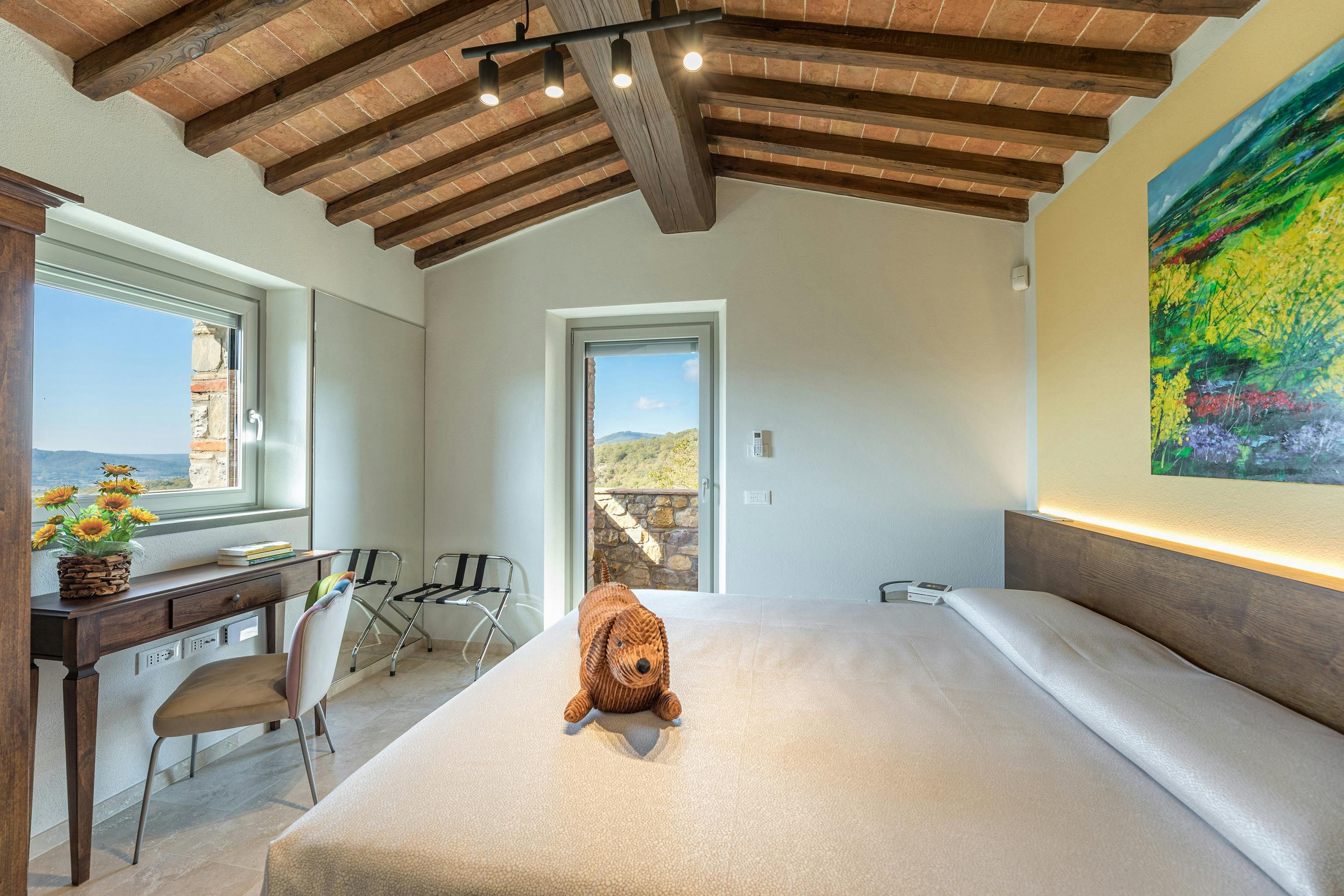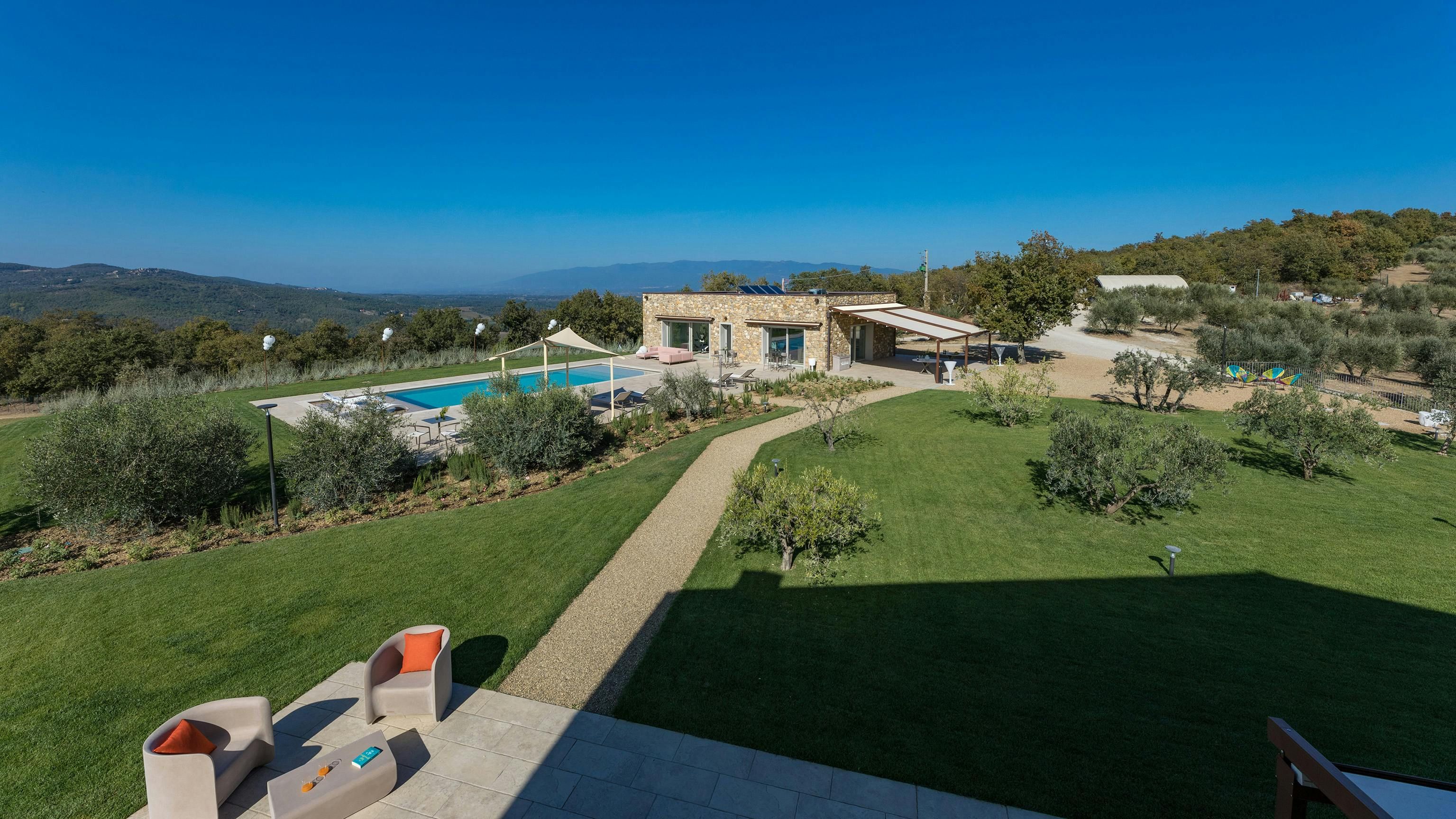 Views of the verdant hills surrounding this home make it a splendid spot for relaxation. The villa boasts a gym, yoga, and massage space in an annex near the swimming pool, within the well-kept garden. Dine under a pergola while watching the sun set over the Val d’Orcia, after a day spent outside in the sunshine. The stone-clad main house and renovated barn have classic Italian features including exposed wooden beams, but these are combined with modern furniture and art. The result? A stylish home-from-home perfect for a large group.