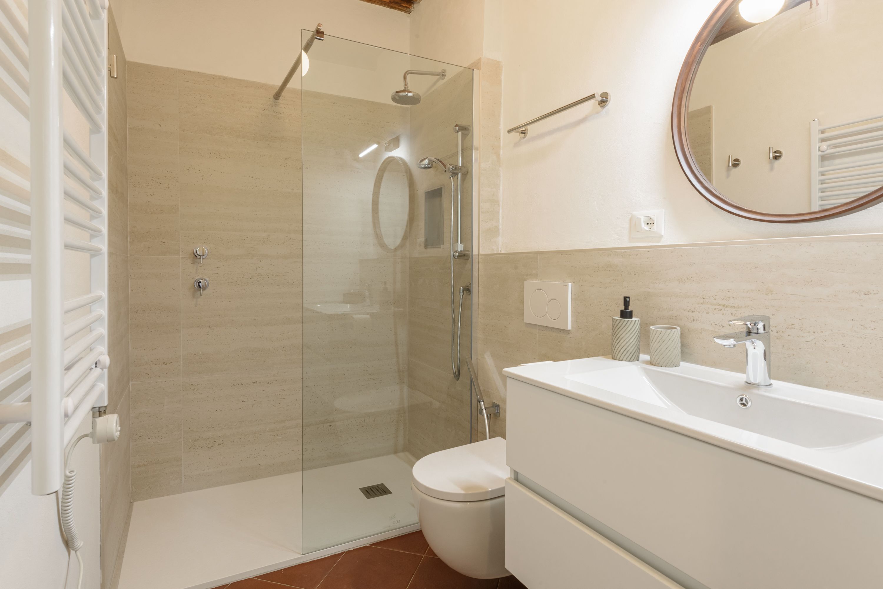 This farmhouse, built in the 16th century, is paradise. There’s a Tuscan travertine infinity pool and a bowling green to keep the kids and adults entertained. And there are several terraces to enjoy the spectacular views of the surrounding vineyards and Apennines. More of those wonderful vistas can be enjoyed inside with its traditional furnishings and character features such as stone walls and beams. We love that all the bedrooms here are en-suite too. Surrounded by olive groves and fields of lavender, this area is perfect for leisurely strolls. Located a short drive from the beautiful, fortified village of Barberino Val d'Elsa, you’ll find plenty to see, including the Palazzo Pretorio.