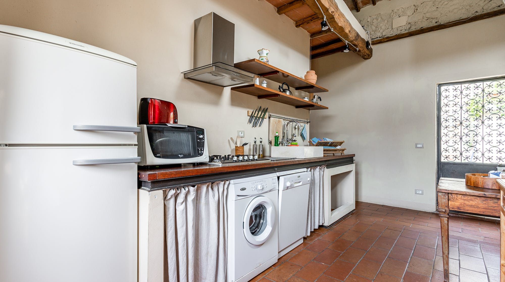 ​​Restored by an Italian architect with a gentle touch, this villa has been updated and split into more modern apartments, but without ever compromising on the original charm. By honouring the villa's history – and thereby retaining its character – the home feels traditionally Tuscan with its terracotta tiles and wooden beams. Walk barefoot across the floors to savour the coolness of those tiles on hot days, or light a fire in the wood-burning stove and stare up at the beams, imagining what life would’ve been like here. Nonnas rolling out pastry for tortellini, children helping churn gelato, wine flowing, and bowls of food changing hands in a celebration of ingredients, and life. You might even wish to recreate that – a holiday well spent.