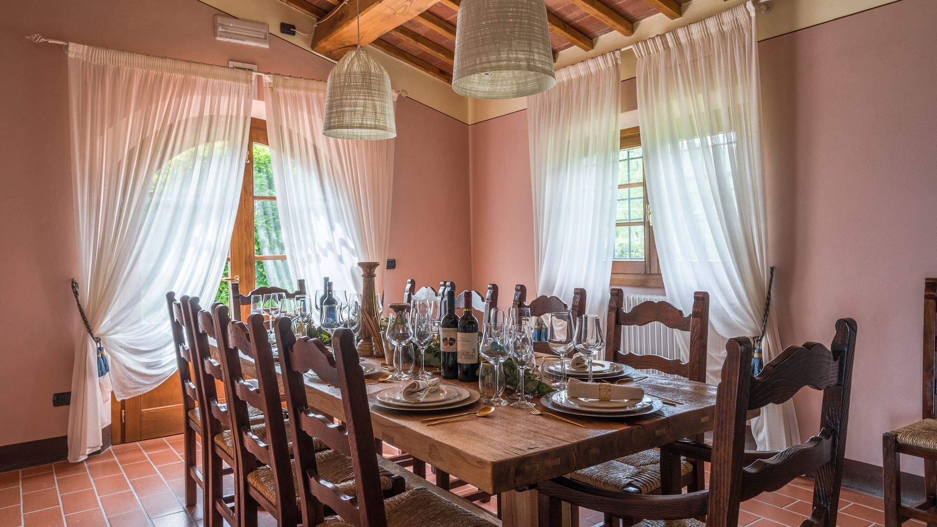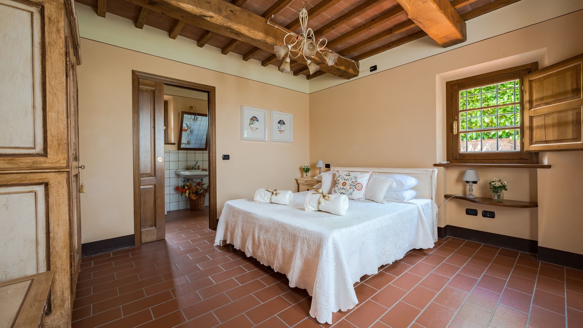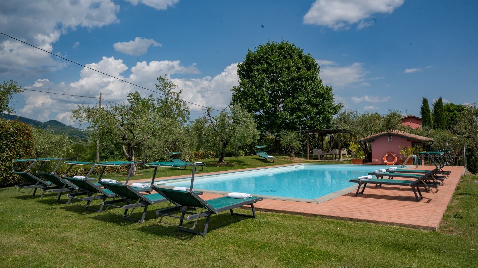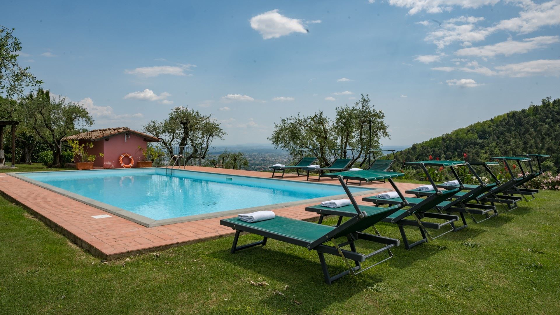 Offering breathtaking views across the rolling hills of Val di Nievole and Montecatini, this villa is as idyllic as can be. Days here are spent floating in the private pool, lounging in the sunshine, and feasting your eyes on the panoramas while tucking into an alfresco meal. The interior design mixes rustic and modern elements. Breezy bedrooms, including a ground-floor option for those with limited mobility, make this ideal for families and larger groups. Whether you're unwinding in the garden, exploring nearby vineyards, or venturing into Lucca for a day trip (it's a thirty-minute drive away), this home promises a quintessential Tuscan experience.
