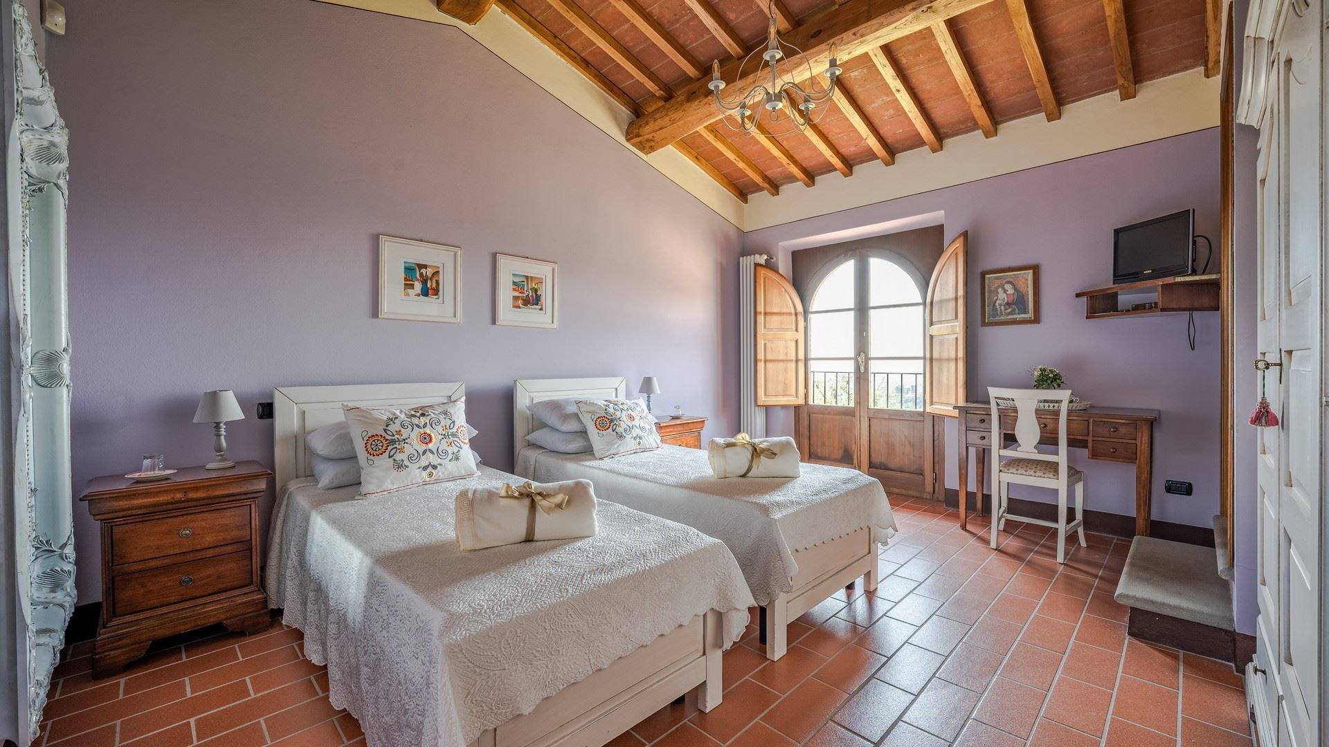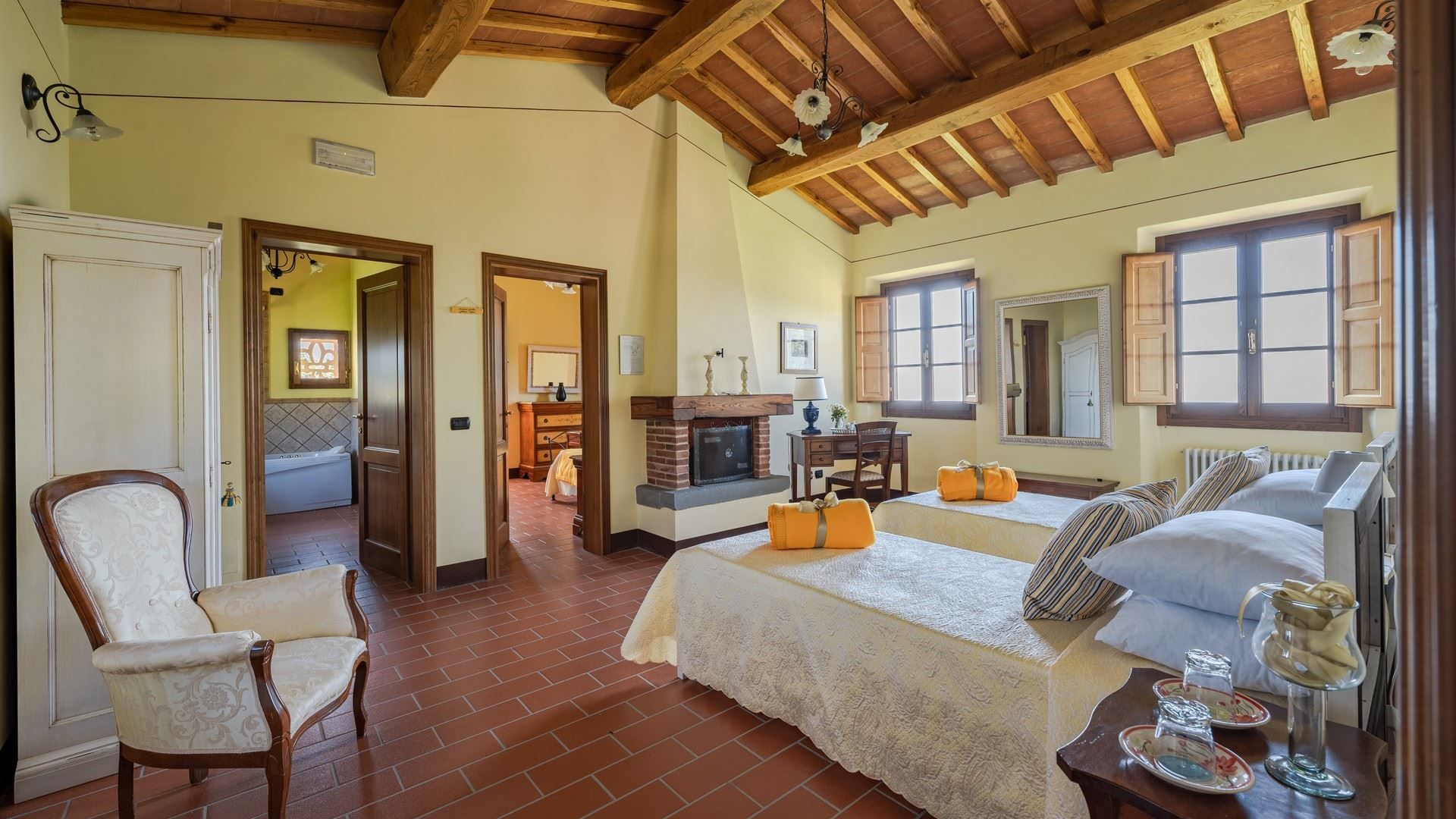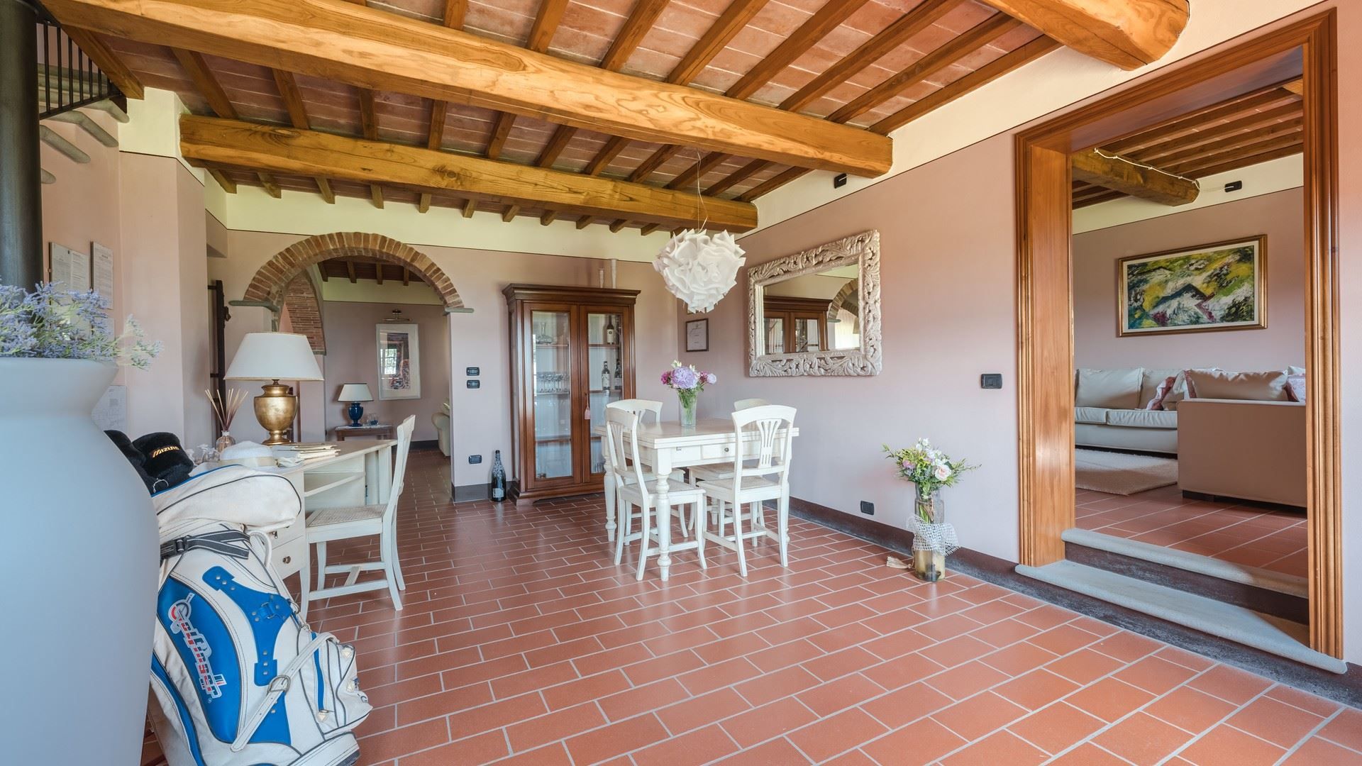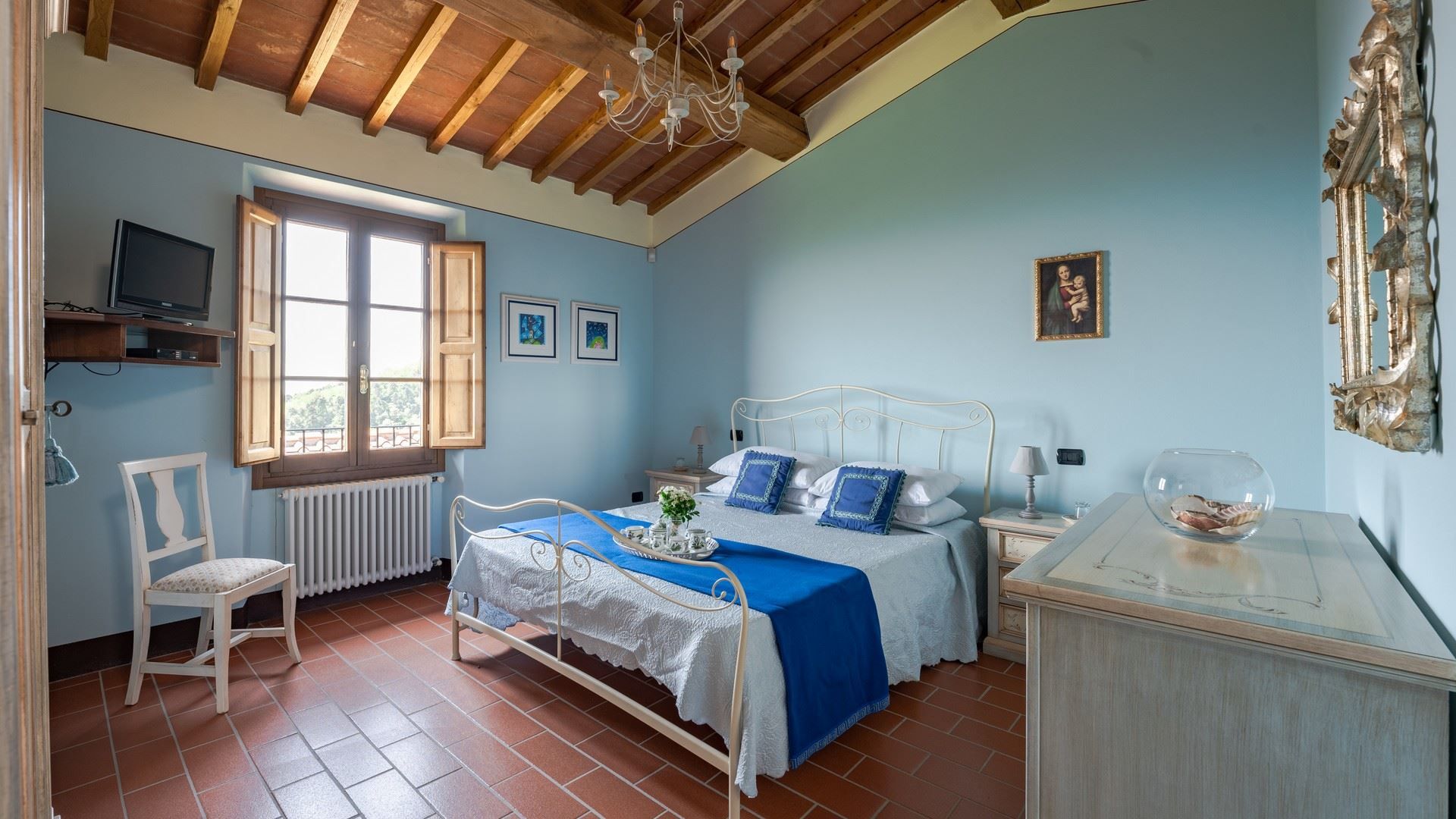 Offering breathtaking views across the rolling hills of Val di Nievole and Montecatini, this villa is as idyllic as can be. Days here are spent floating in the private pool, lounging in the sunshine, and feasting your eyes on the panoramas while tucking into an alfresco meal. The interior design mixes rustic and modern elements. Breezy bedrooms, including a ground-floor option for those with limited mobility, make this ideal for families and larger groups. Whether you're unwinding in the garden, exploring nearby vineyards, or venturing into Lucca for a day trip (it's a thirty-minute drive away), this home promises a quintessential Tuscan experience.