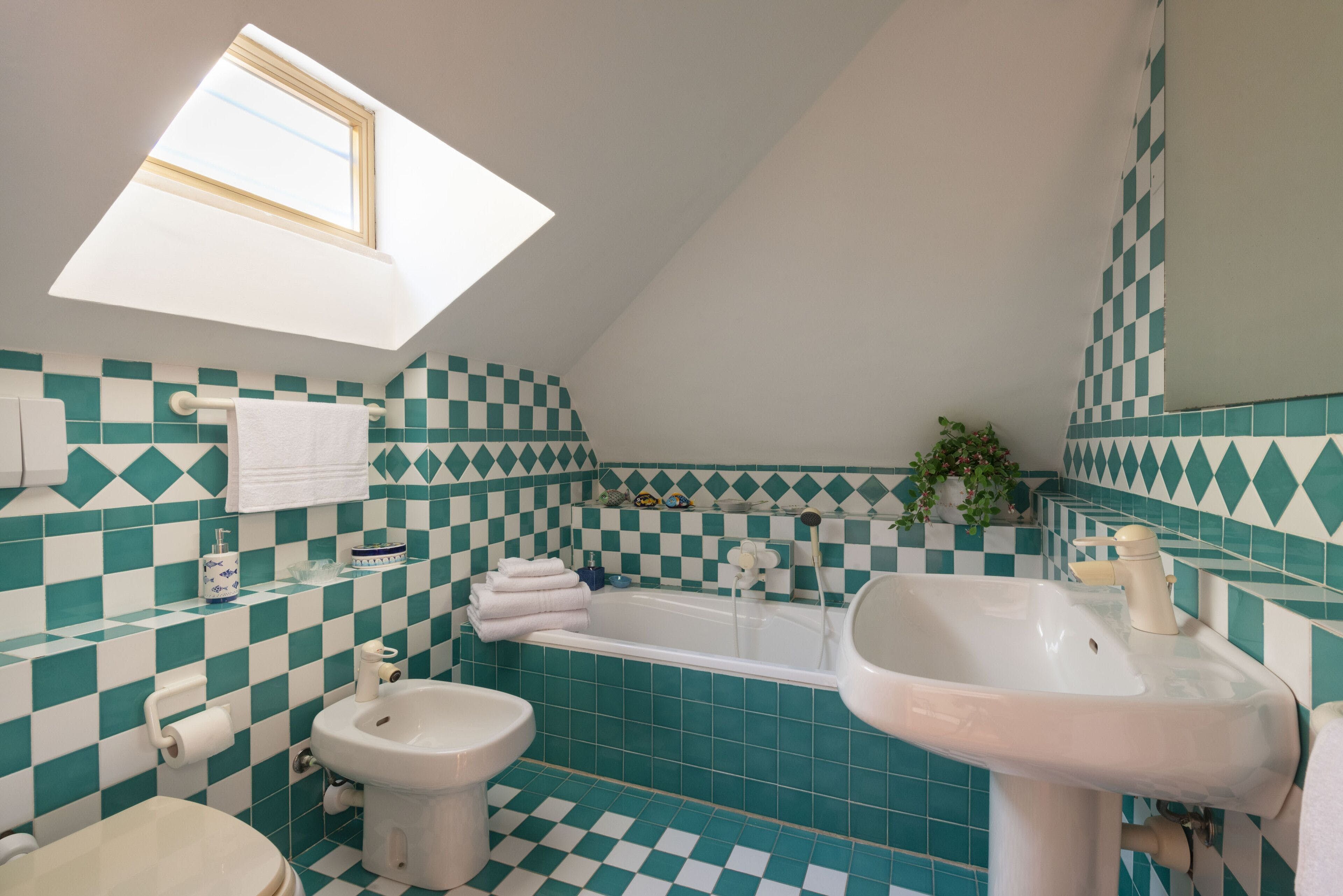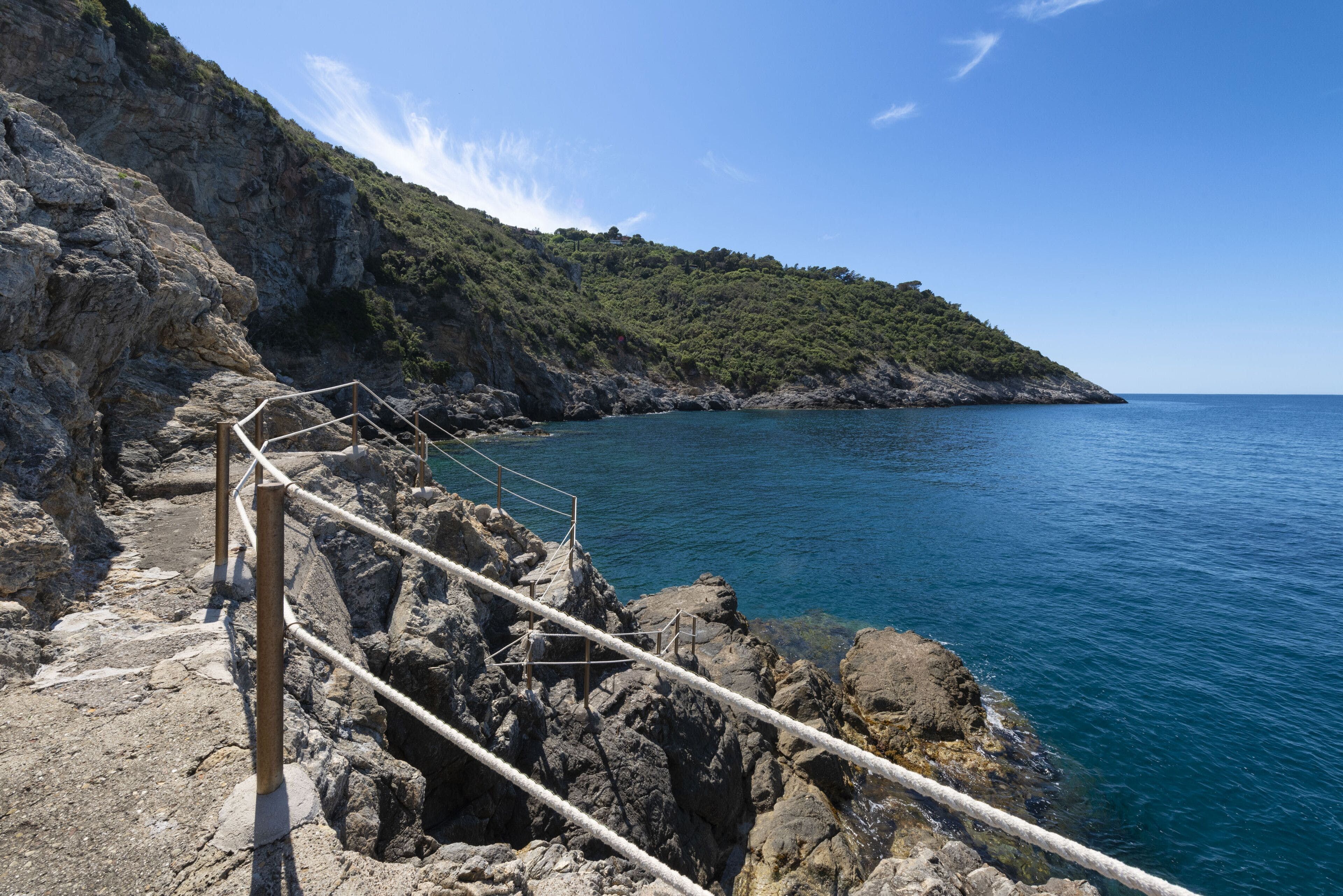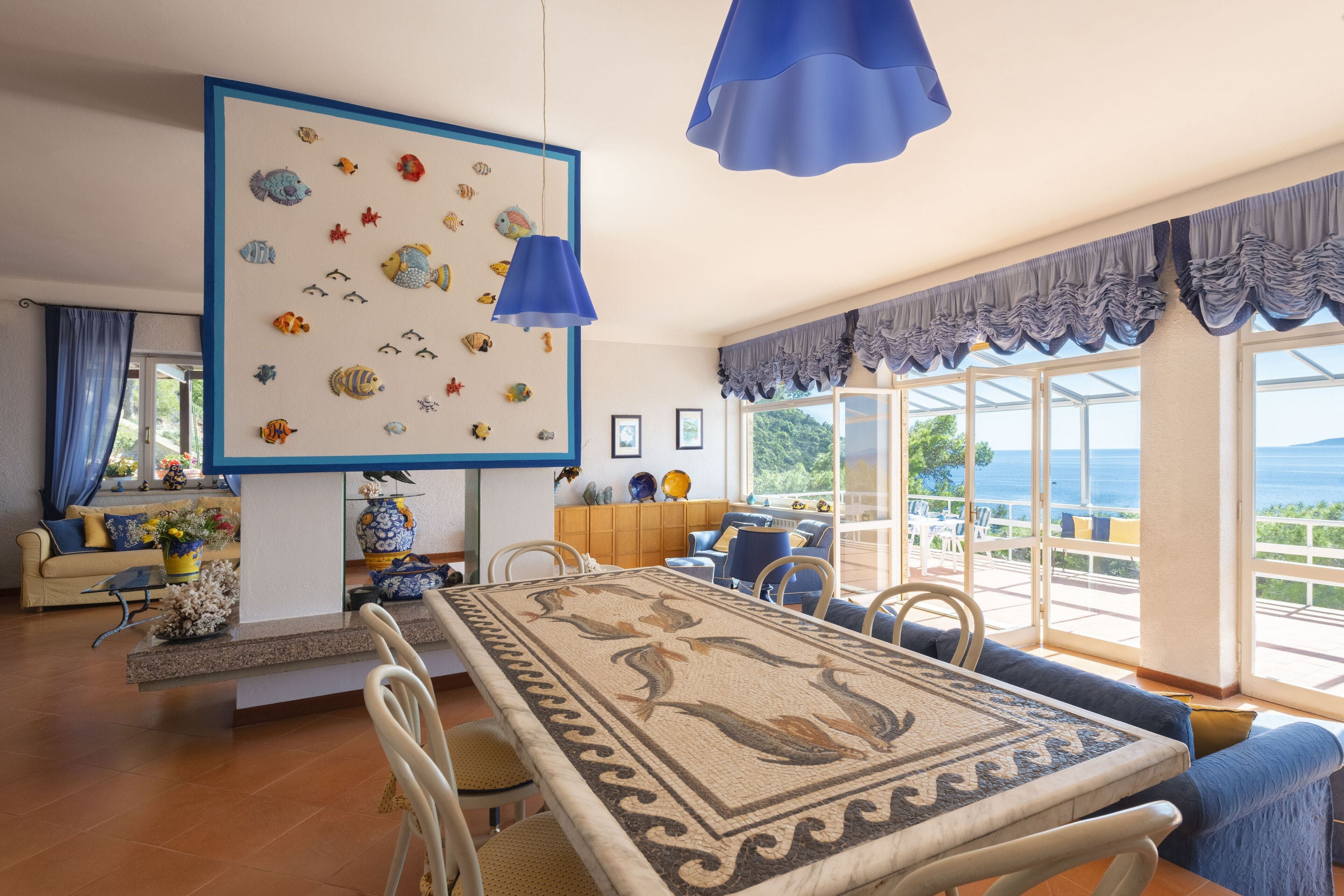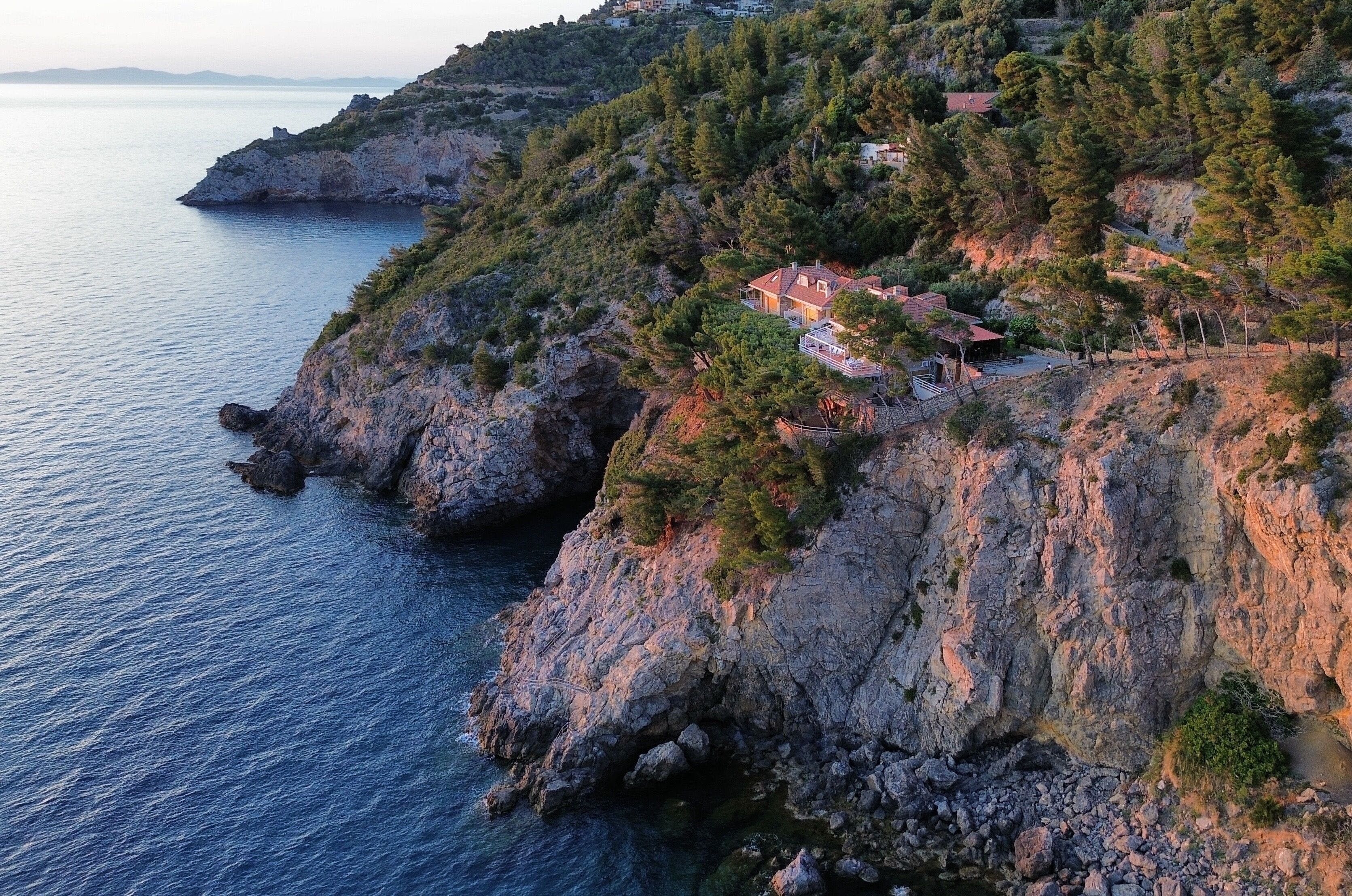 Perched on a cliffside on the edge of Monte Argentario, the sunset views from this home are sublime. From the dining table on the terrace, you can gaze out over the sea and there are plenty of seating nooks in the shade. The real highlight is the private staircase leading down the cliffside to a rocky swim platform set up with loungers and parasols. Just remember, it’s quite a climb back up to the villa. The living room is huge, so big groups will feel at home here, and a wall of windows shows off the sea view inside. Tiles in the bathrooms might be a little garish for some, but who cares when the outside space comes with that view.