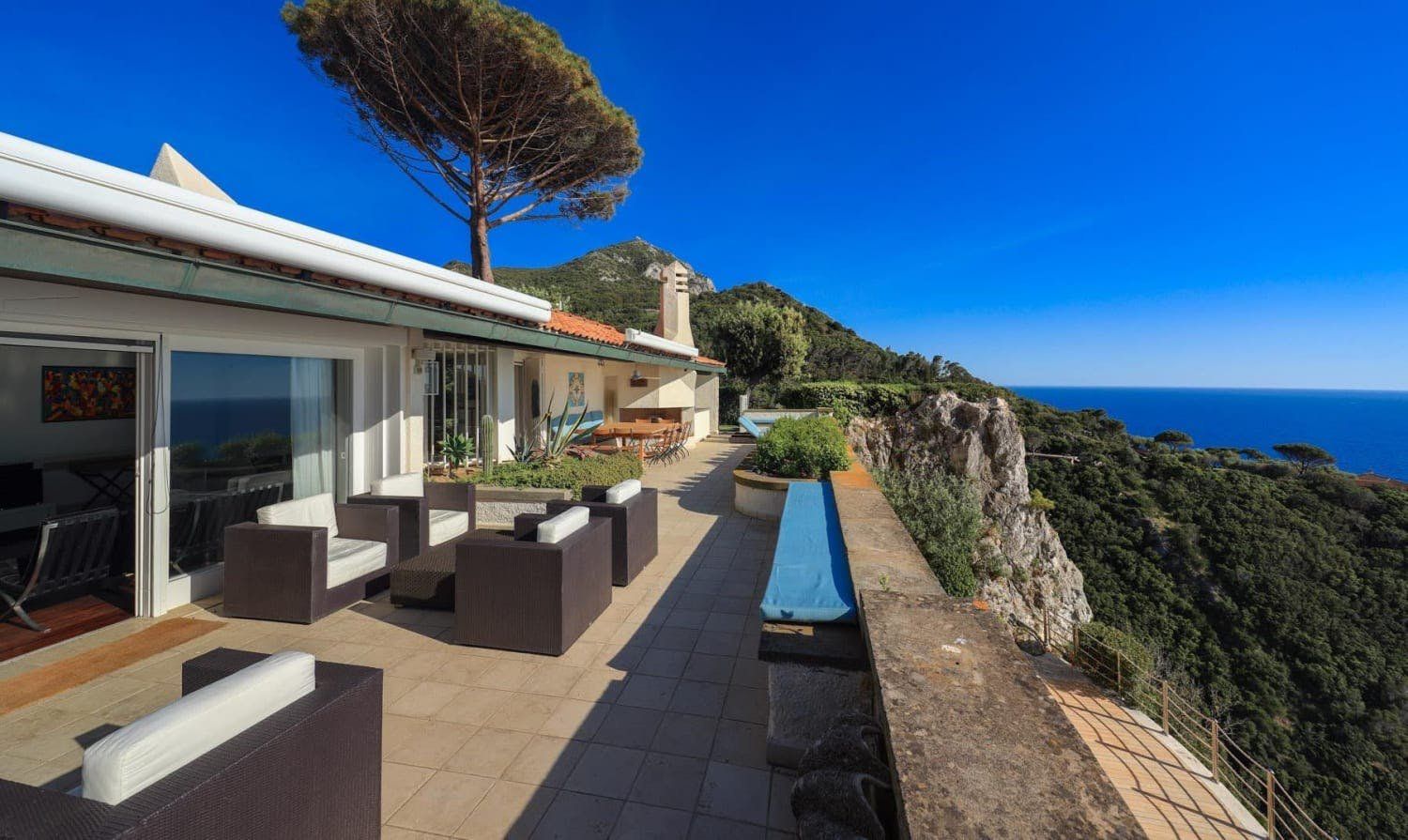 Boasting a unique position, this villa, built into the cliffs of Cala Piccola, is perfect for a family getaway to the coast. Thanks to it's location, the sea and Tuscan landscape stretches on the horizon and can be admired from the private swimming pool or any of the balconies and terrace seating areas. Though wi-fi isn't available here, you'll still have plenty to occupy yourself. Several scenic points are within walking distance for those who appreciate nature, and the steps leading from the villa and directly to the sea is a dream for beach lovers.