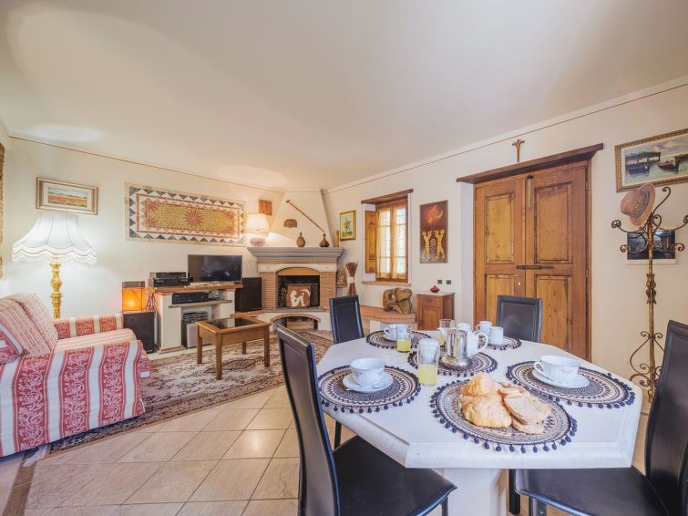 5-room house 160 m2 on 2 levels. Beautiful and cosy furnishings: living/dining room with open-hearth fireplace (only for decoration). Exit to the terrace. 1 double bedroom with shower/bidet/WC. Kitchenette (oven, dishwasher, 5 gas rings, toaster, kettle, microwave, freezer, electric coffee machine) with flat screen.