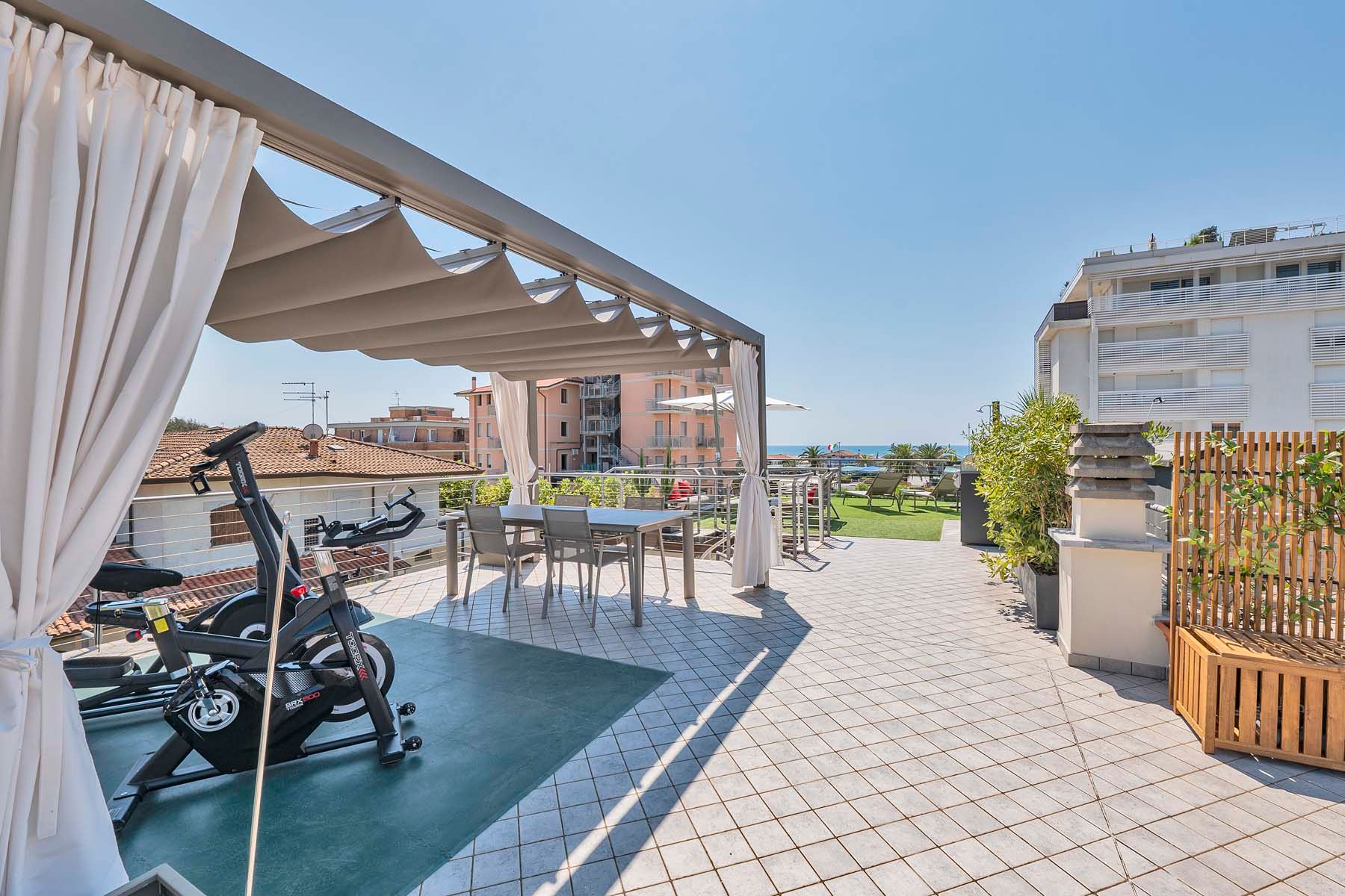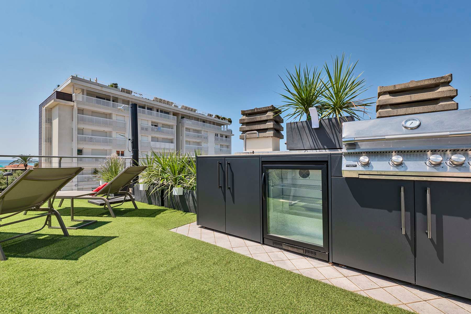 This bright, modern villa is just a short stroll from the beach, with a private rooftop terrace that opens up to breathtaking sea views. Inside, you’ll find an elegant open-plan living space, with a sleek, fully-equipped kitchen. Step outside to enjoy long lunches, fire up the barbecue, or unwind in the sunbathing and gym area. It’s the perfect setting for easy days and sunset dinners. There’s no lift, but the stairs to reach the rooftop are worth it for such a spectacular reward. Plus, a dedicated concierge will even be on hand to ensure your stay is seamless and memorable.