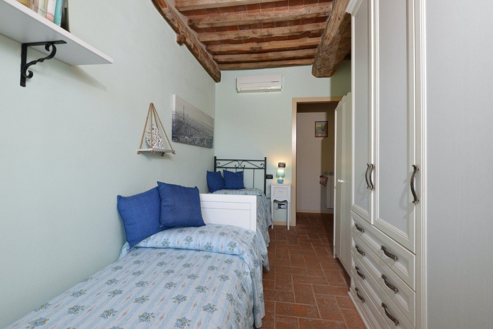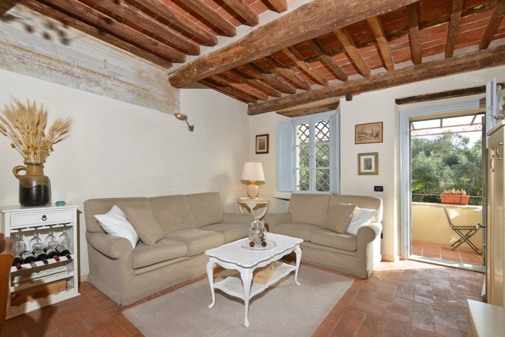 Whether you're enjoying a glass of wine on the terrace or floating in the shared swimming pool, the mountain views here are sure to set the scene for an unforgettable stay in the Province of Lucca. Early risers can savour an espresso in the morning sunshine on the terrace and in the evenings, you can fire up the barbecue and dig into an alfresco feast as the day slowly fades. We think it's the definition of relaxing, and the interior is just as cosy, with exposed wooden beams, squishy sofas and a rustic kitchen well-stocked with cookware if you're not up for grilling.