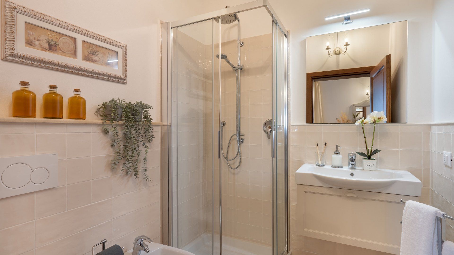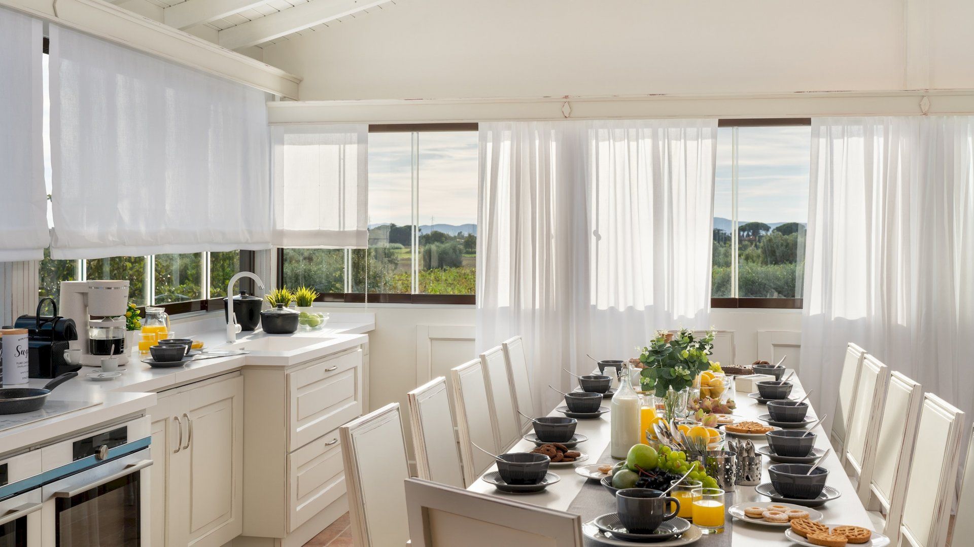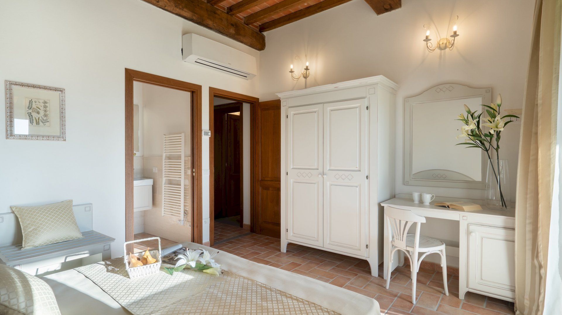 After breakfast in the kitchen, with its generously-sized dining table, you’ll want to head down for a dip in your private pool. Then, the choice is yours –located in the hamlet of Cafaggio, at the foot of the hills near the Etruscan Coast, this home provides plenty of Italy to explore. You’re not far from the Mediterranean sea, and the local area is replete with places to enjoy Tuscan’s renowned food and see its storied art and history.