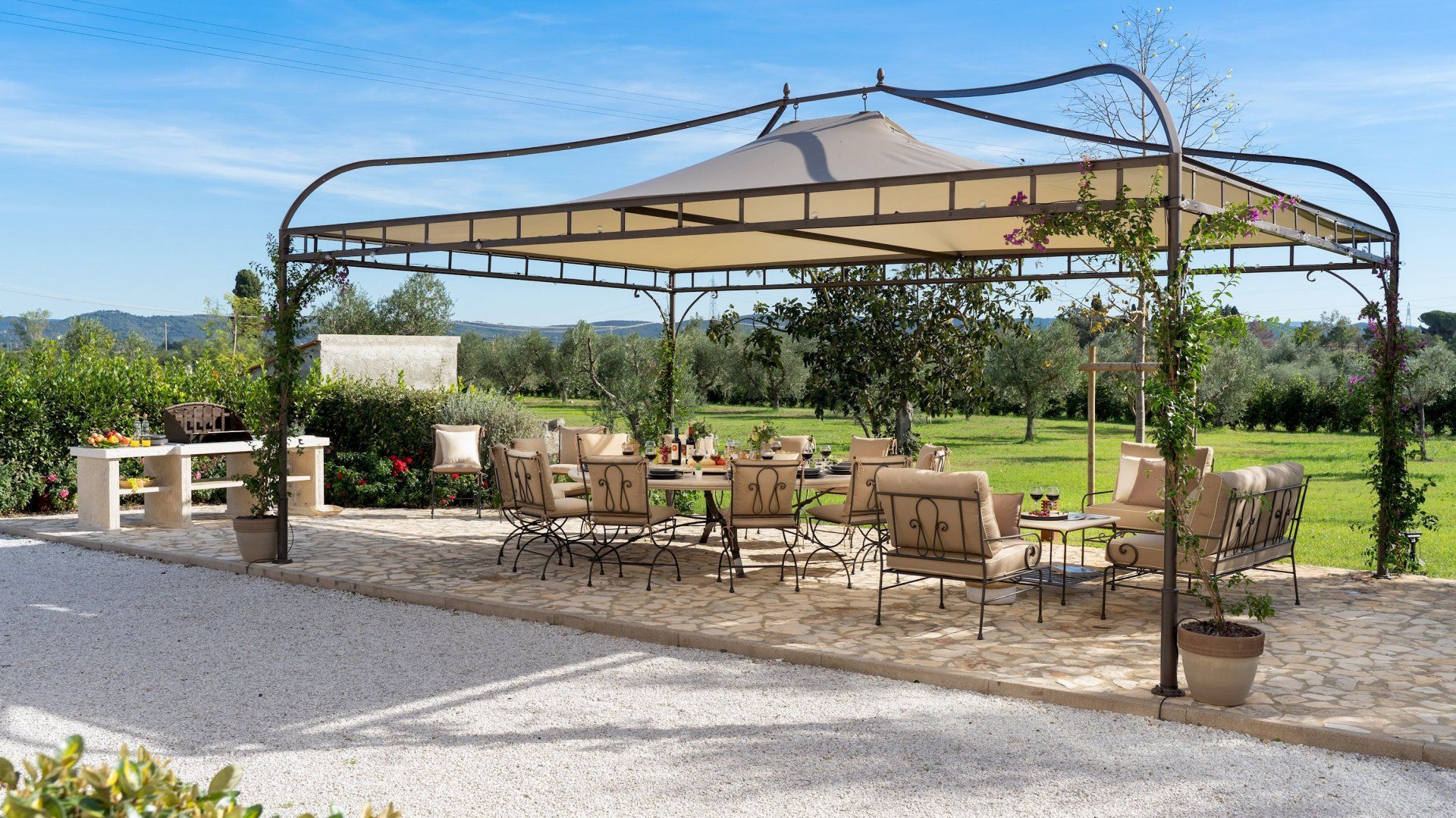Standing watch over its four hectares of lawn, olive trees, palms, hibiscus, and vines, this home is worthy of an Italian poet in exile. Uniquely this home has most of its bedrooms on the ground floor, meaning that the kitchen and living spaces, elevated to the first floor, offer a great view of the surrounding grounds.