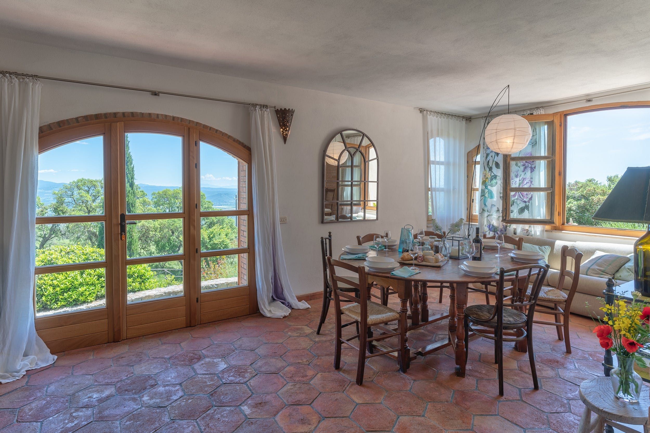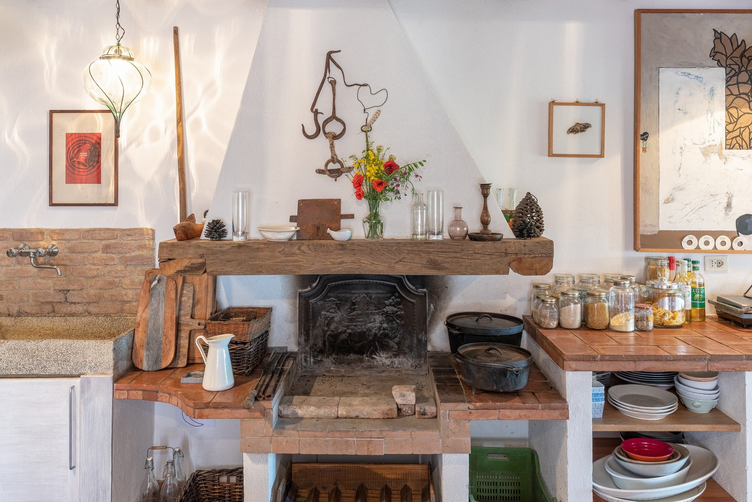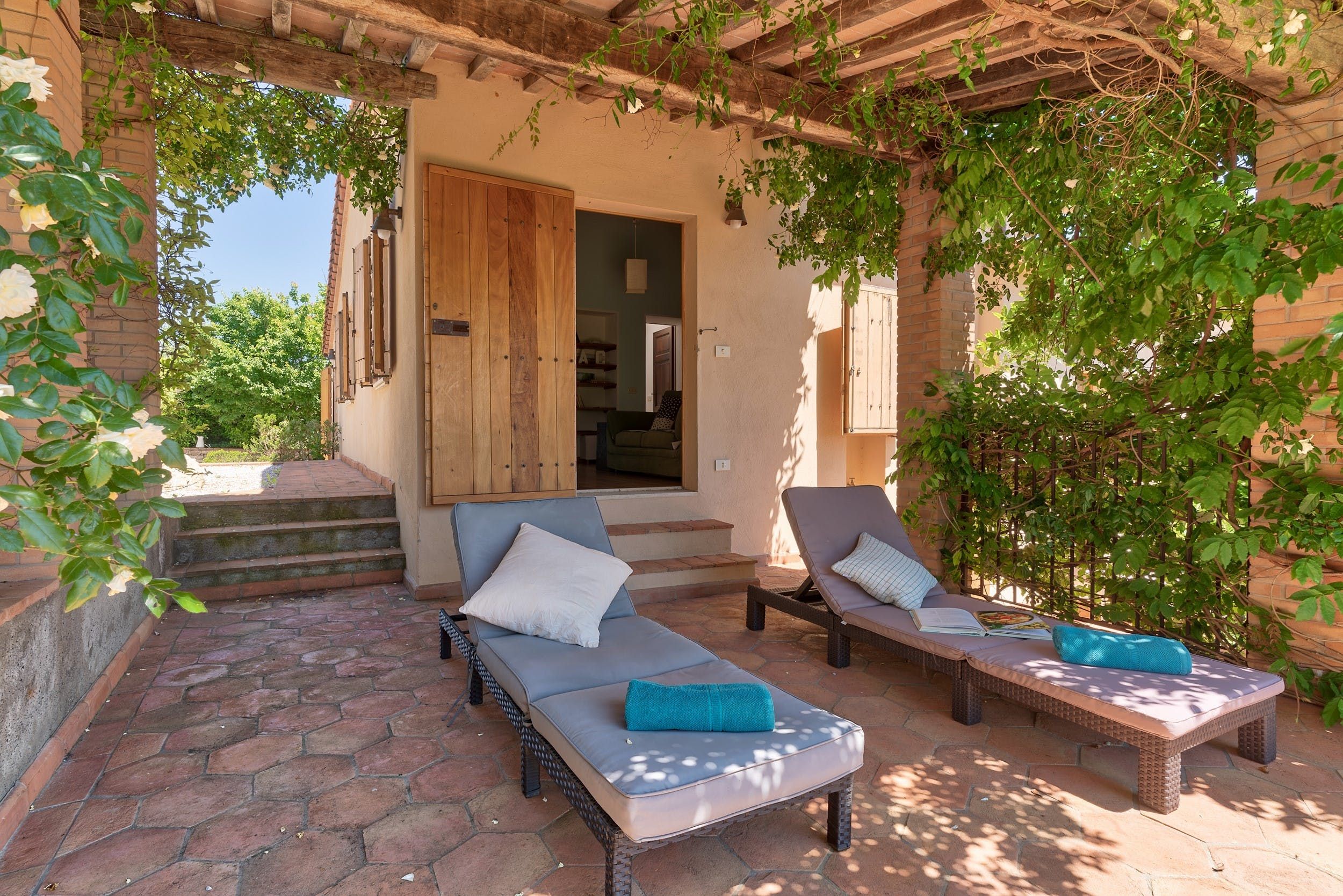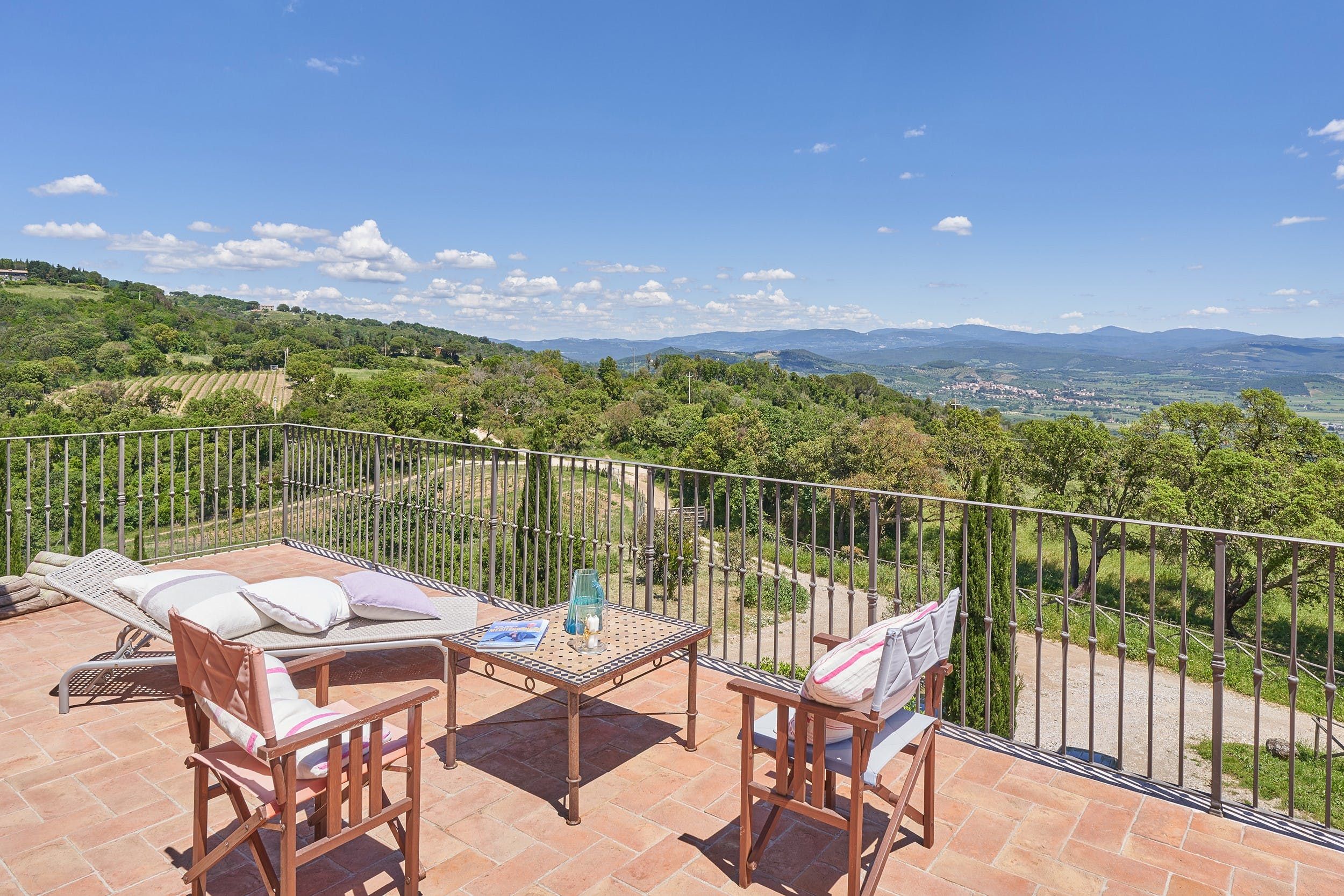 The villa's interior retains plenty of its traditional features, from the terracotta tiles and wooden ceiling beams to the brick archway leading into the kitchen. Embrace your inner nonna and whip up your favourite Italian dishes in this charming space, or ask your host to arrange a private chef to take on catering duties. You'll love dining outside on the terrace, as you admire the stunning views across the hills. And, there's plenty more outdoor space to enjoy – plunge into the swimming pool before drying off on a sun lounger or enjoy some peace and quiet with a coffee on the balcony.