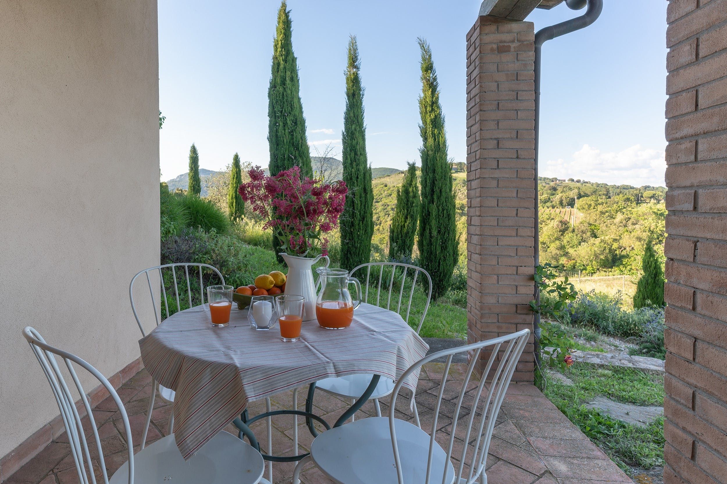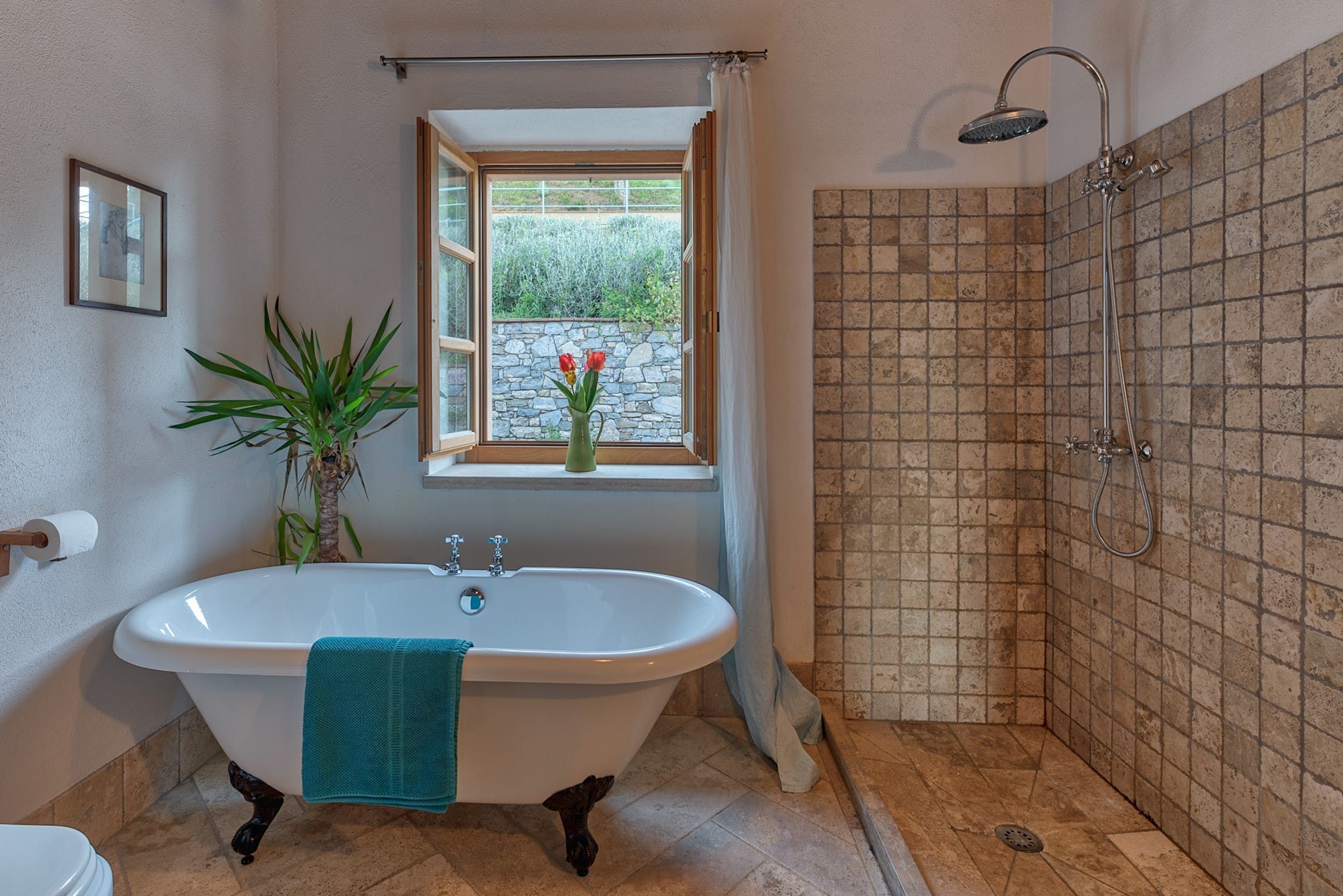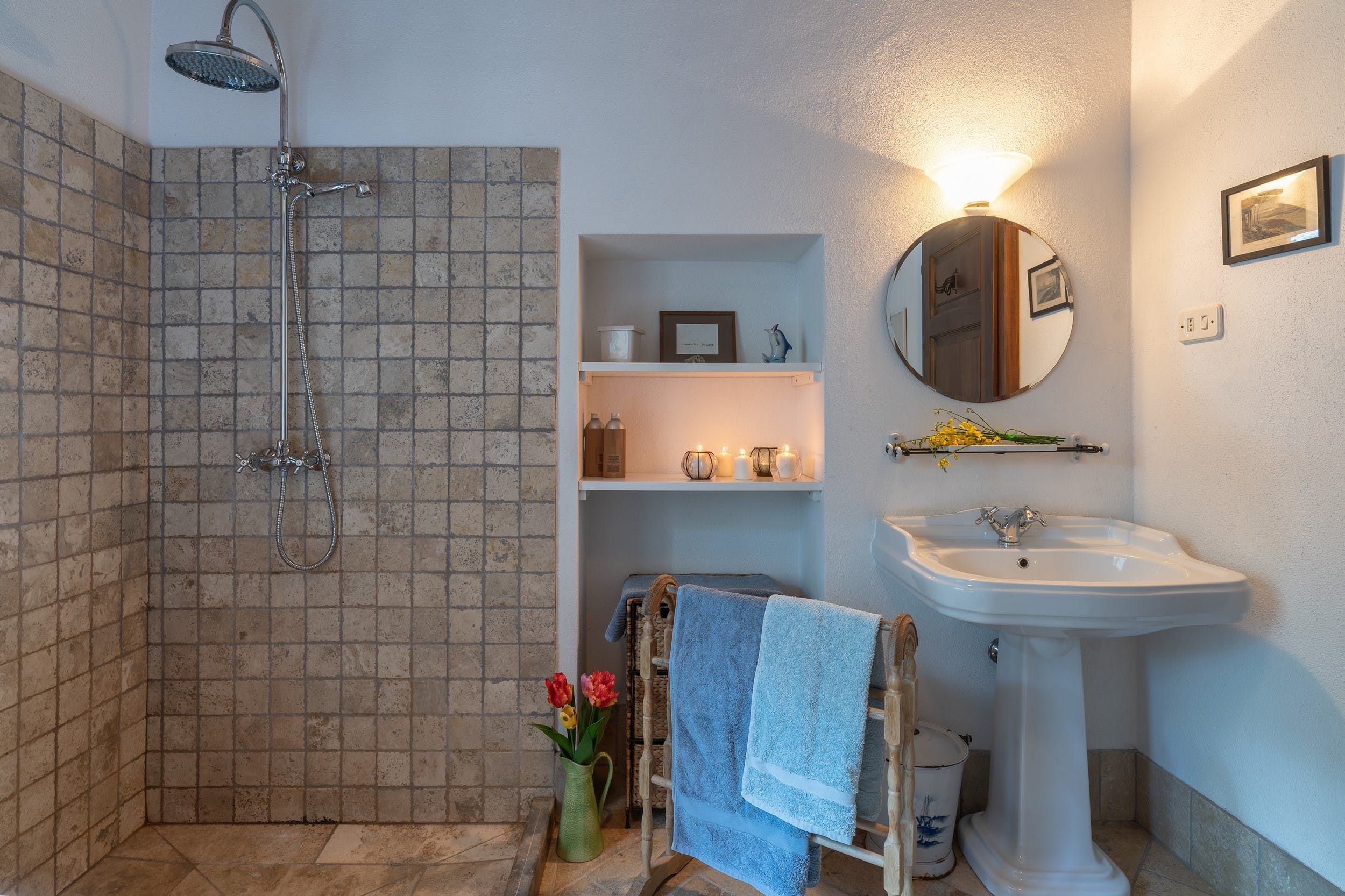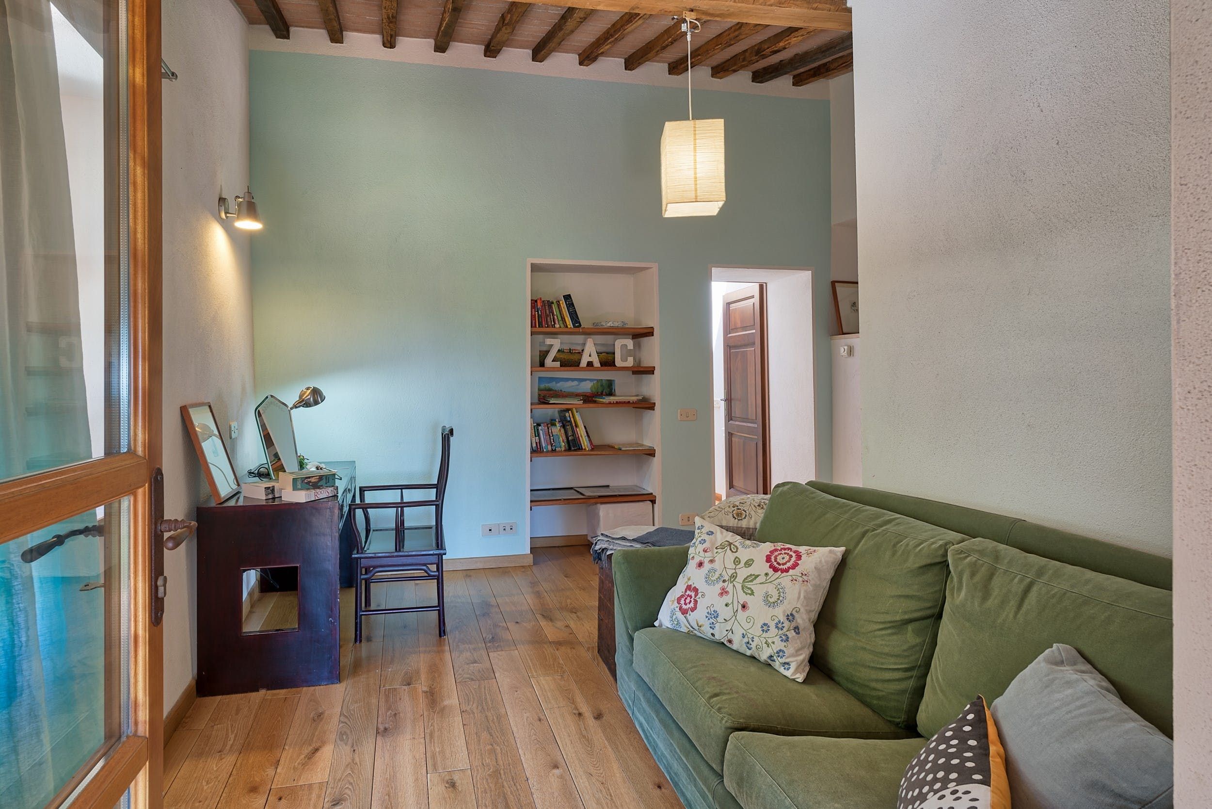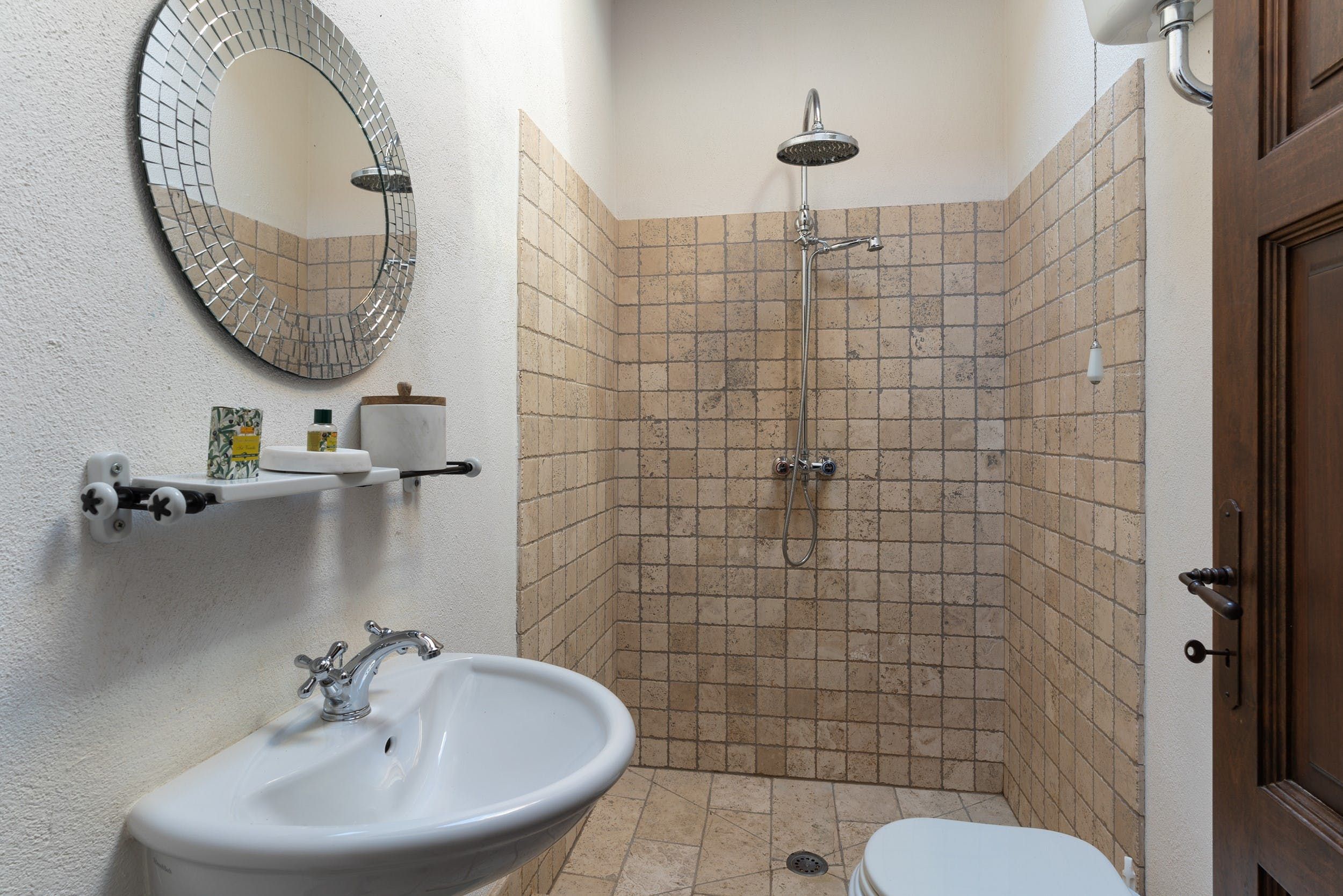 The villa's interior retains plenty of its traditional features, from the terracotta tiles and wooden ceiling beams to the brick archway leading into the kitchen. Embrace your inner nonna and whip up your favourite Italian dishes in this charming space, or ask your host to arrange a private chef to take on catering duties. You'll love dining outside on the terrace, as you admire the stunning views across the hills. And, there's plenty more outdoor space to enjoy – plunge into the swimming pool before drying off on a sun lounger or enjoy some peace and quiet with a coffee on the balcony.