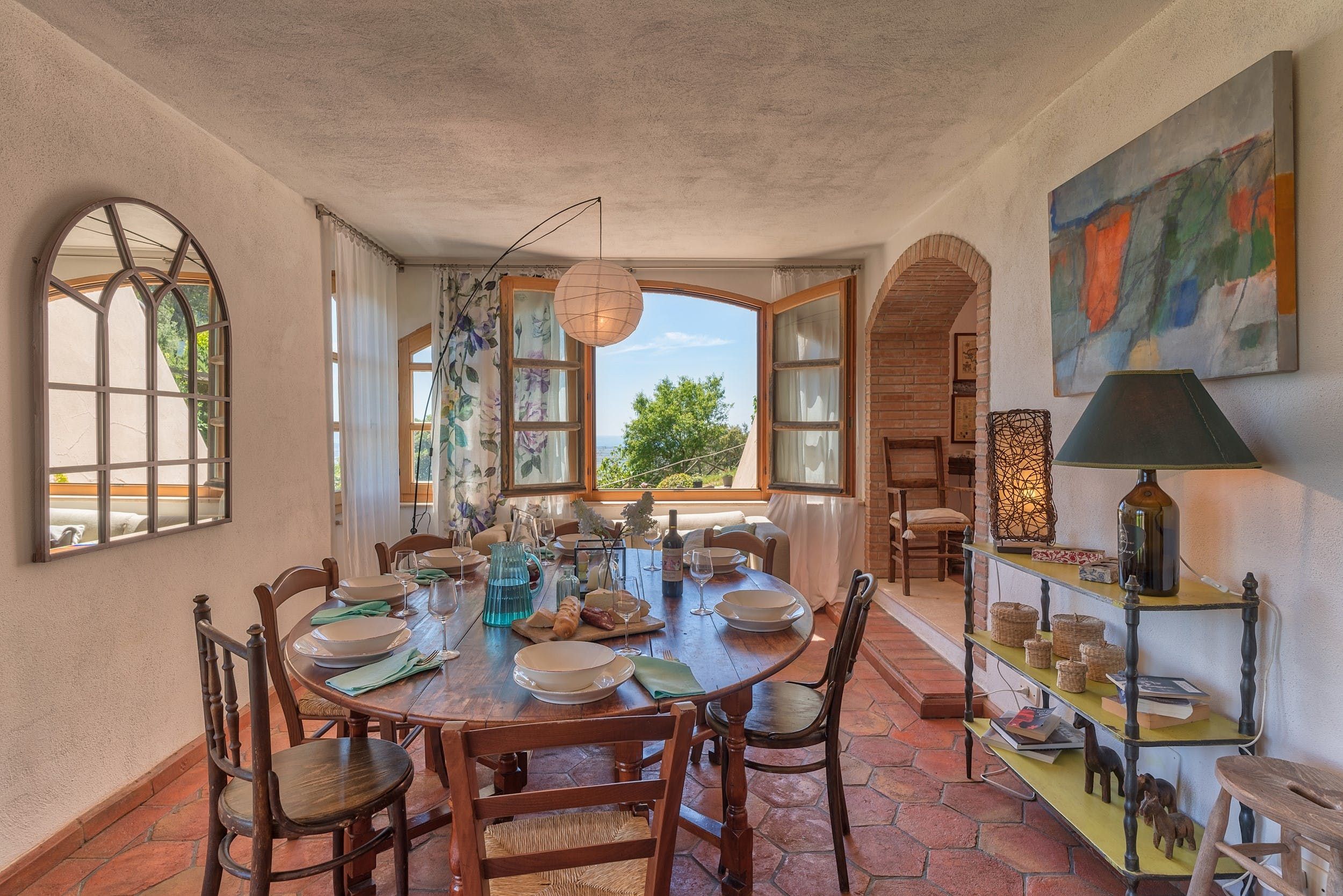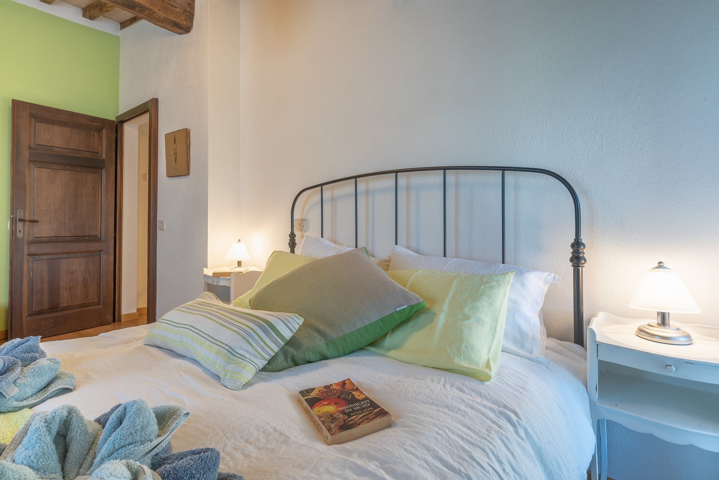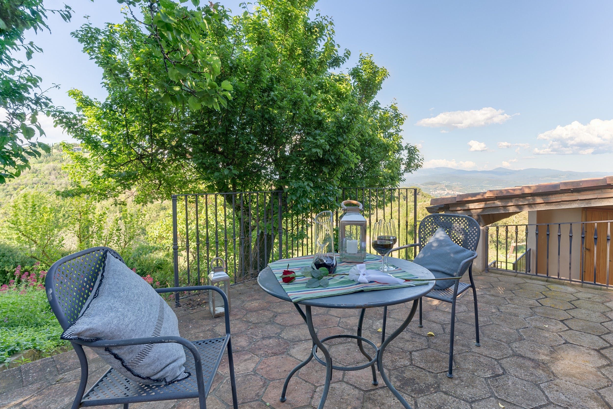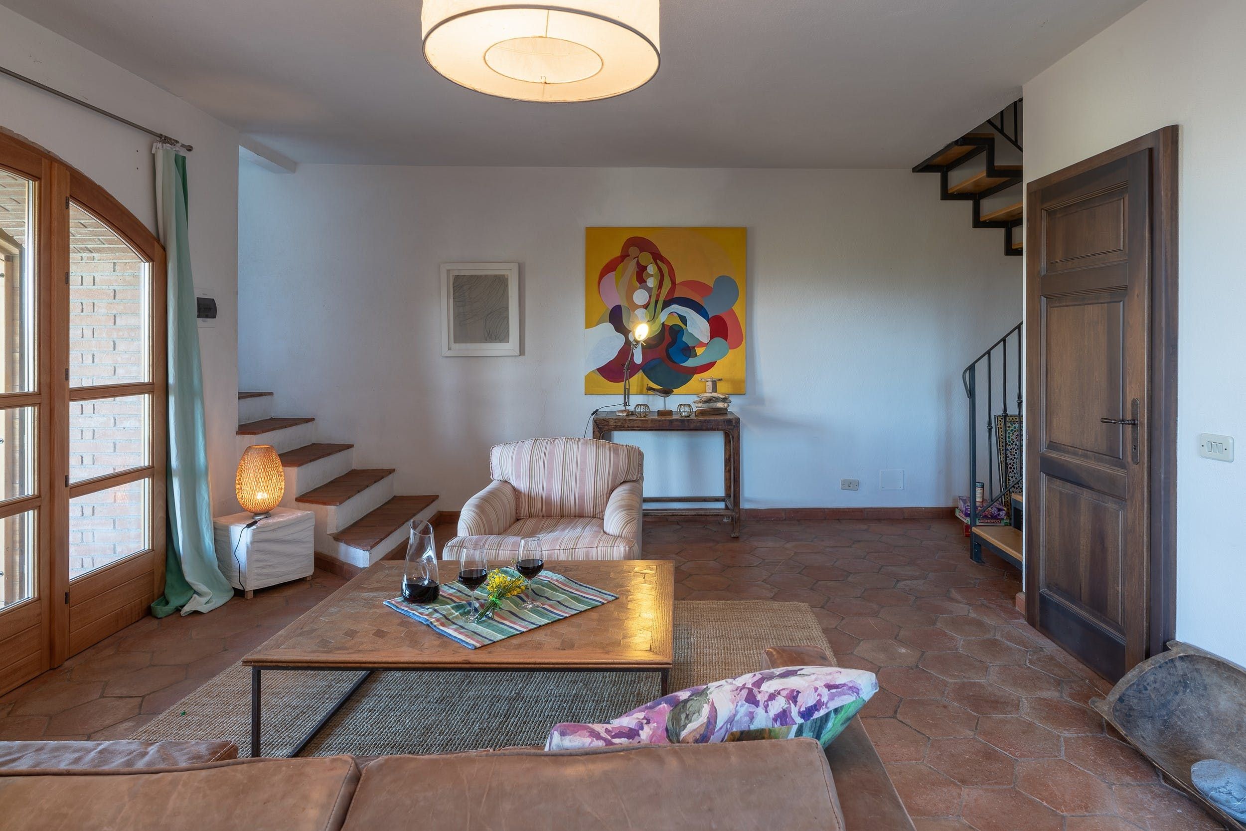 The villa's interior retains plenty of its traditional features, from the terracotta tiles and wooden ceiling beams to the brick archway leading into the kitchen. Embrace your inner nonna and whip up your favourite Italian dishes in this charming space, or ask your host to arrange a private chef to take on catering duties. You'll love dining outside on the terrace, as you admire the stunning views across the hills. And, there's plenty more outdoor space to enjoy – plunge into the swimming pool before drying off on a sun lounger or enjoy some peace and quiet with a coffee on the balcony.