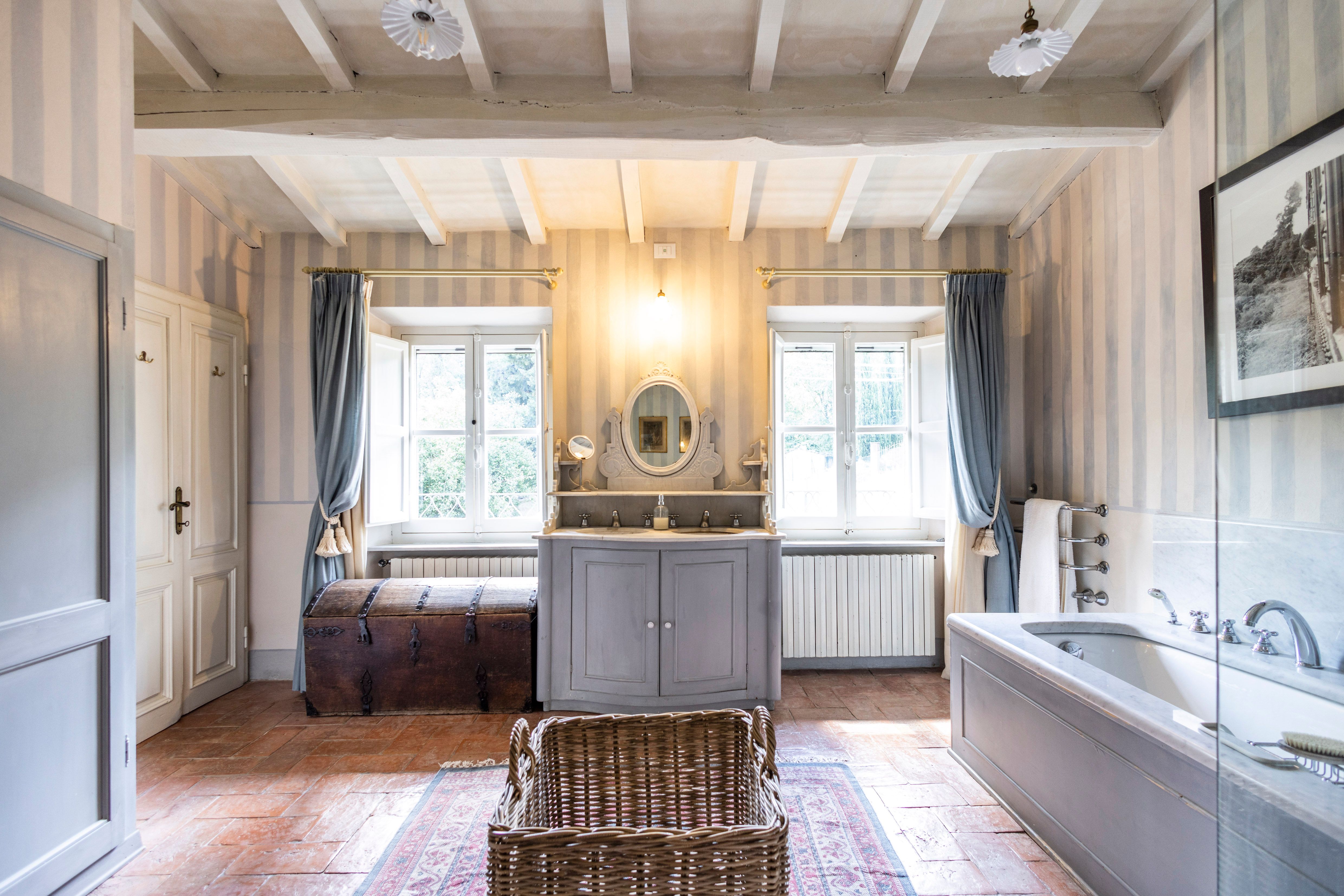 Perched in the hills of Versilia, this elegant villa offers sea views, total privacy, and a slice of Tuscan charm. The botanical garden bursts with colour, and the infinity pool seems to float above the coastline. Inside, rustic textures and natural materials create a warm, authentic feel, with spacious suites that open to the light and greenery outside. One bedroom opens onto the twin room, making it a great setup for families. For added privacy, another suite sits in a separate annex just outside the main villa. Dine al fresco, unwind under the trees, or explore nearby Pietrasanta and Forte dei Marmi. You’ll likely want a car to get around, but with scenery this stunning, that’s a small price to pay.