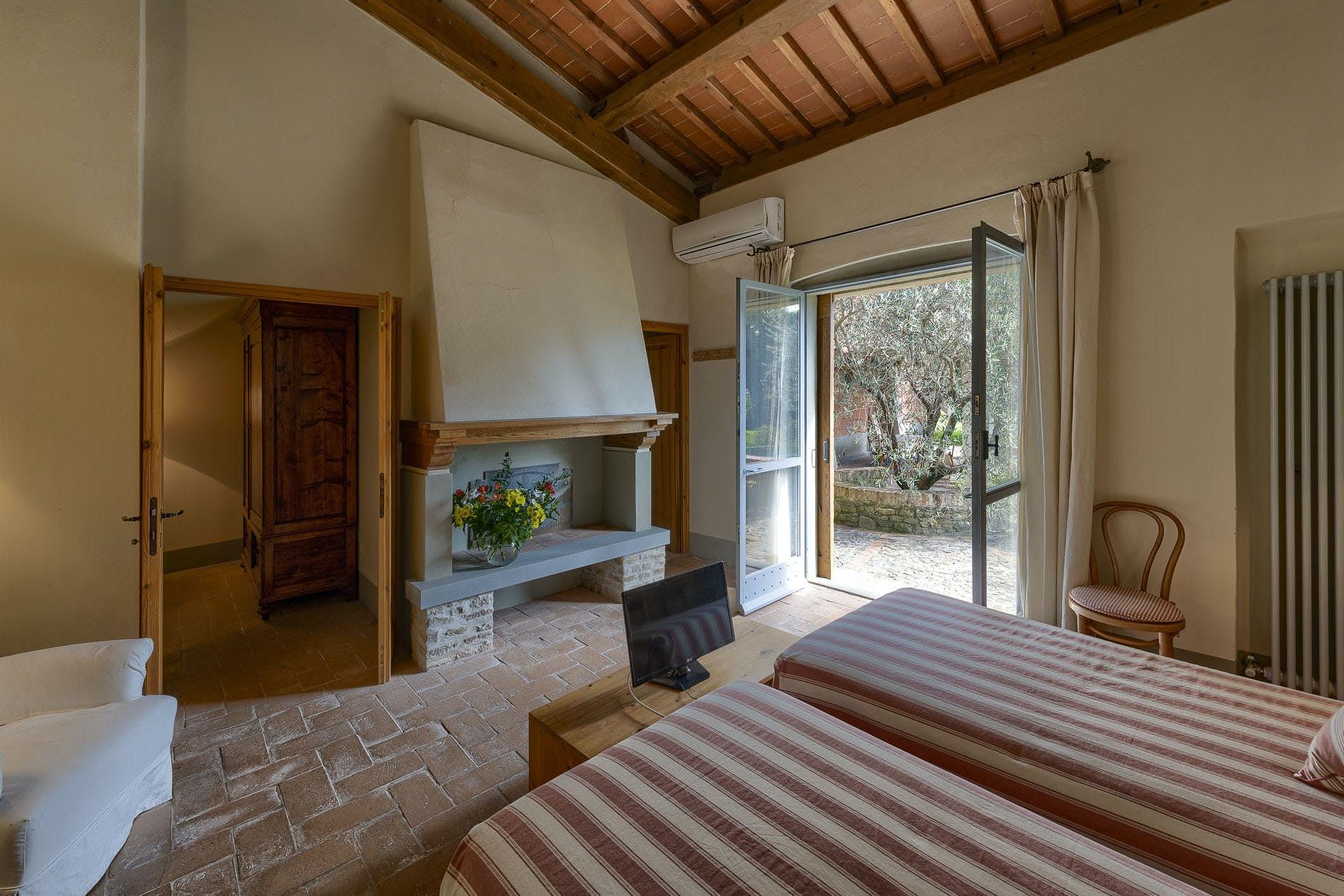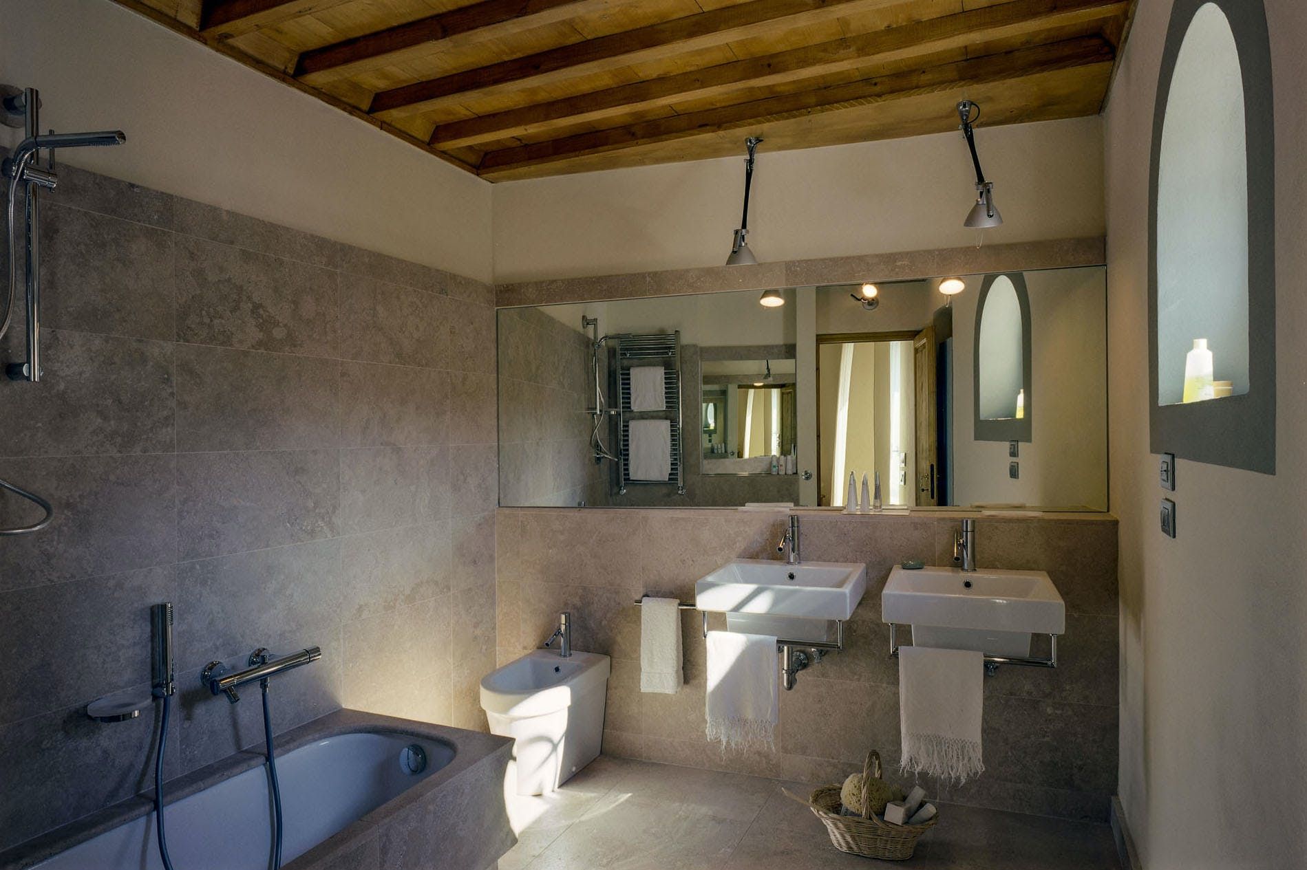 Step inside, through any of several French doors lining the villa's facade, and you'll uncover a traditional Tuscan interior with rustic terracotta tiled floors, antique furniture and plenty of exposed wood. Elsewhere, each of the four individually decorated bedrooms boasts its own en-suite.