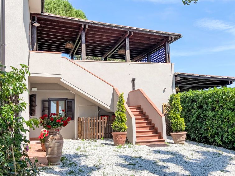 "Casalvecchio", 3-room apartment 55 m2 on 1st floor. Spacious and bright, beautiful and modern furnishings: upper floor: (exterior staircase) living/dining room with satellite TV. Exit to the terrace. 1 room with 1 bed, 1 double bed and satellite TV. 1 double bedroom with satellite TV.