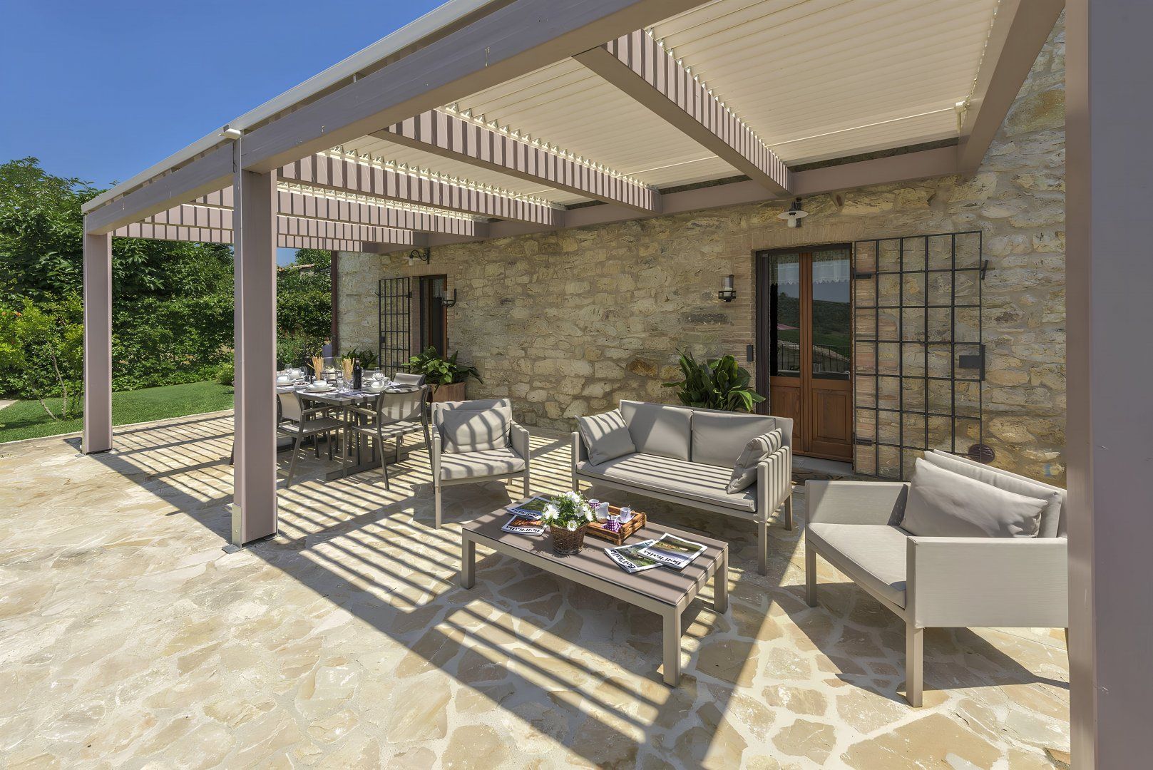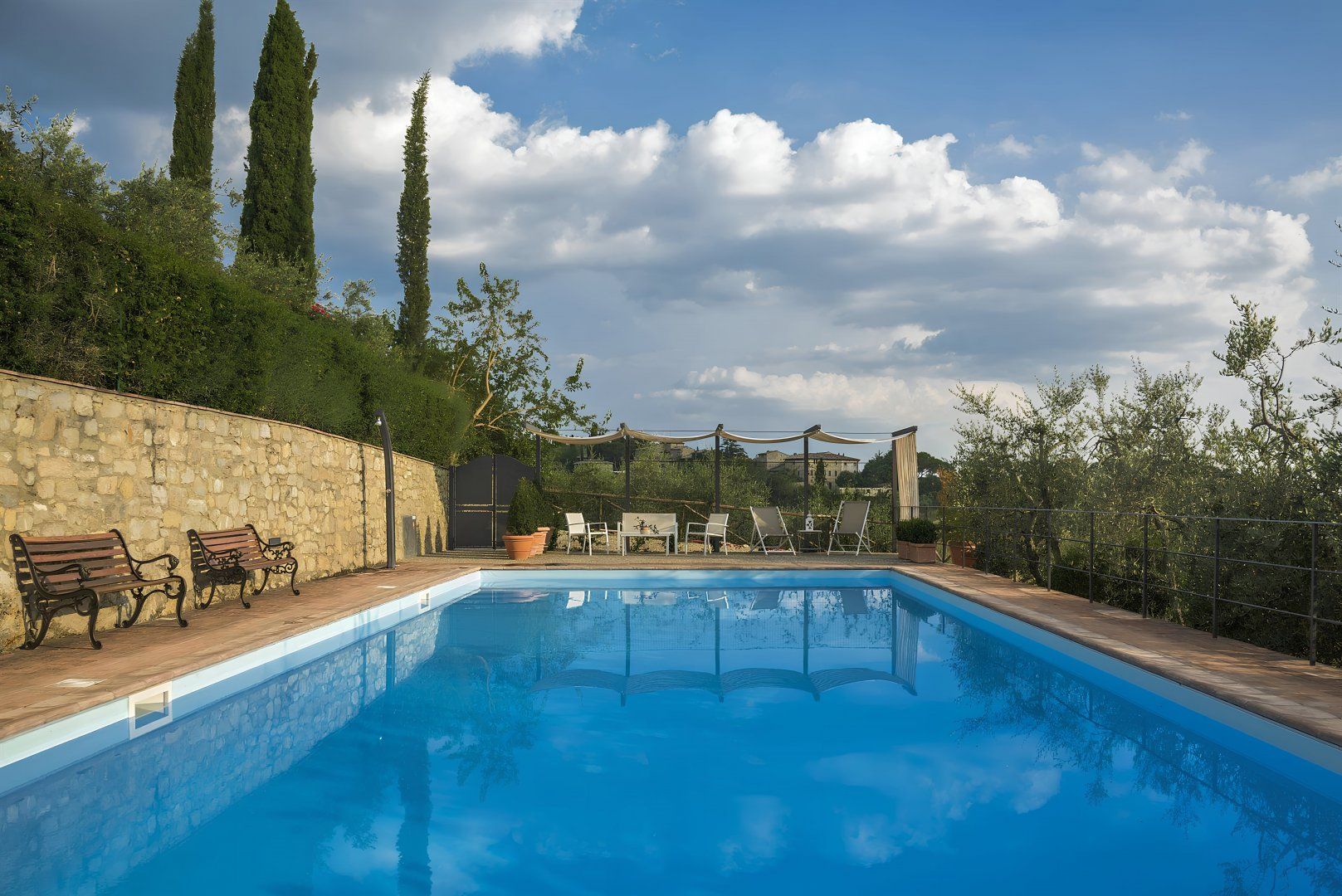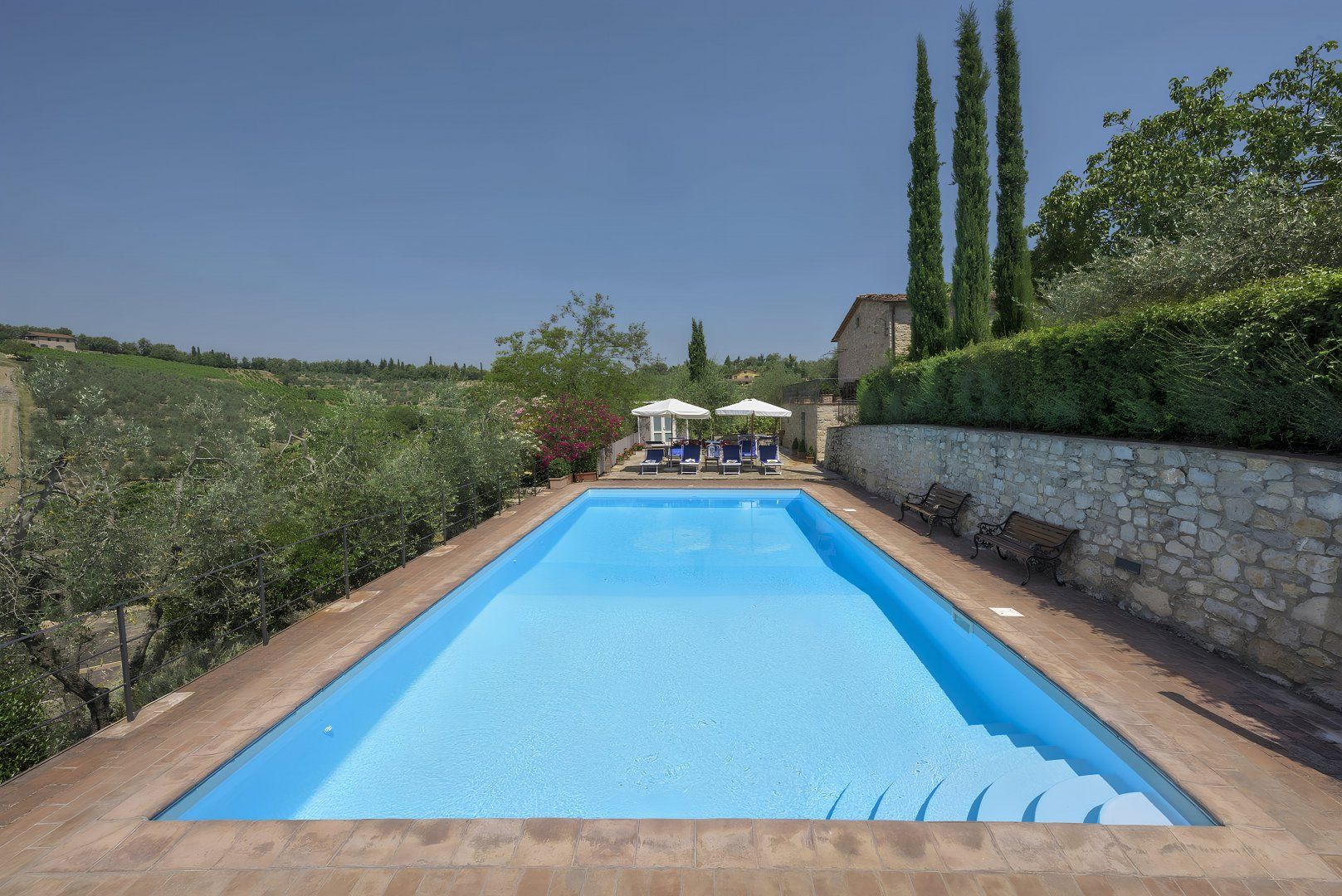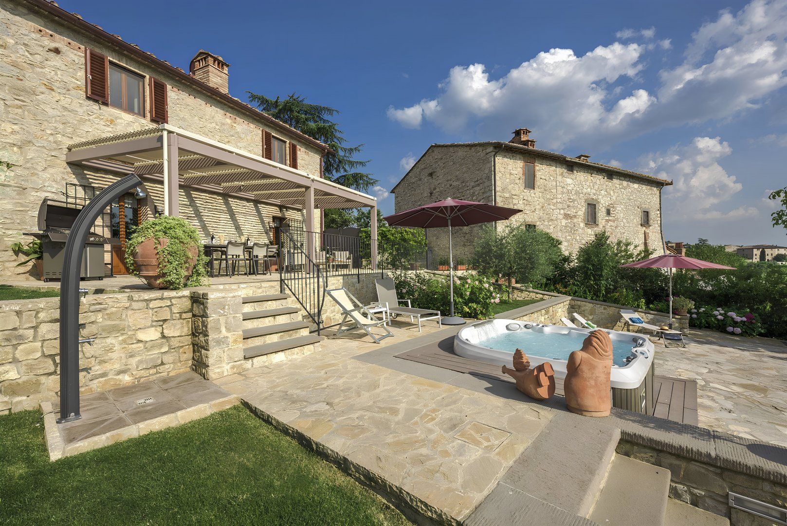 Full of charm, we love this home’s history. It’s hard to imagine its olive press past, save for the very obvious reminder in the living area. But to add to its appeal, it’s flexible when it comes to sleeping arrangements, too. With a main house sleeping four and a cottage sleeping two, a stay here affords one couple a bit more privacy, with each home even boasting its own terrace. Ready to mingle? Sink into the warm waters of the hot tub or cool off in the pool, the choice is yours.
