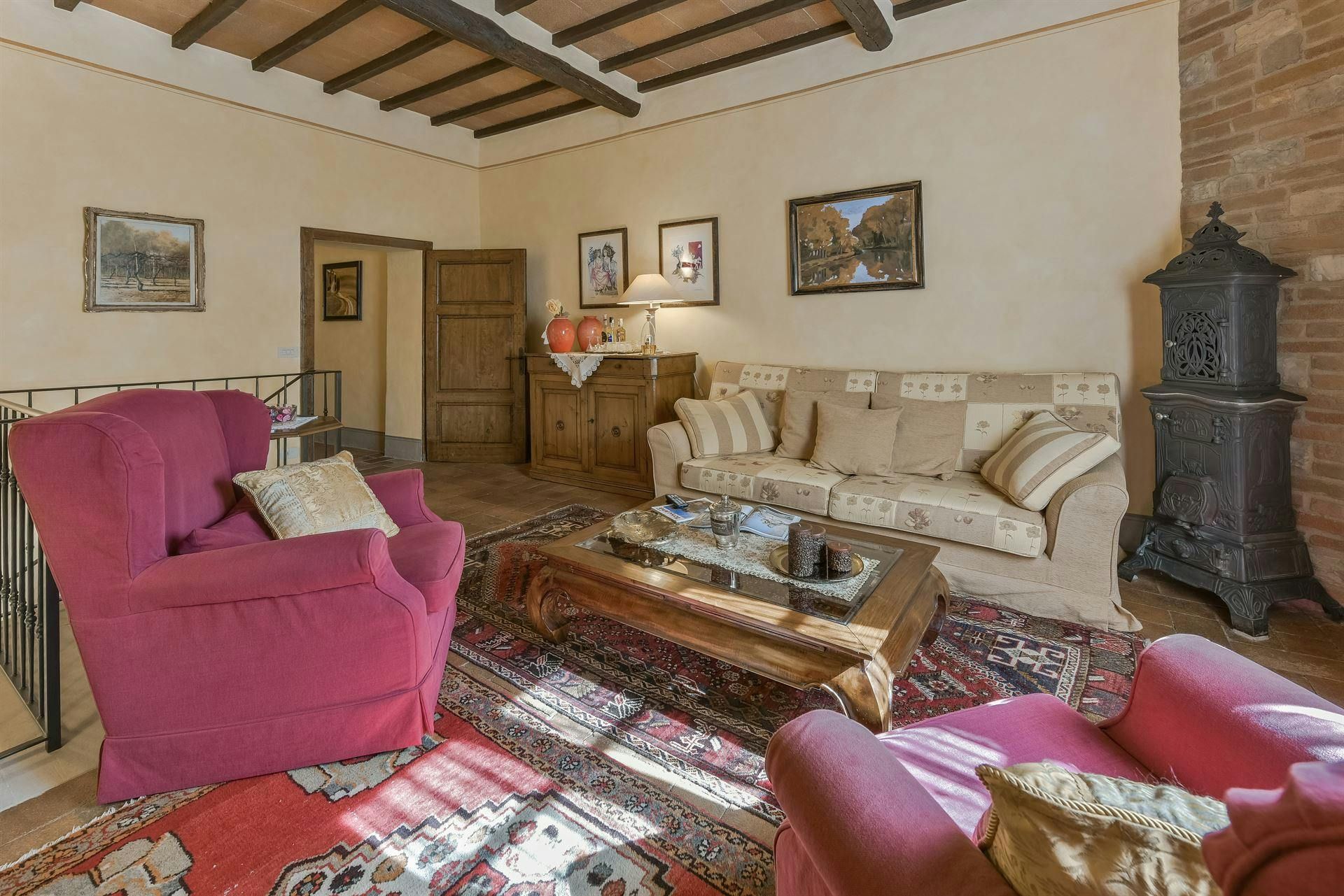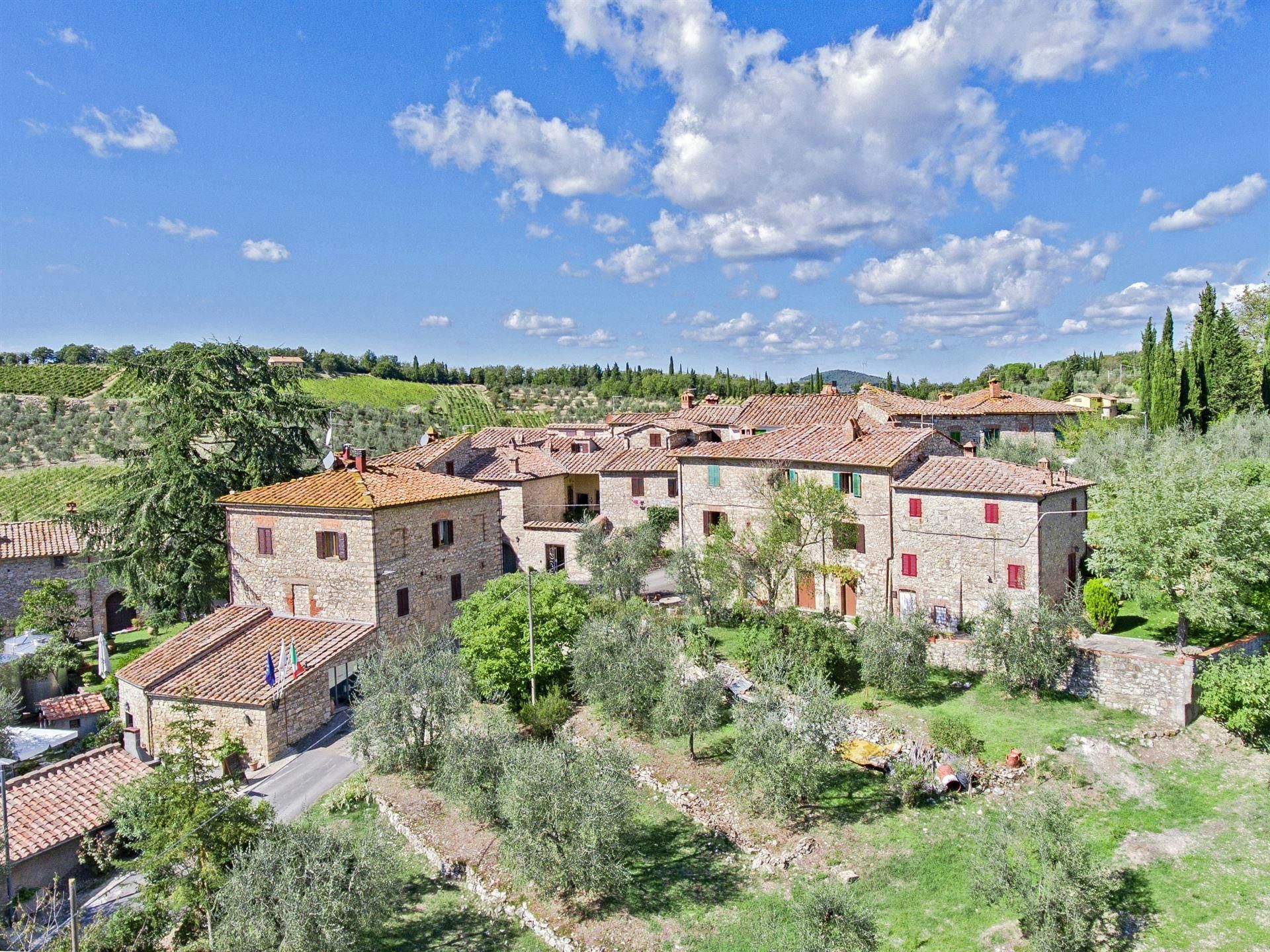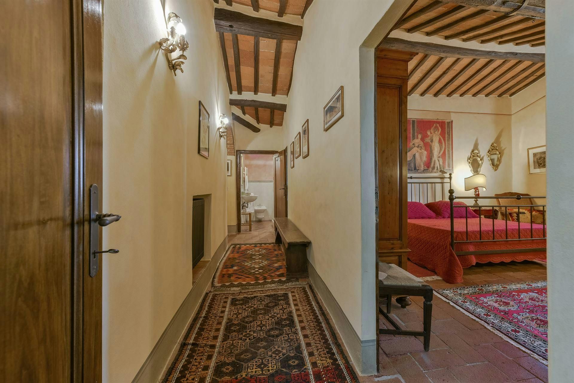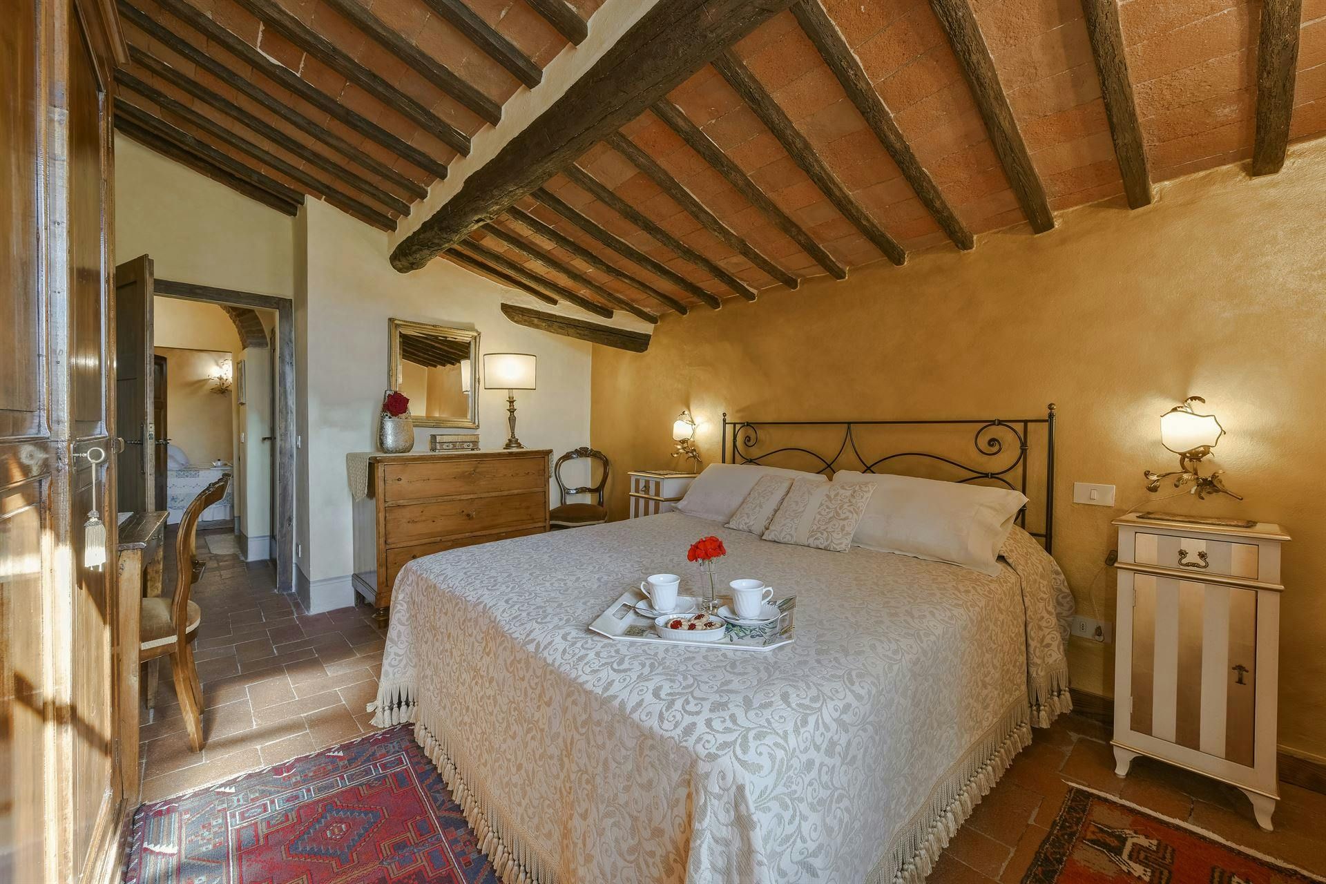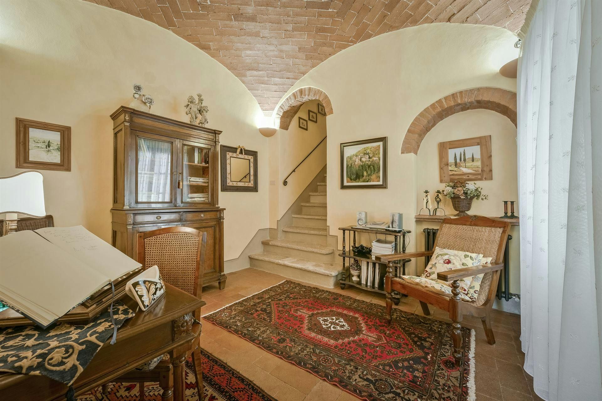 In the Chianti hills, this villa offers vineyard views and easy access to the region's many wineries and picturesque towns. We love the garden – it's where we reckon you'll spend most of your time. There's a private pool, an alfresco dining terrace, and a pool house with a gym that fitness buffs will appreciate. Indoors, the antique furniture and traditional features may feel a bit dated, yet they're all part of its charm. As for location, you'll find Gaiole, Radda, and Castellina a short drive away, making it an ideal base for Tuscan adventures.