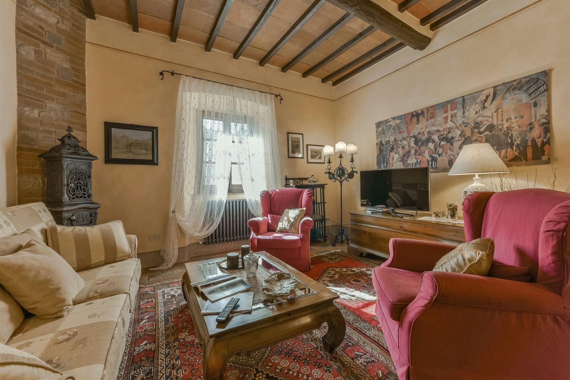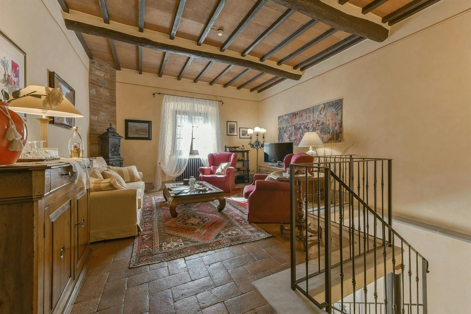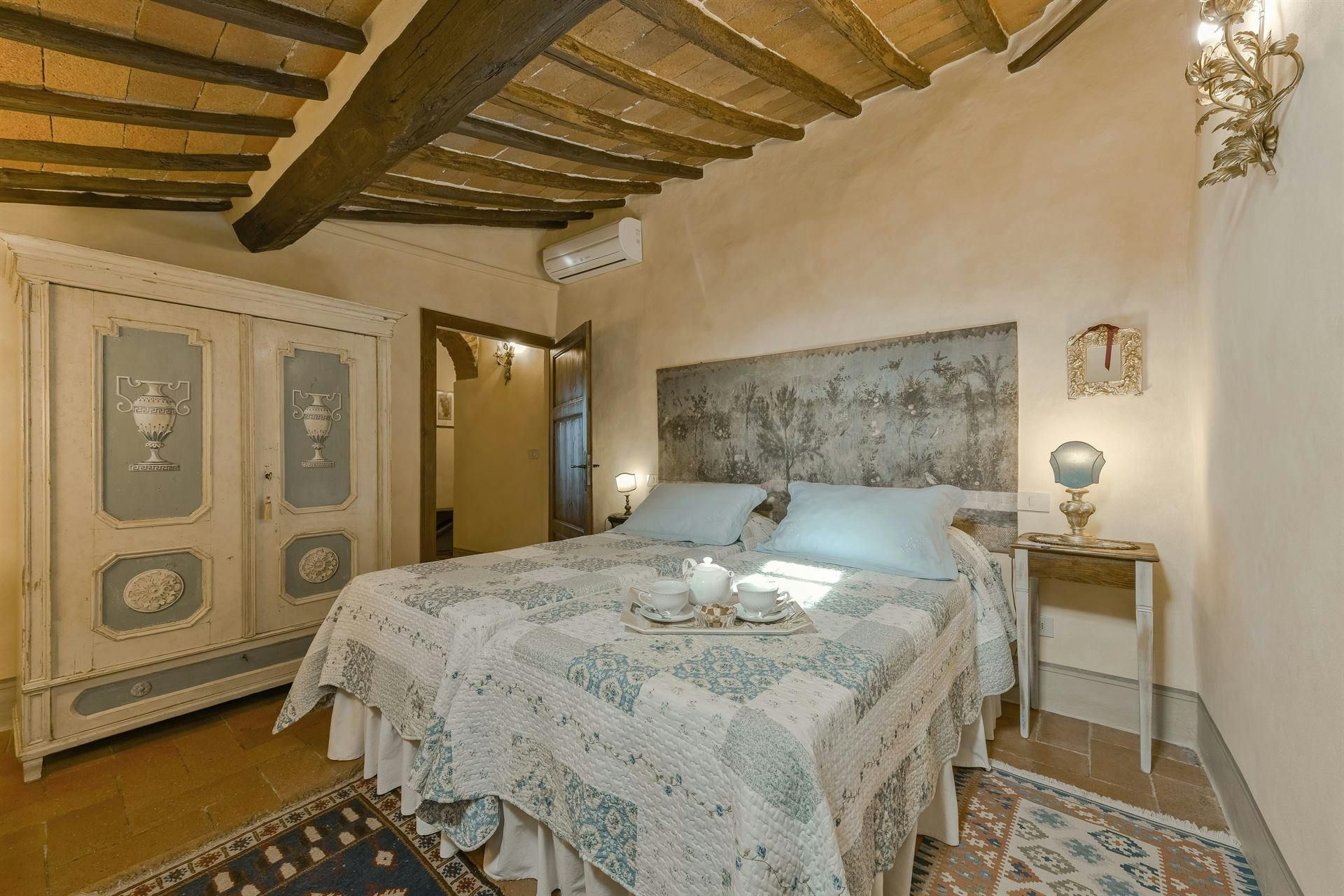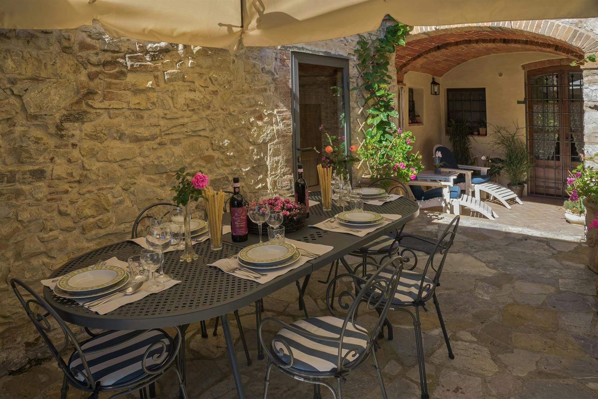 In the Chianti hills, this villa offers vineyard views and easy access to the region's many wineries and picturesque towns. We love the garden – it's where we reckon you'll spend most of your time. There's a private pool, an alfresco dining terrace, and a pool house with a gym that fitness buffs will appreciate. Indoors, the antique furniture and traditional features may feel a bit dated, yet they're all part of its charm. As for location, you'll find Gaiole, Radda, and Castellina a short drive away, making it an ideal base for Tuscan adventures.