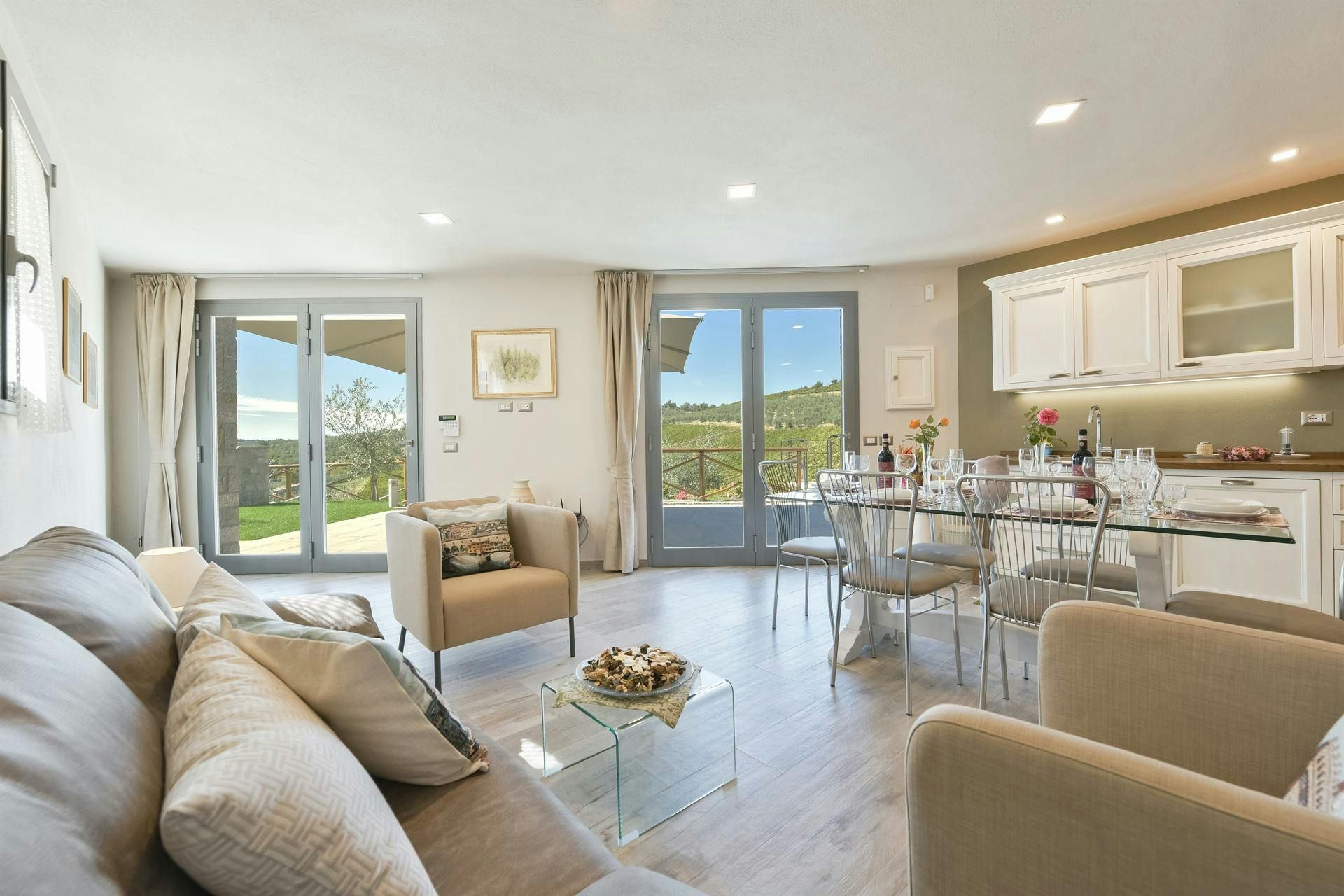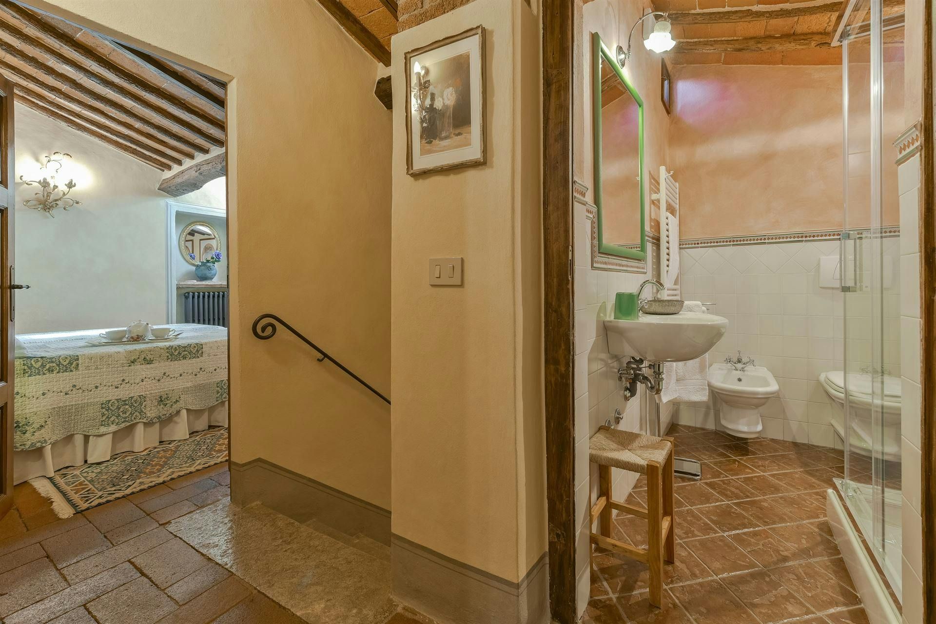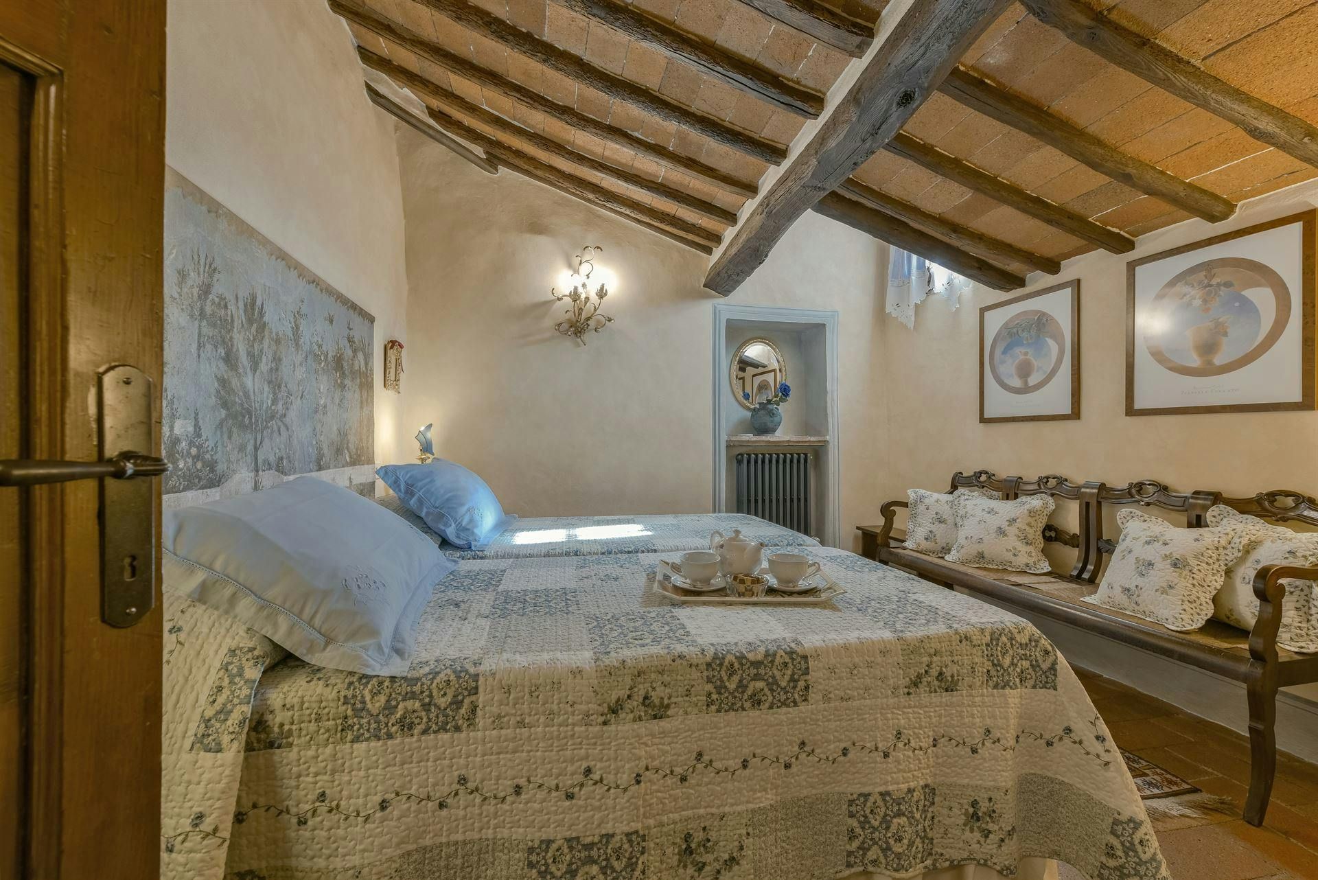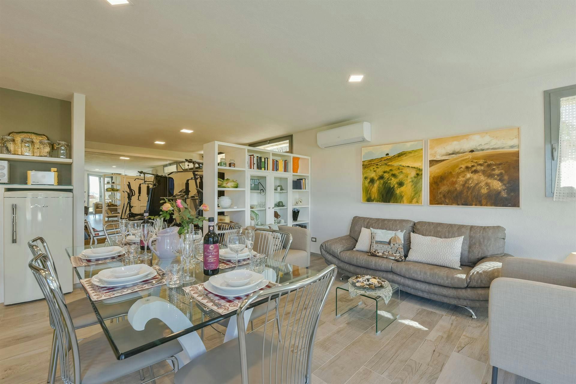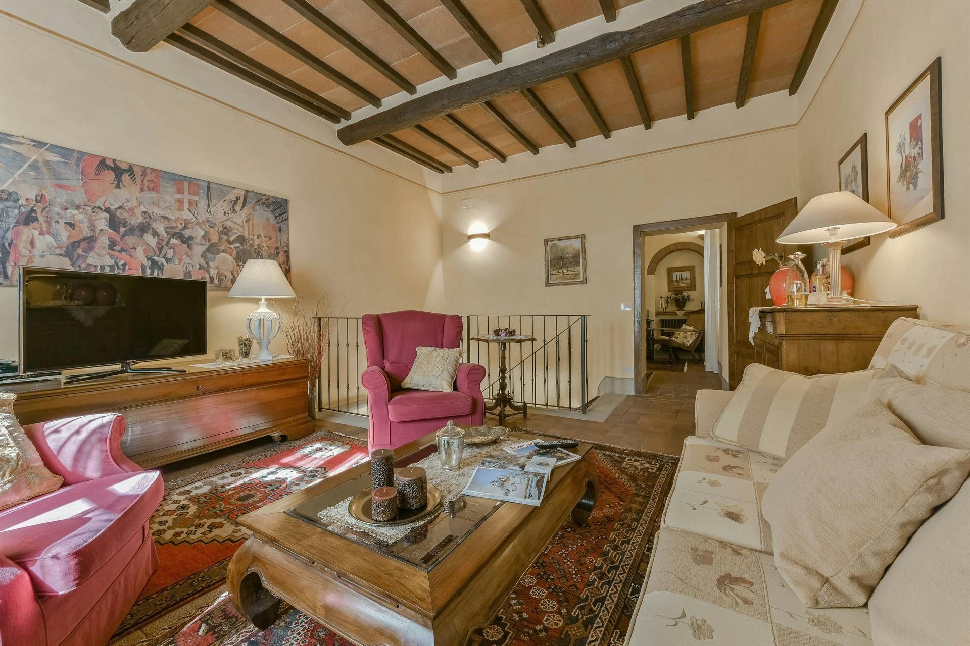 In the Chianti hills, this villa offers vineyard views and easy access to the region's many wineries and picturesque towns. We love the garden – it's where we reckon you'll spend most of your time. There's a private pool, an alfresco dining terrace, and a pool house with a gym that fitness buffs will appreciate. Indoors, the antique furniture and traditional features may feel a bit dated, yet they're all part of its charm. As for location, you'll find Gaiole, Radda, and Castellina a short drive away, making it an ideal base for Tuscan adventures.