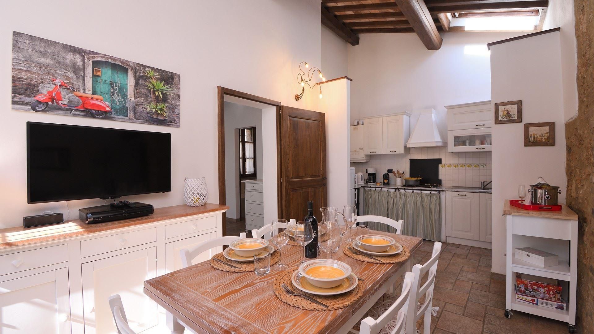 We think this cosy little home is the perfect couple's retreat. Step inside and you'll discover rustic details like stone archways, beamed ceilings, and an open fireplace. Outside, the terrace makes a scenic spot to enjoy an alfresco dinner – your host can organise a private chef for a fee. The cherry on top is the private pool, where you can cool off as the sun goes down. With its convenient location near Florence and Siena, this home is the ideal base for exploring the region's rich history, culture, and culinary scene.
